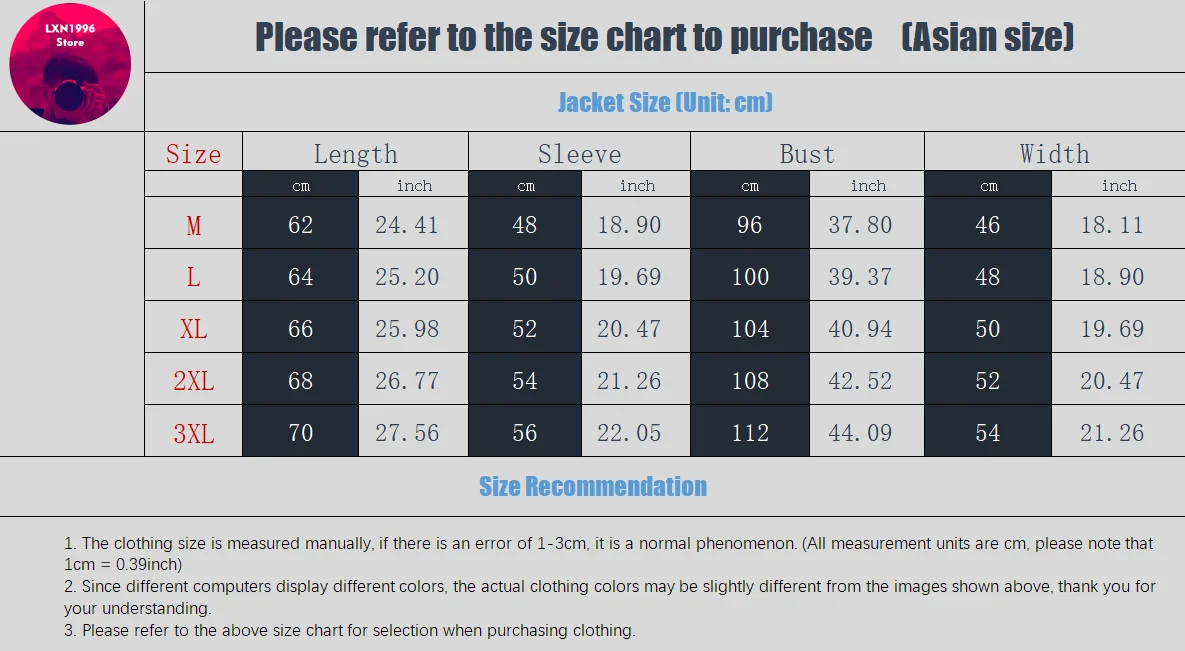 1. This is Asian Size, normally 2-3 size smaller than EU/US size. If you wear EU/US size L,you can select our size XXL or XXXL.