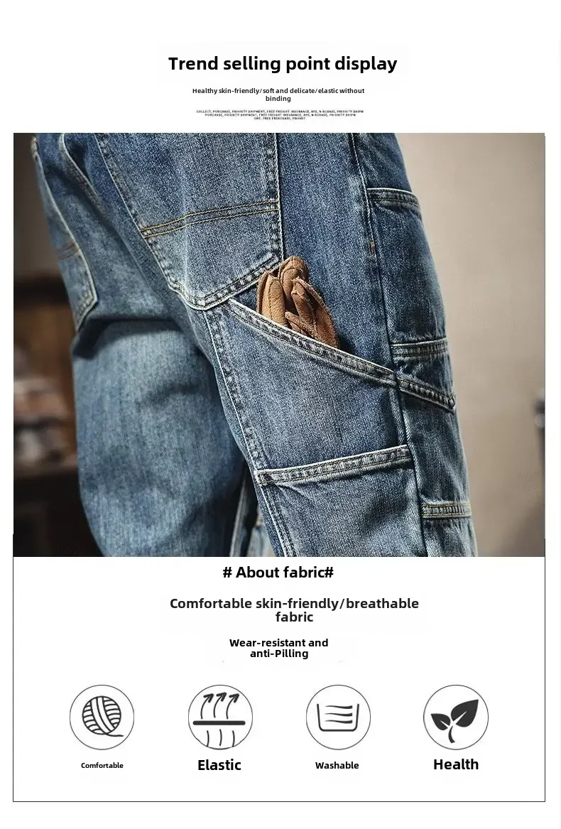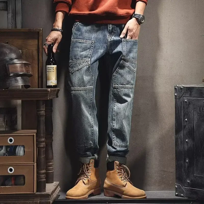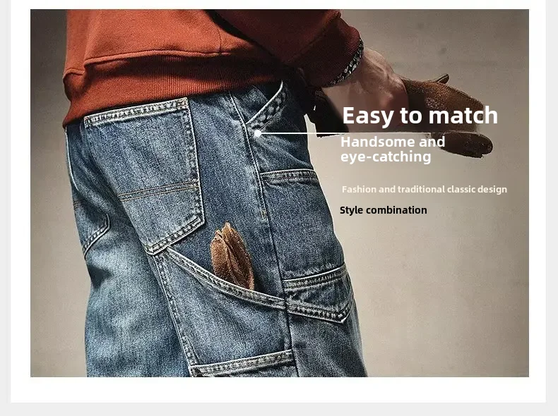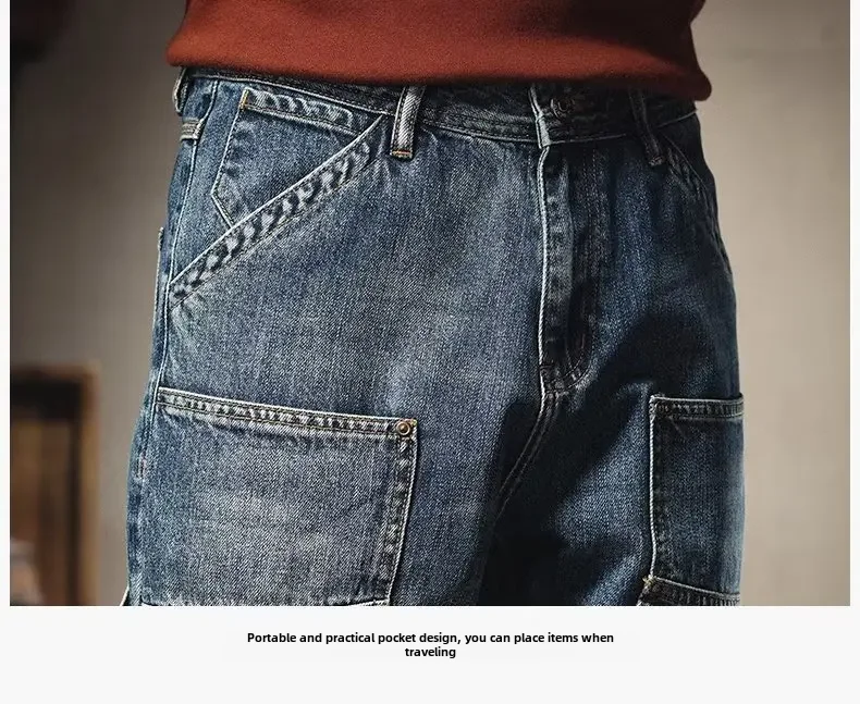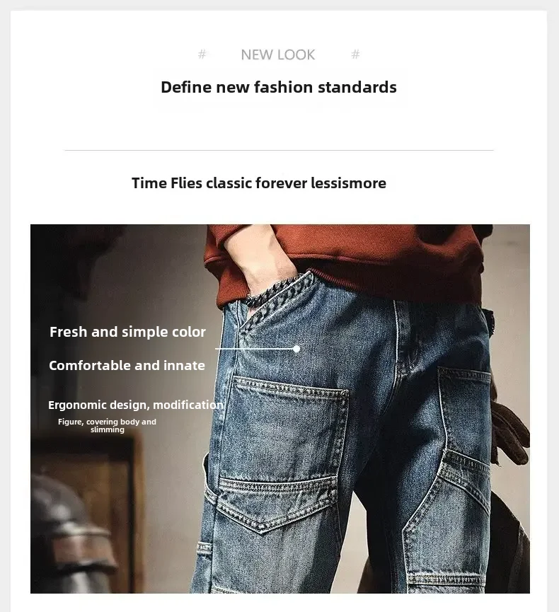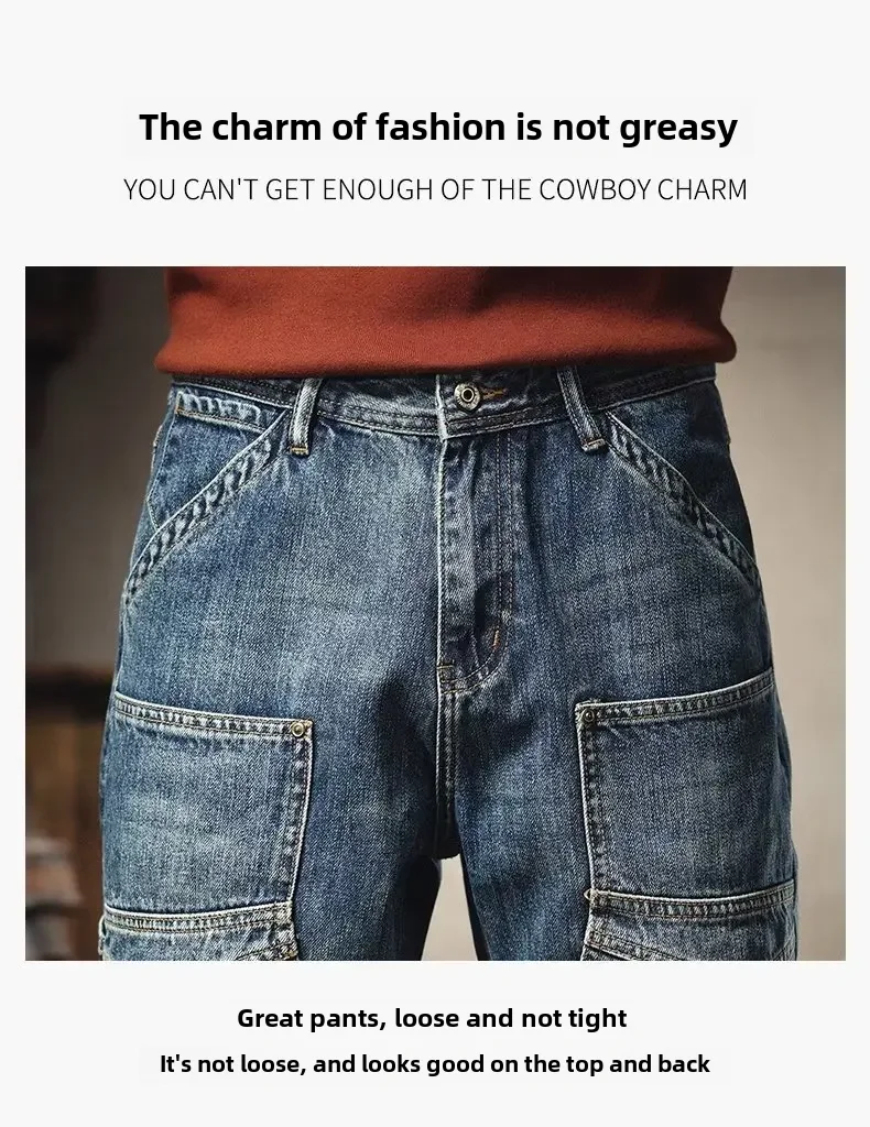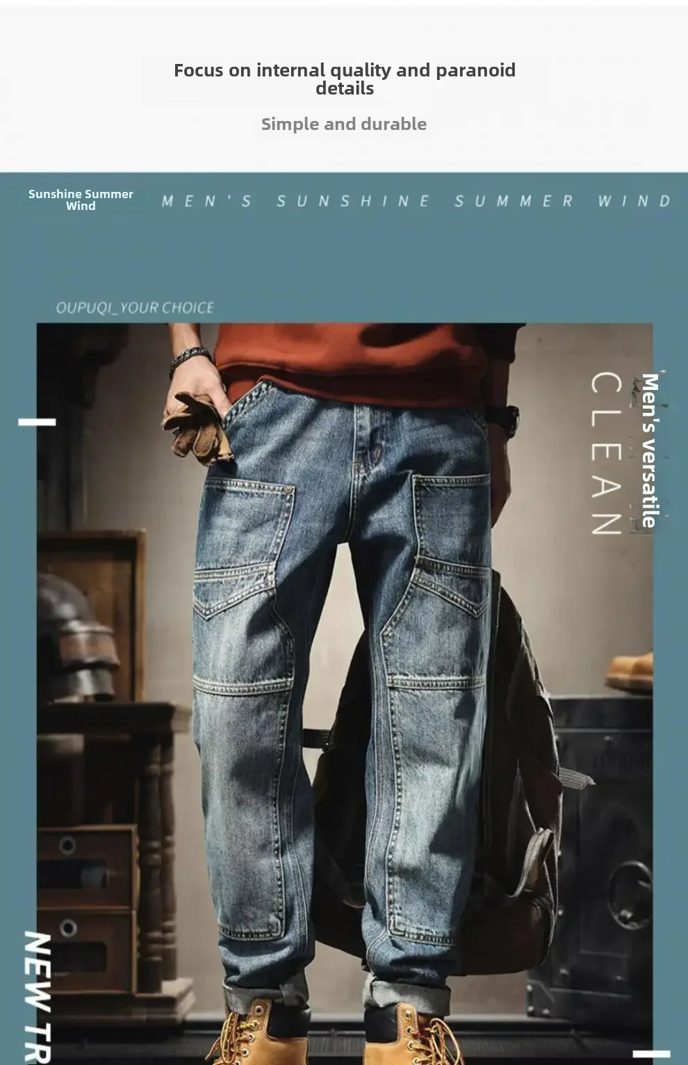 2024 Spring Autumn New Men’s Cargo Pants Jeans Loose Fit Versatile Long Pants Comfortable Breathable Denim