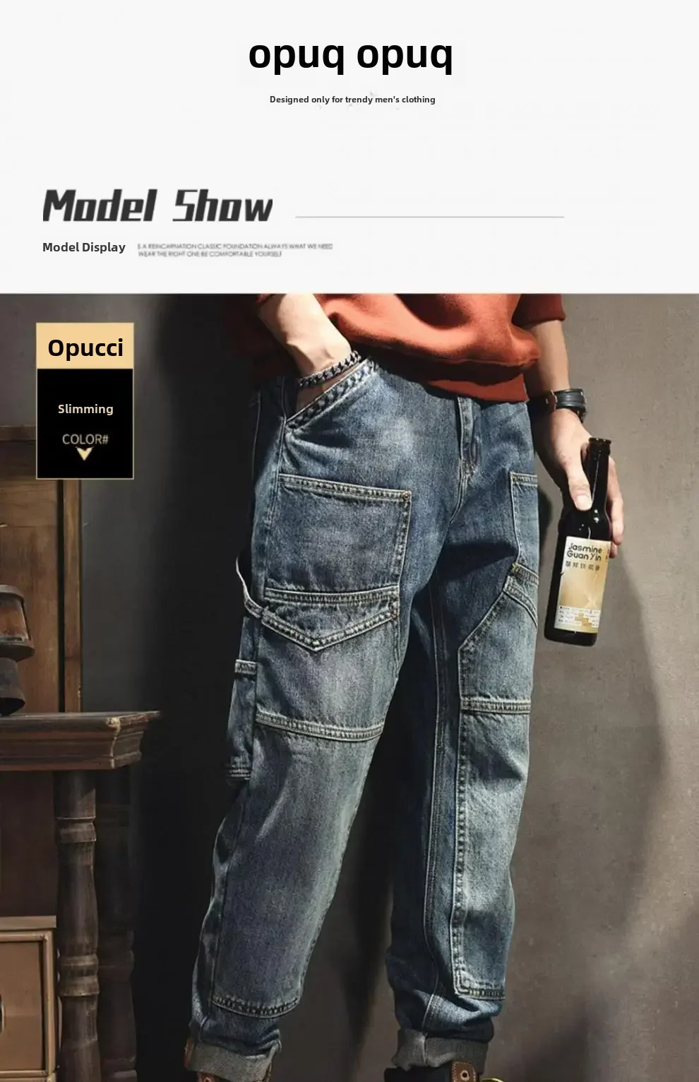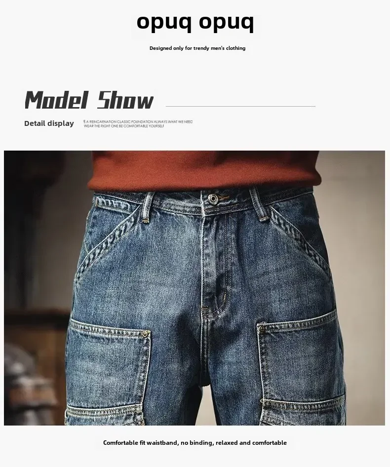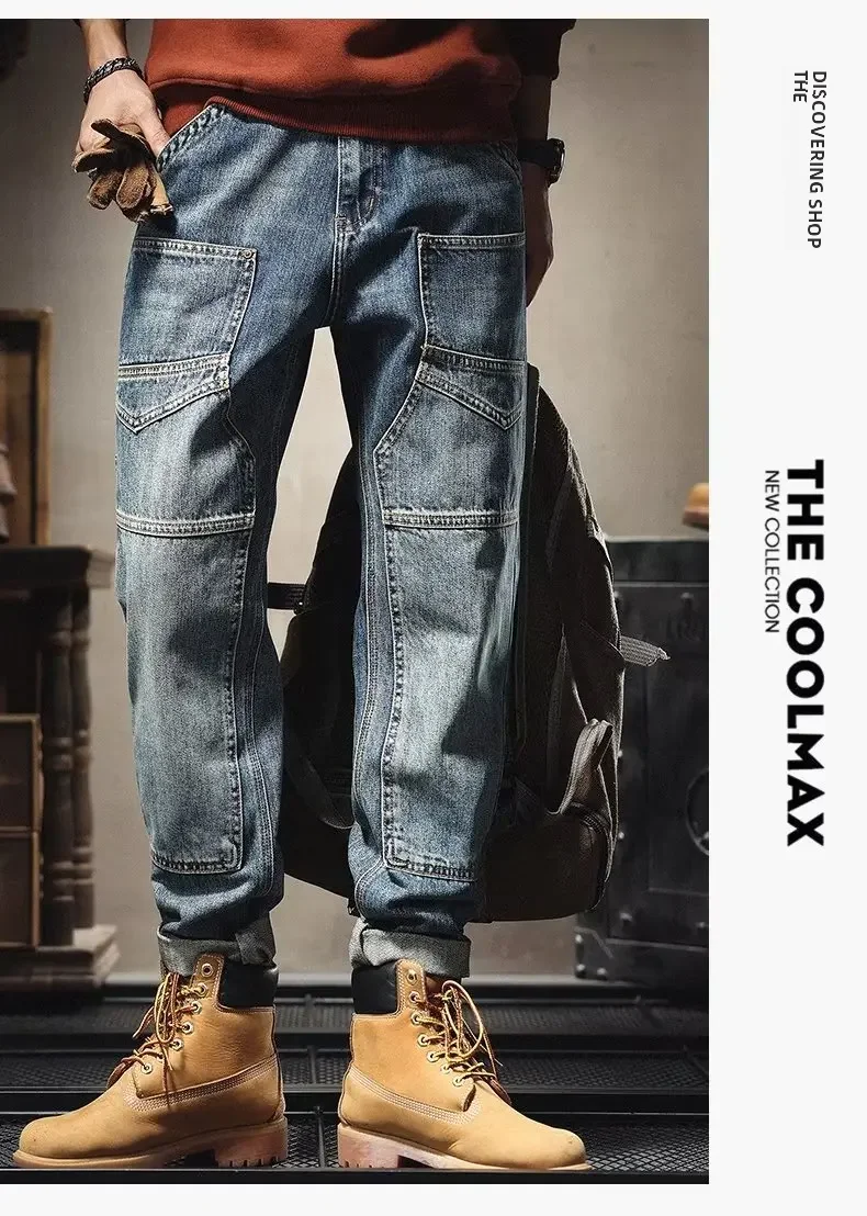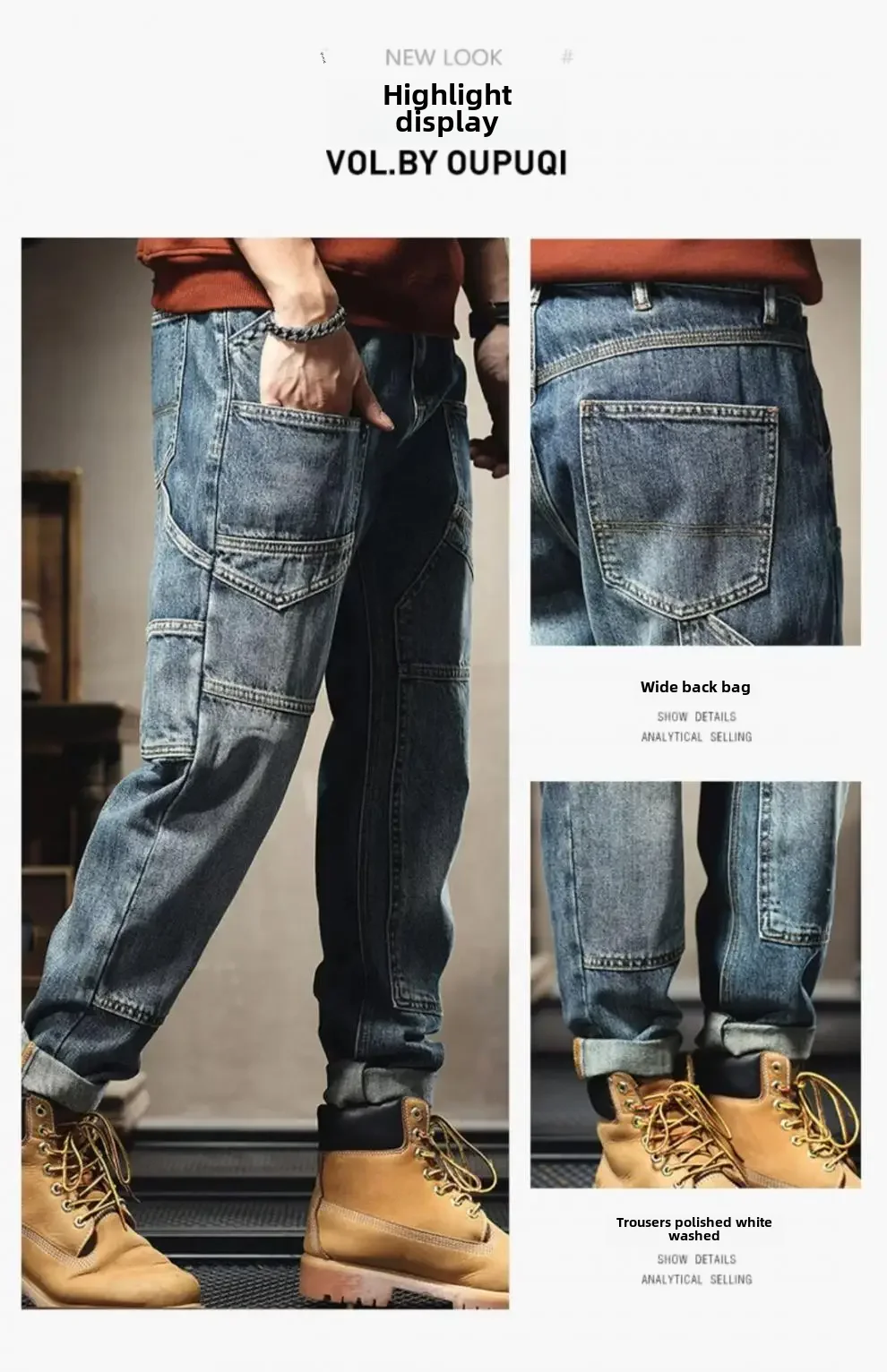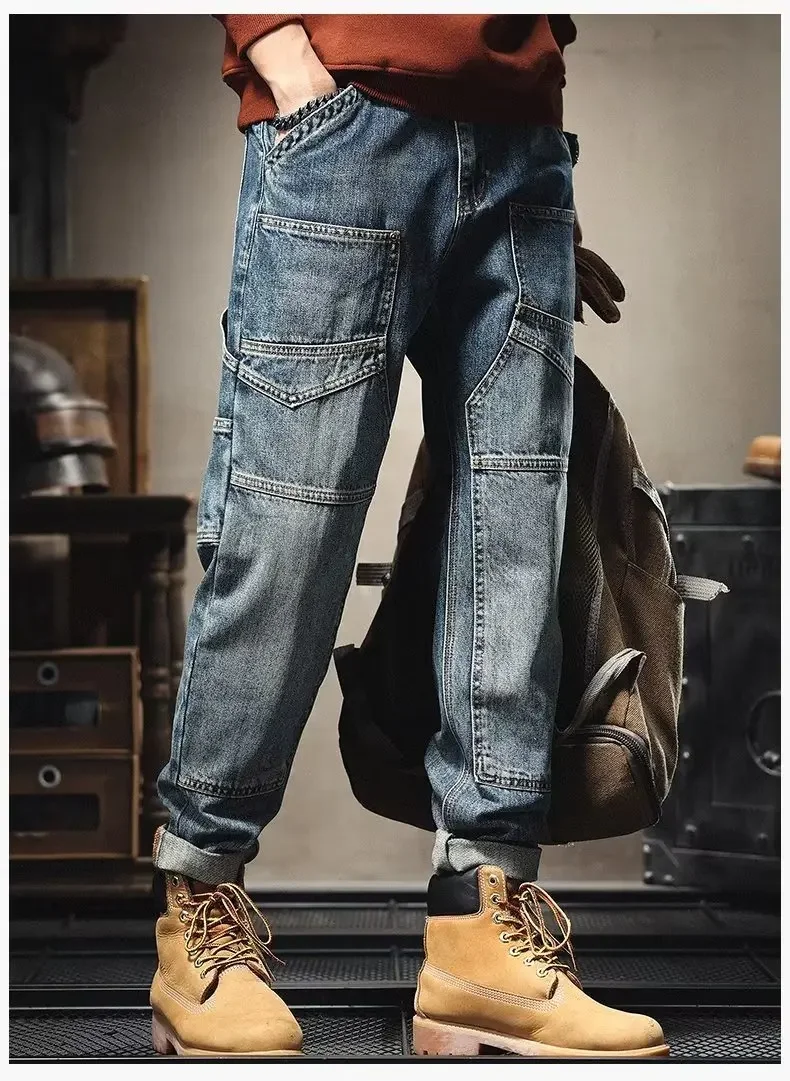 2024 Spring Autumn New Men’s Cargo Pants Jeans Loose Fit Versatile Long Pants Comfortable Breathable Denim