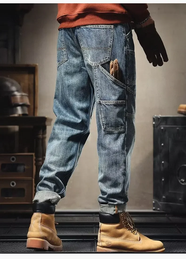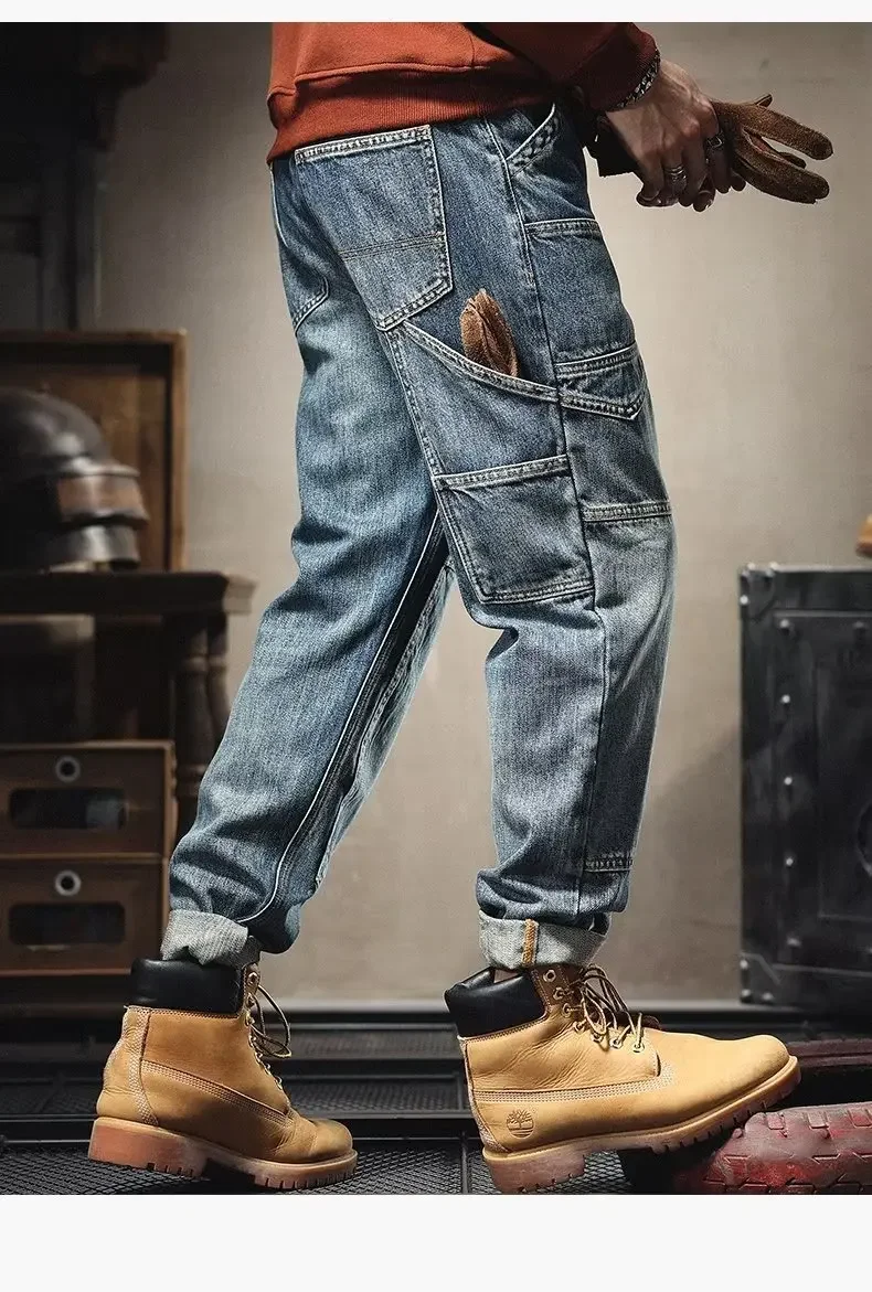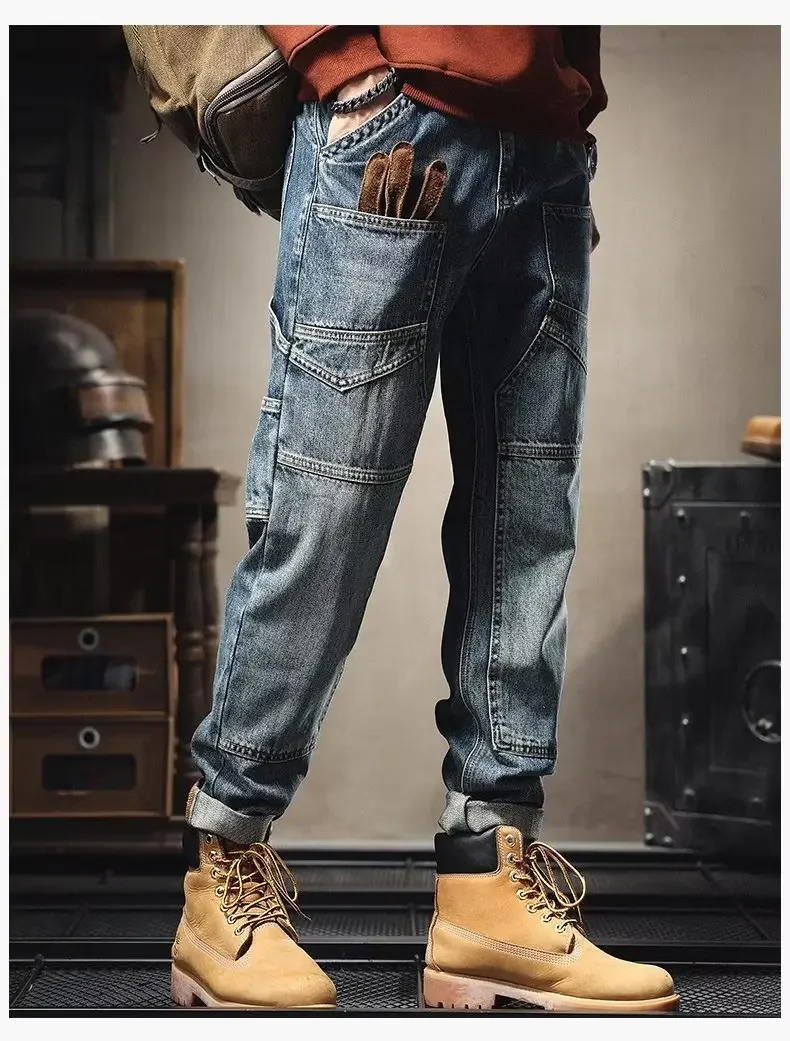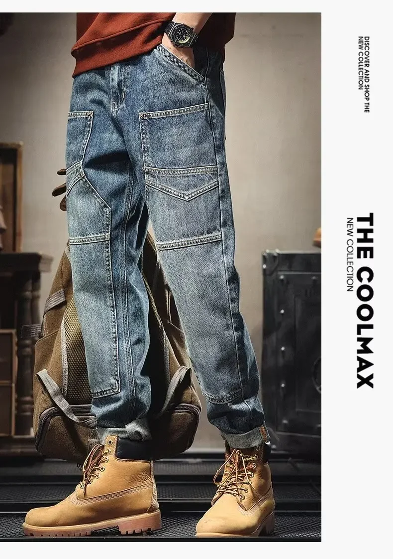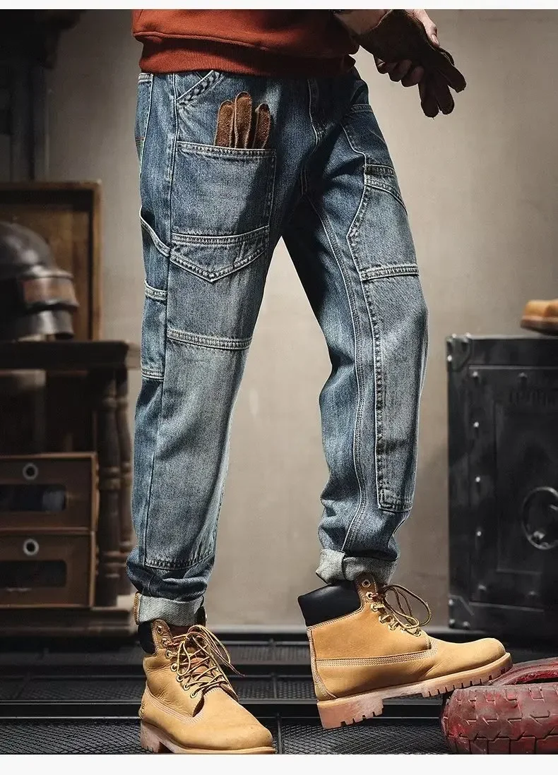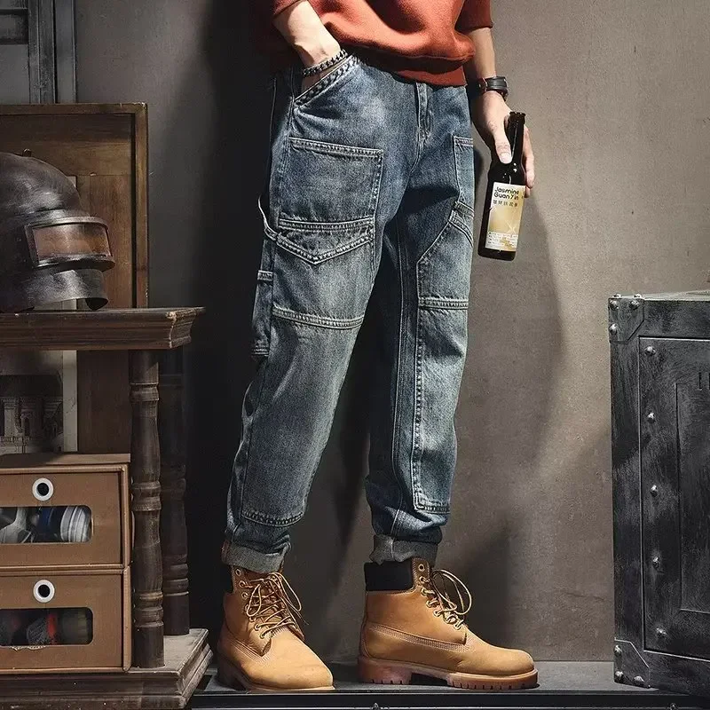 2024 Spring Autumn New Men’s Cargo Pants Jeans Loose Fit Versatile Long Pants Comfortable Breathable Denim