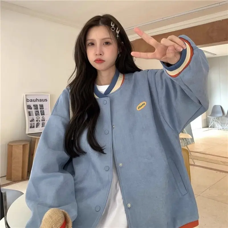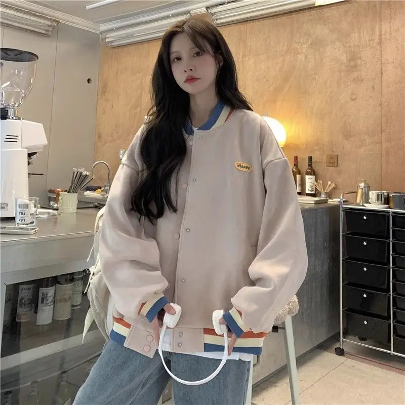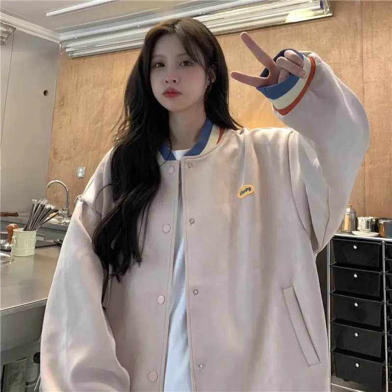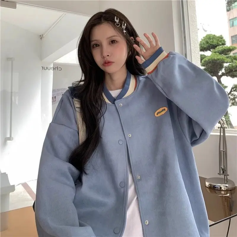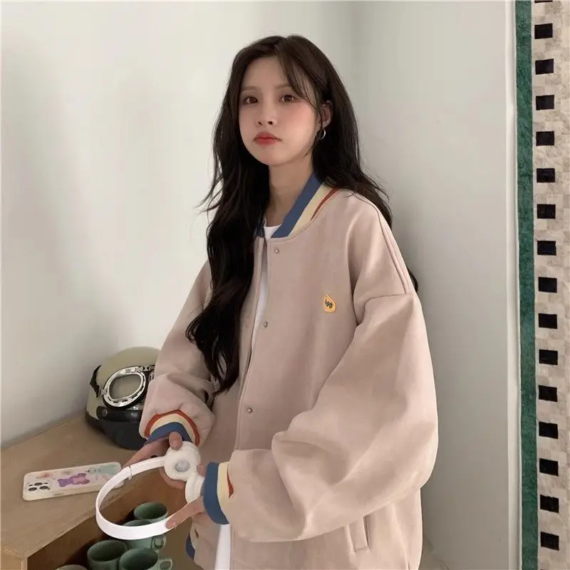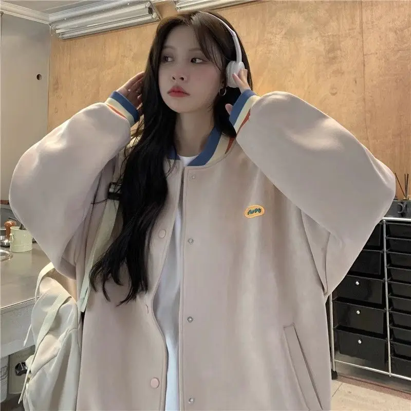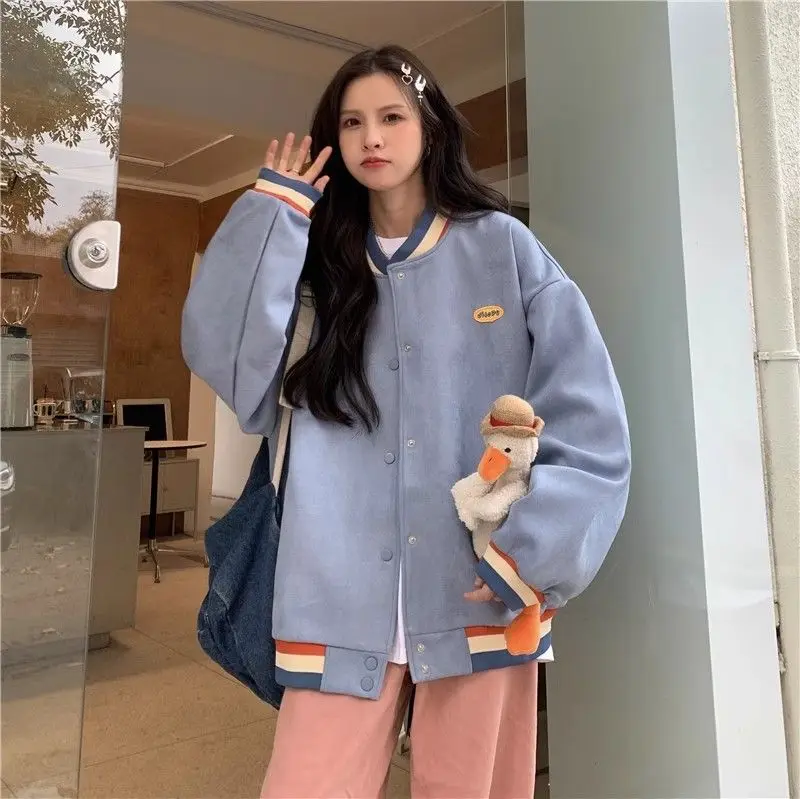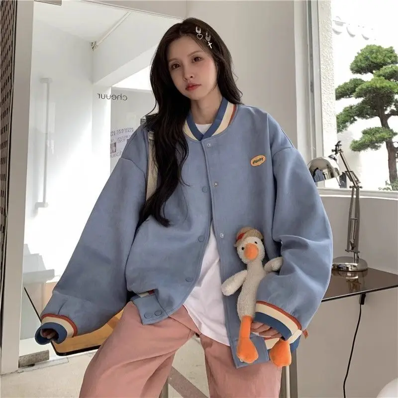 Biyaby Loose-Fit Baseball Jacket Korean Style Autumn Winter Trendy Brand Casual Scene Top All-Match Single Breasted Outerwear