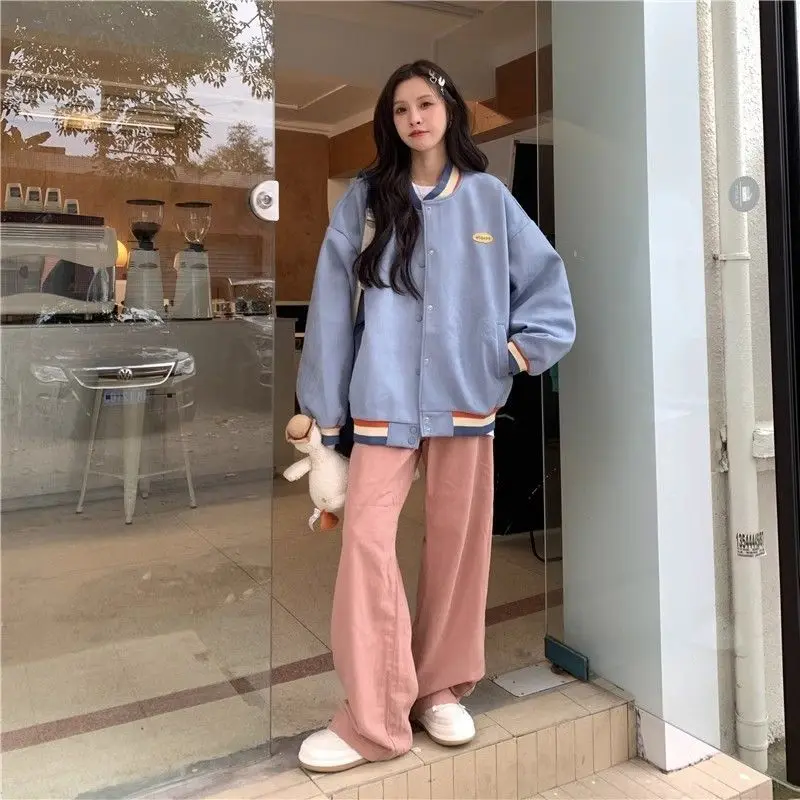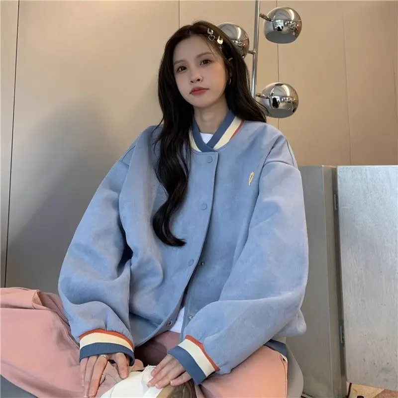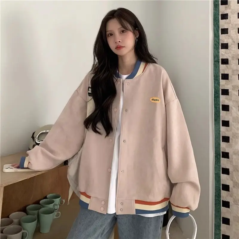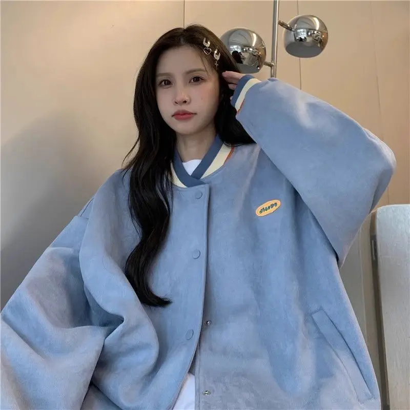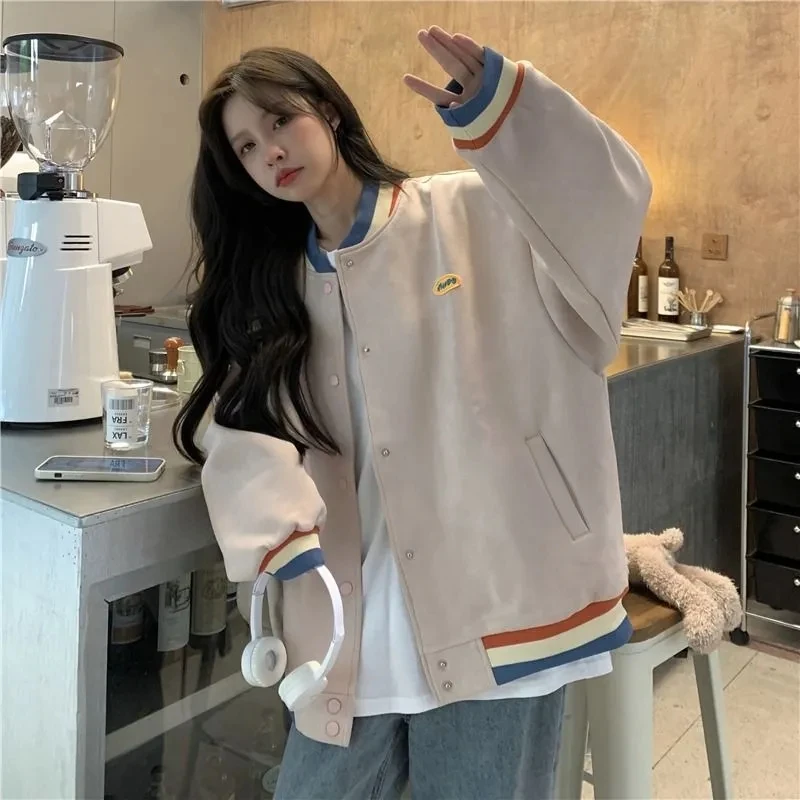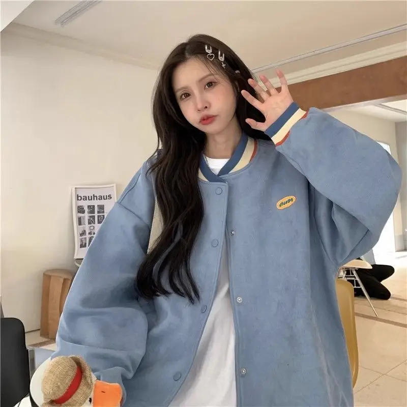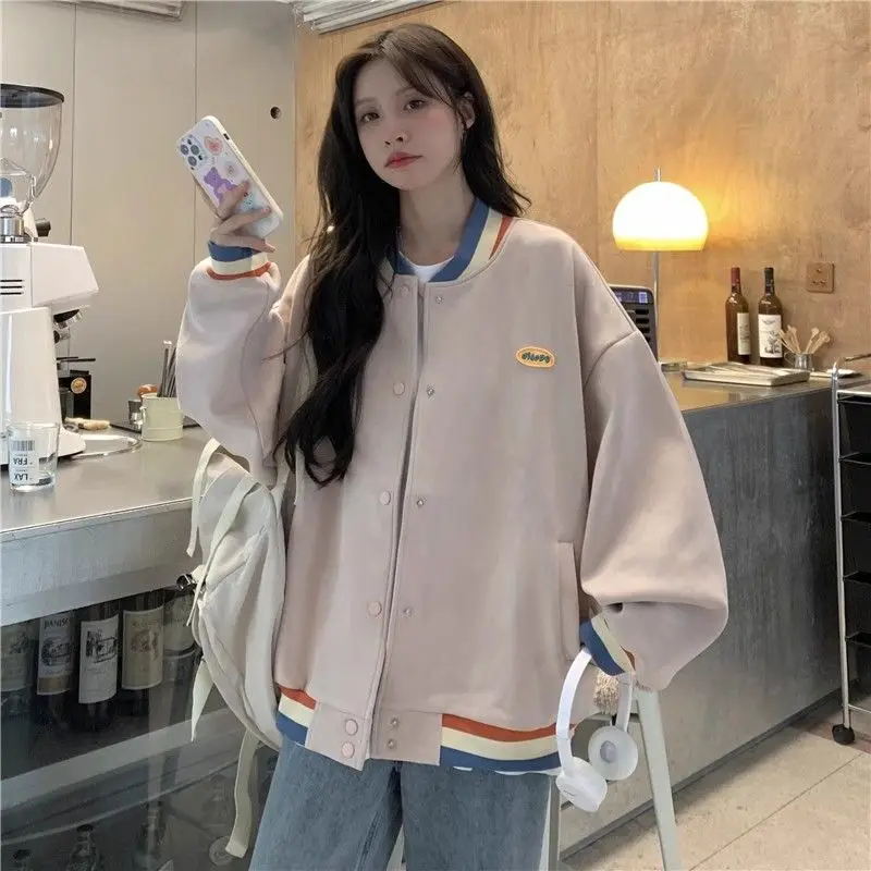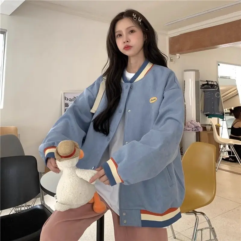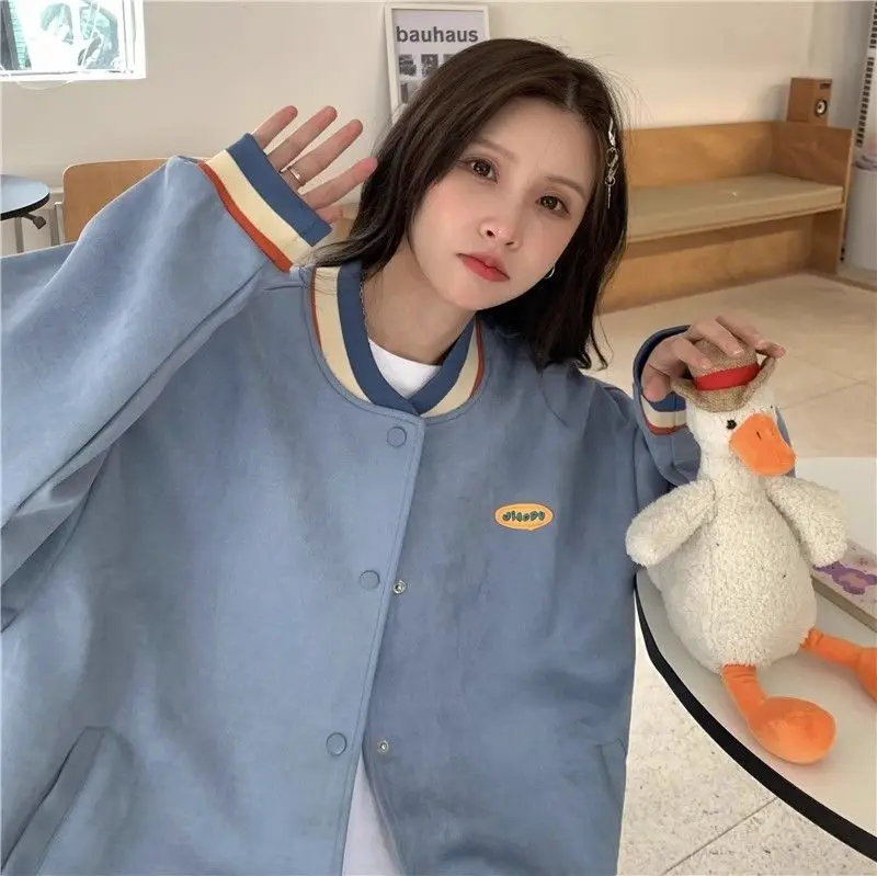 Biyaby Loose-Fit Baseball Jacket Korean Style Autumn Winter Trendy Brand Casual Scene Top All-Match Single Breasted Outerwear