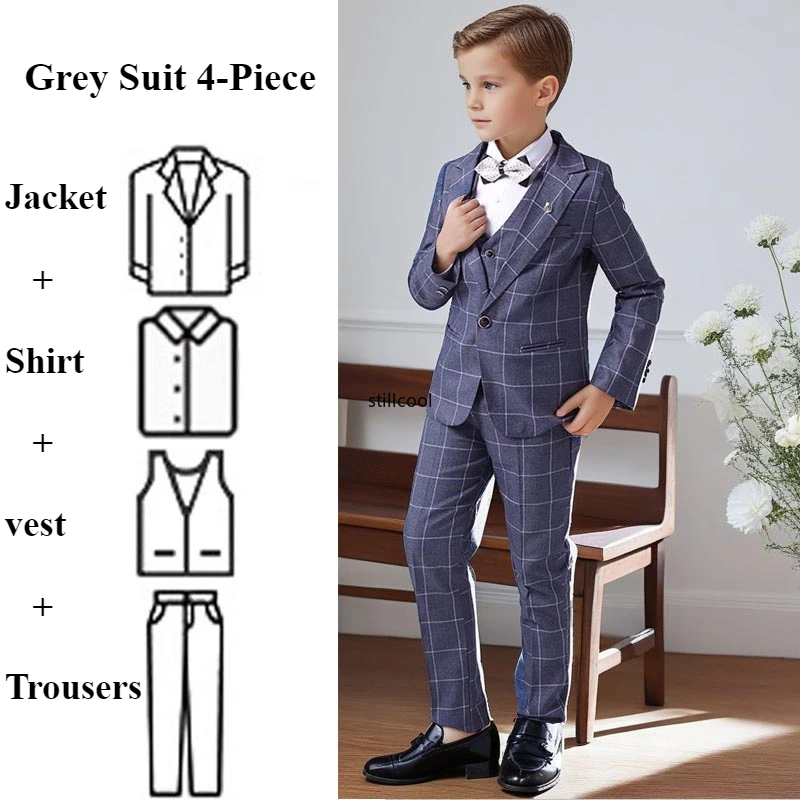Boys Plaid Suit Spring 2025 Fashion England Wedding Evening Tuxedo Elegant School Children Host Speech Performance Blazers Set