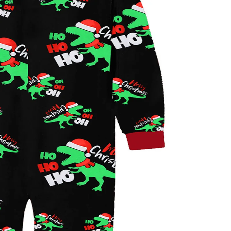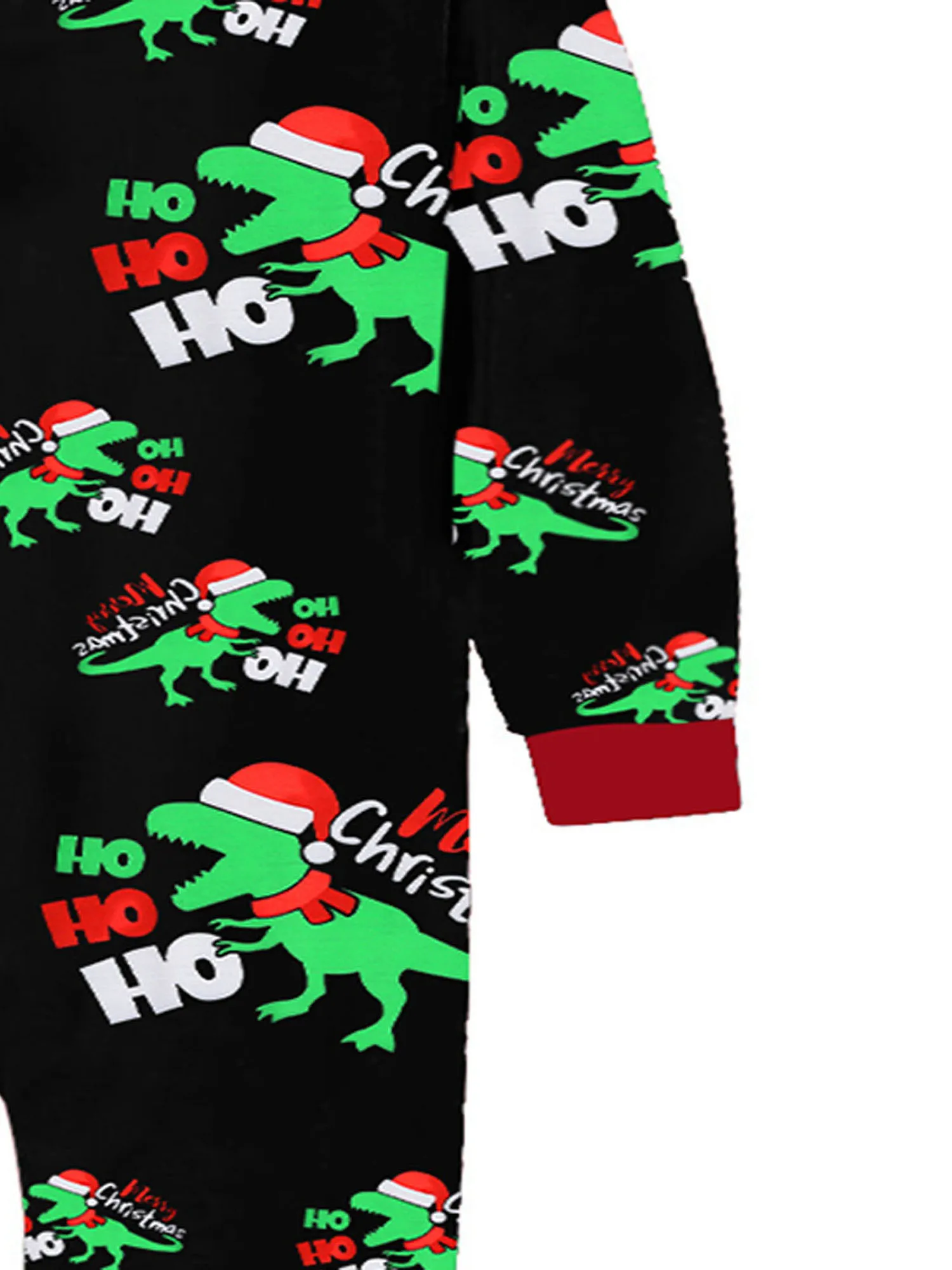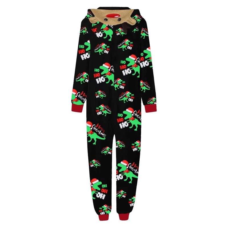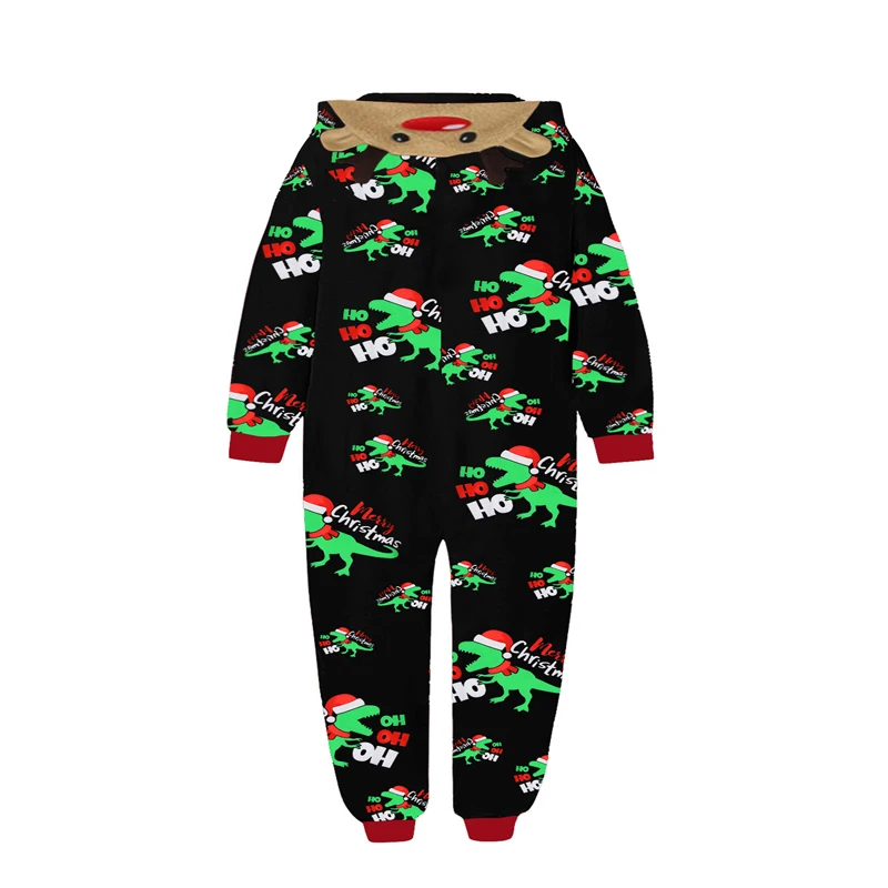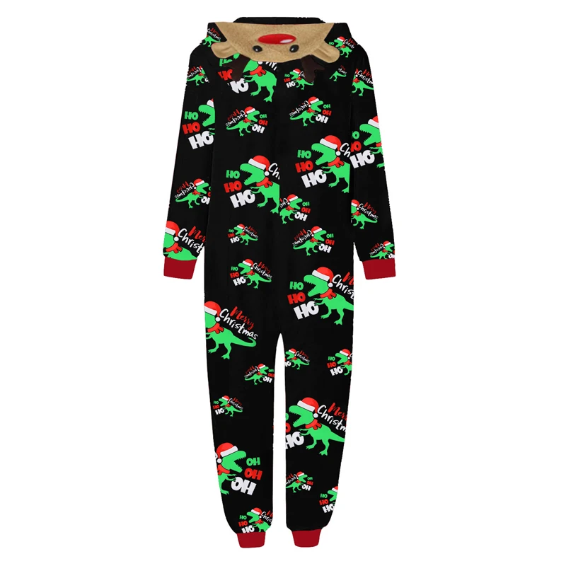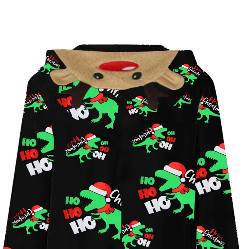 Christmas Family Matching Jumpsuit, Long Sleeve Hooded Dinosaur Print Zipper Closure Loungewear