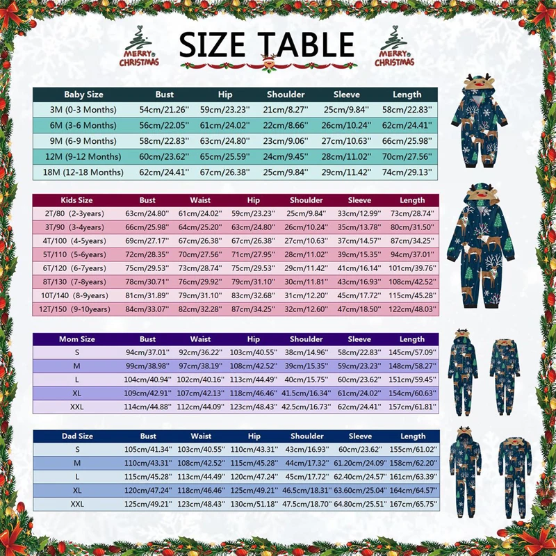 Christmas Family Matching Pajamas Cozy Long Sleeve Hooded Reindeer Print Zipper Closure Loungewear Set for the Whole Family