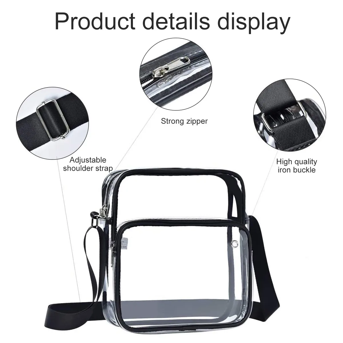 [Transparent Design] The transparent bag allows you to pass the security check quickly. And it also saves you time looking for items with a transparent cover. And it is big enough for you to put phone, wallet, cosmetics, small items like keys, cash, cards, ticket, etc.
