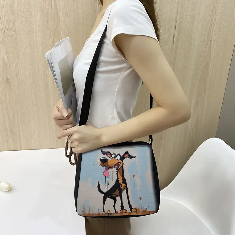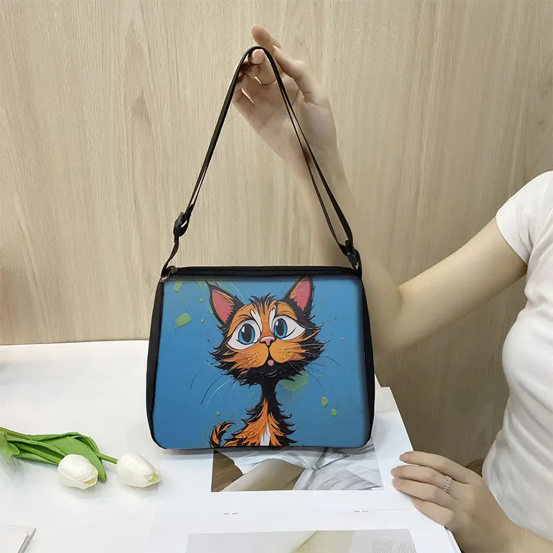 Cute Animal Cat Dog Highland Cow Print Shoulder Bag Women Handbags Ladies Crossbody Bag Casual Clutch Messenger Bag