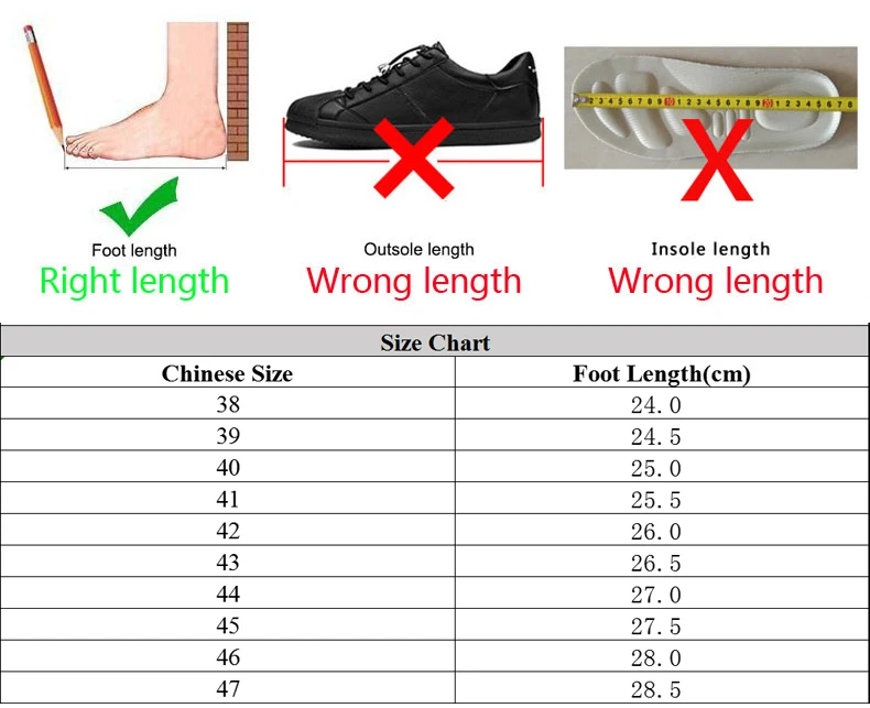 This is Chinese Size,the standard was based on “Foot Length”,not “Shoes Length”, not “Insole Length”.