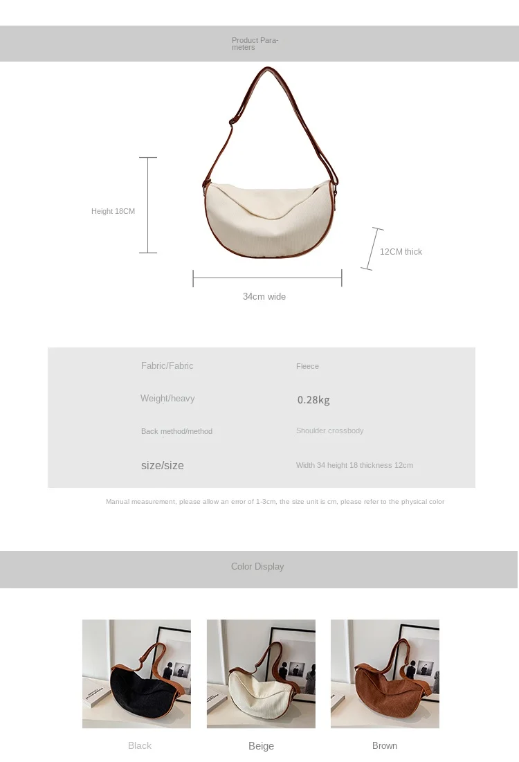 Fashion Velvet Shoulder Bags Solid Dumpling Type 2024 Hot Sale Bags for Women Interior Zipper Pocket Casual Women’s Handbags