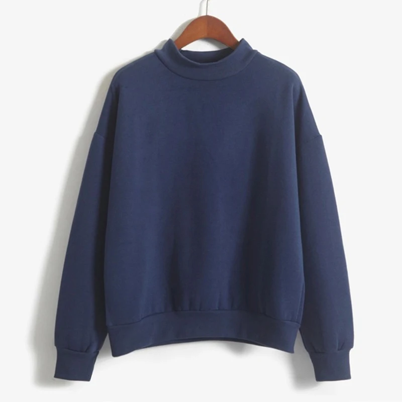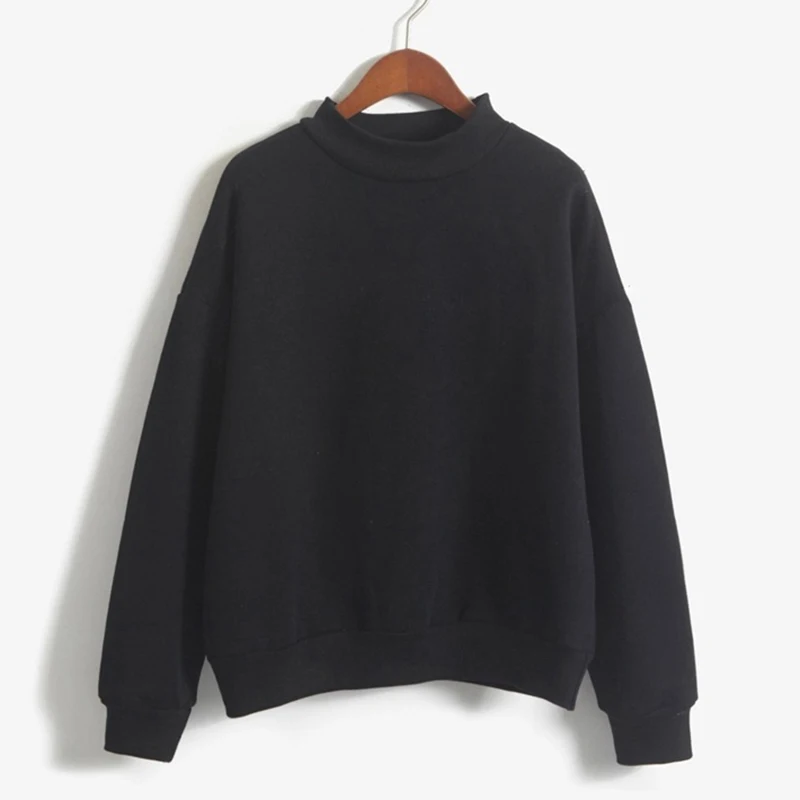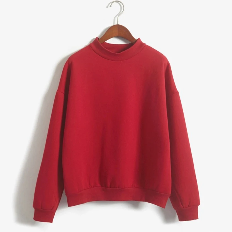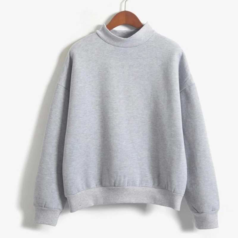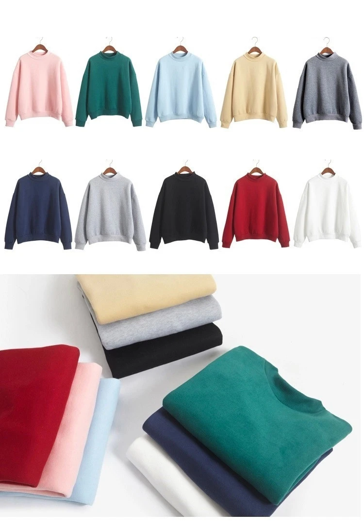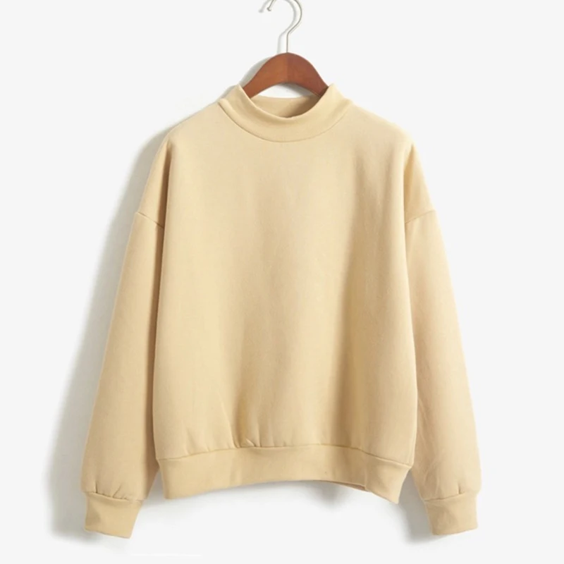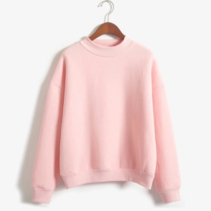 Fleecing Half High Neck Long Sleeve Casual Top For Women Clothing Autumn Winter Trend Solid Simple Pink Sweatshirts New Basic