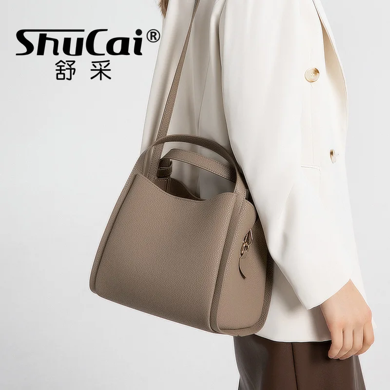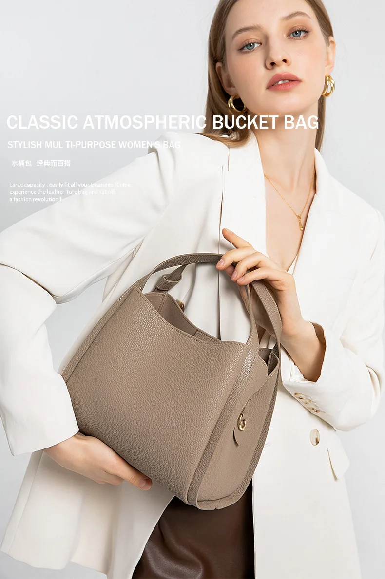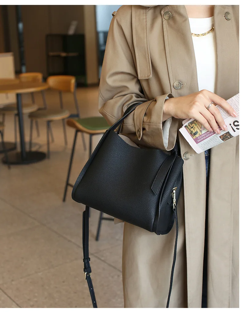 Genuine leather women’s bag handbag new shoulder fashion bucket bag cowhide crossbody bag female