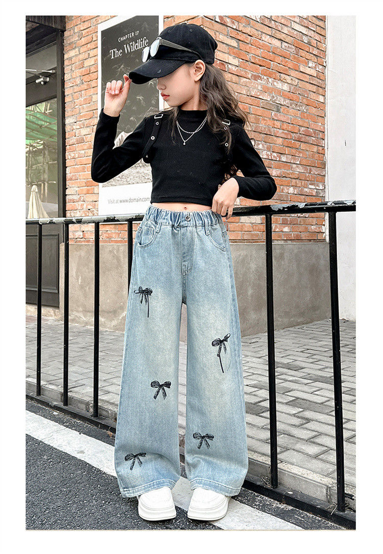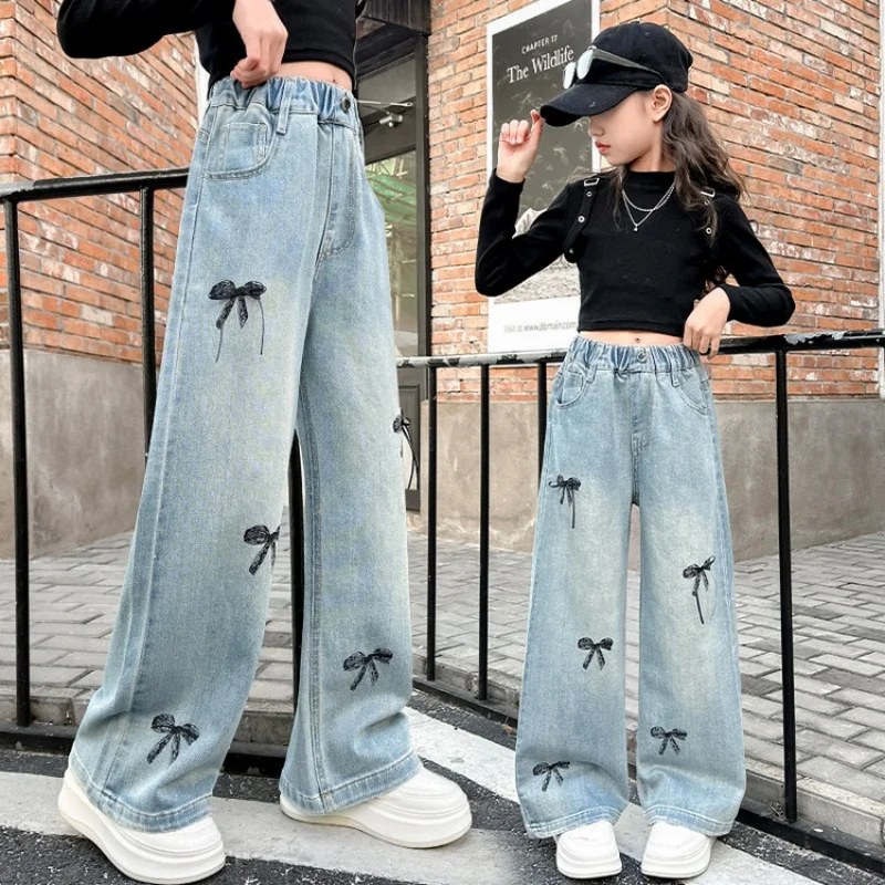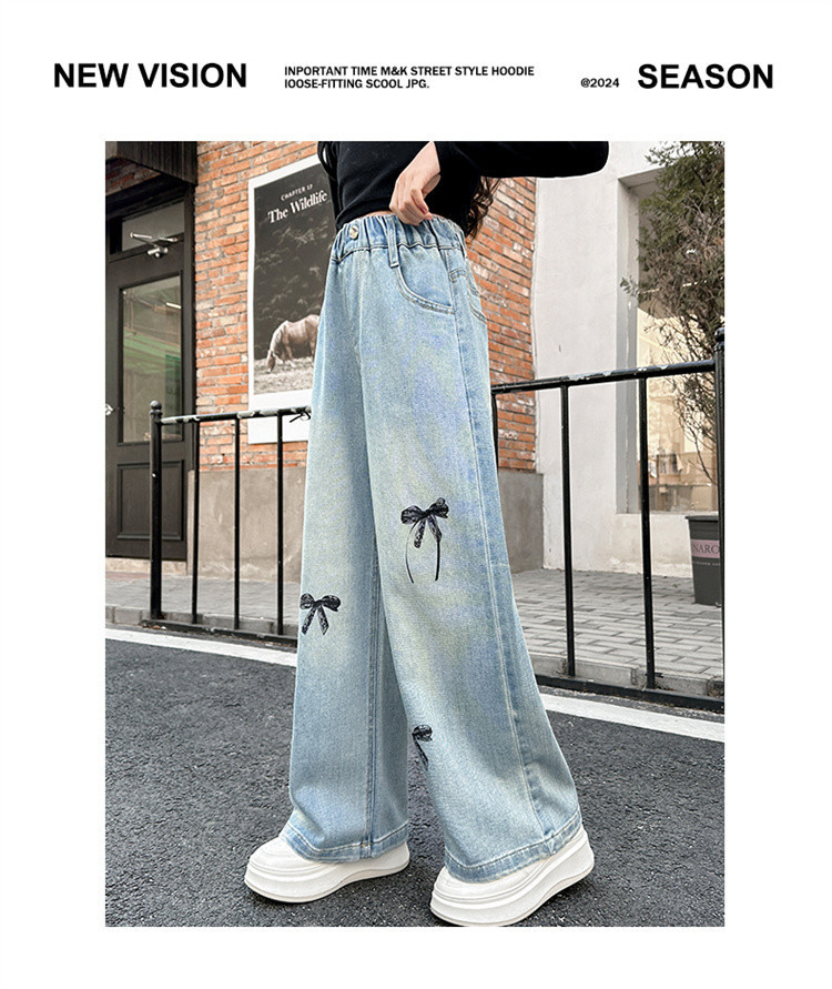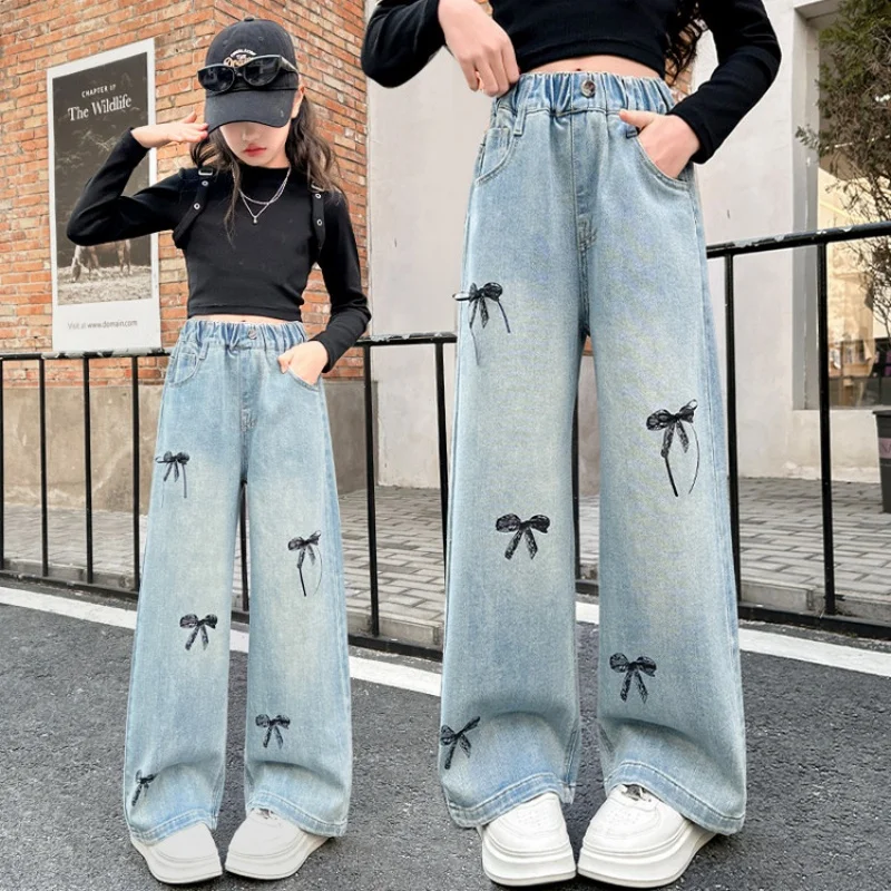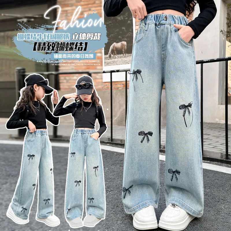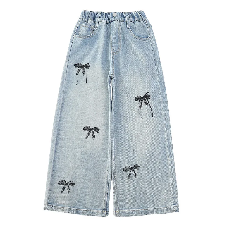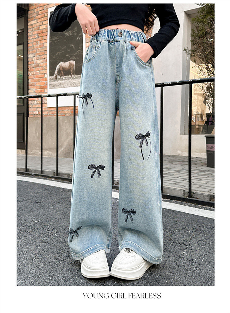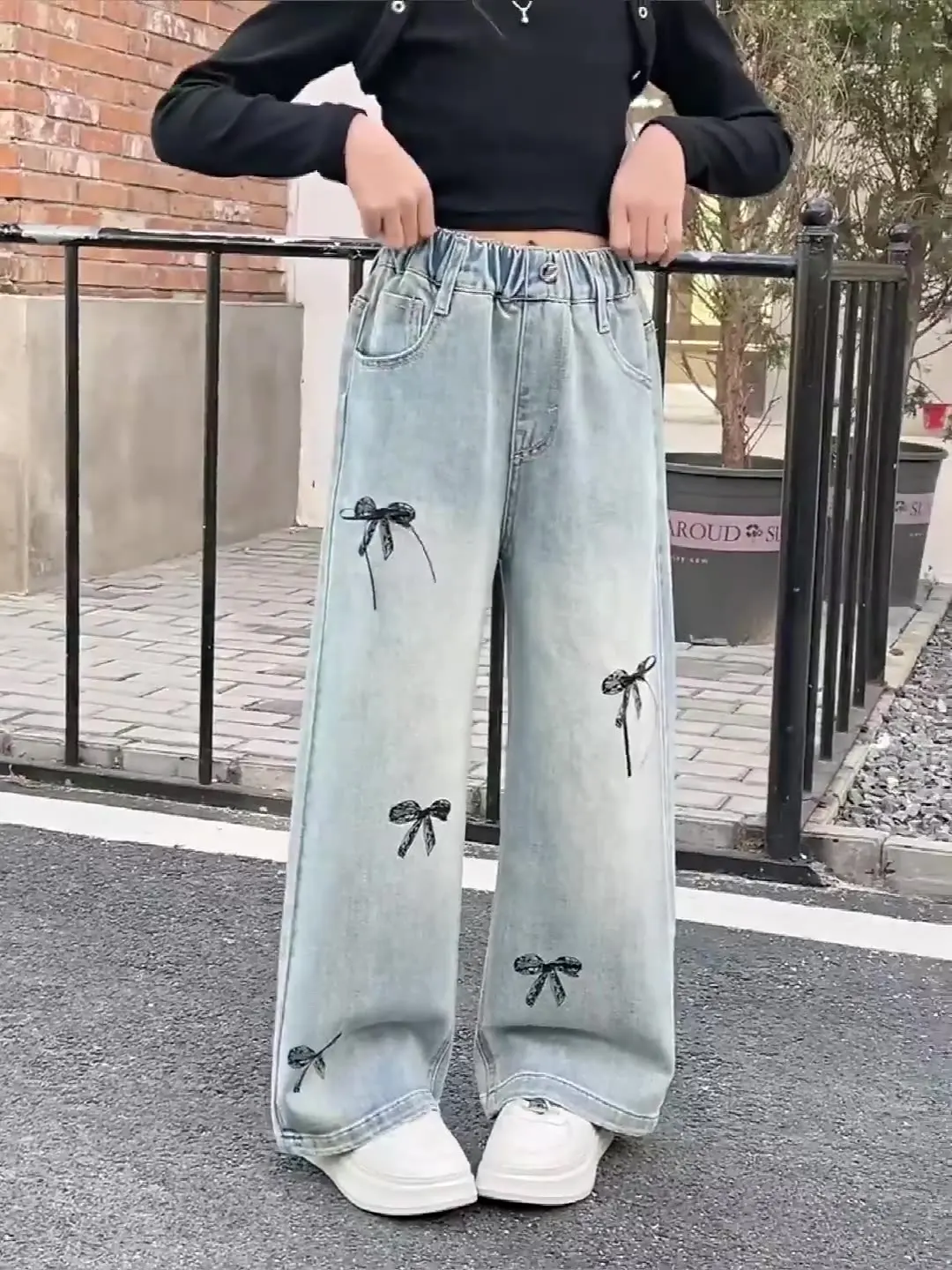 Girls’ Jeans,Girls’ Denim Pants, Bowknot Straight-Leg Pants, Spring Pants for Tween Fashion