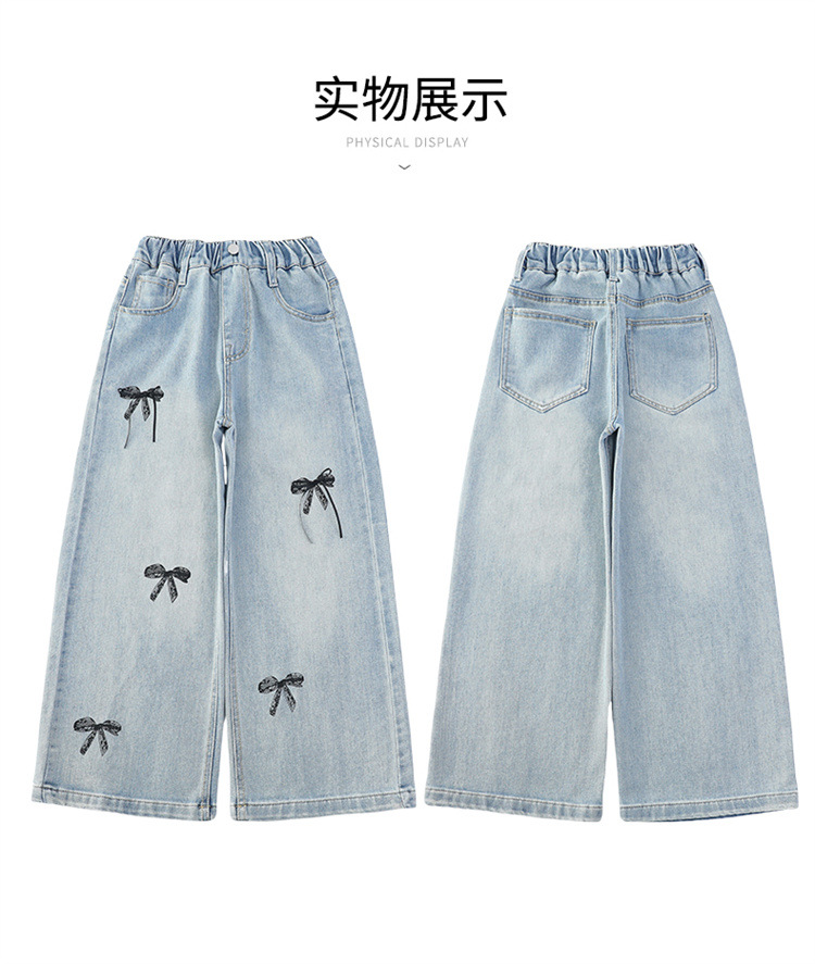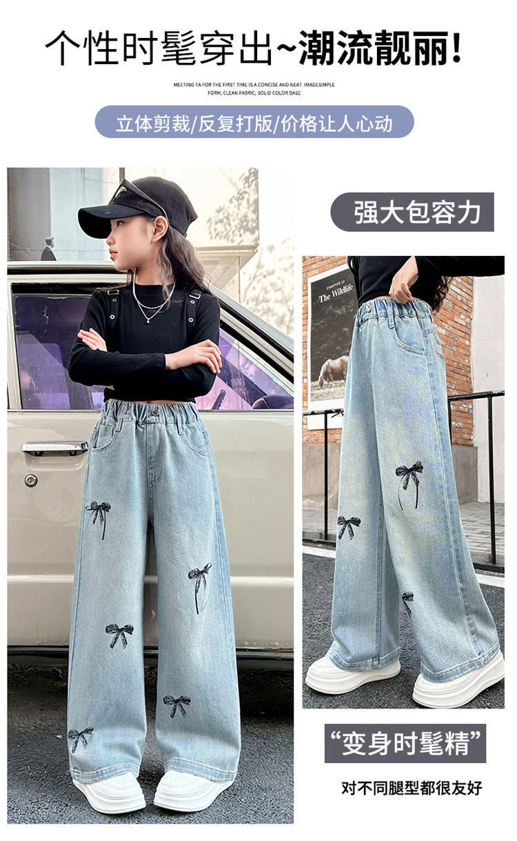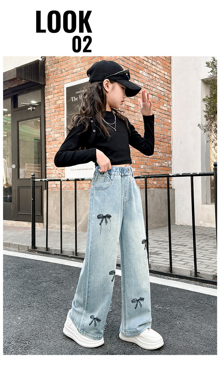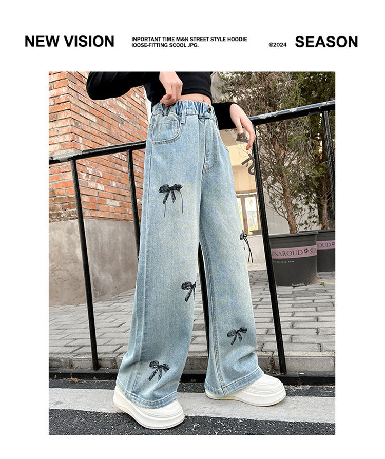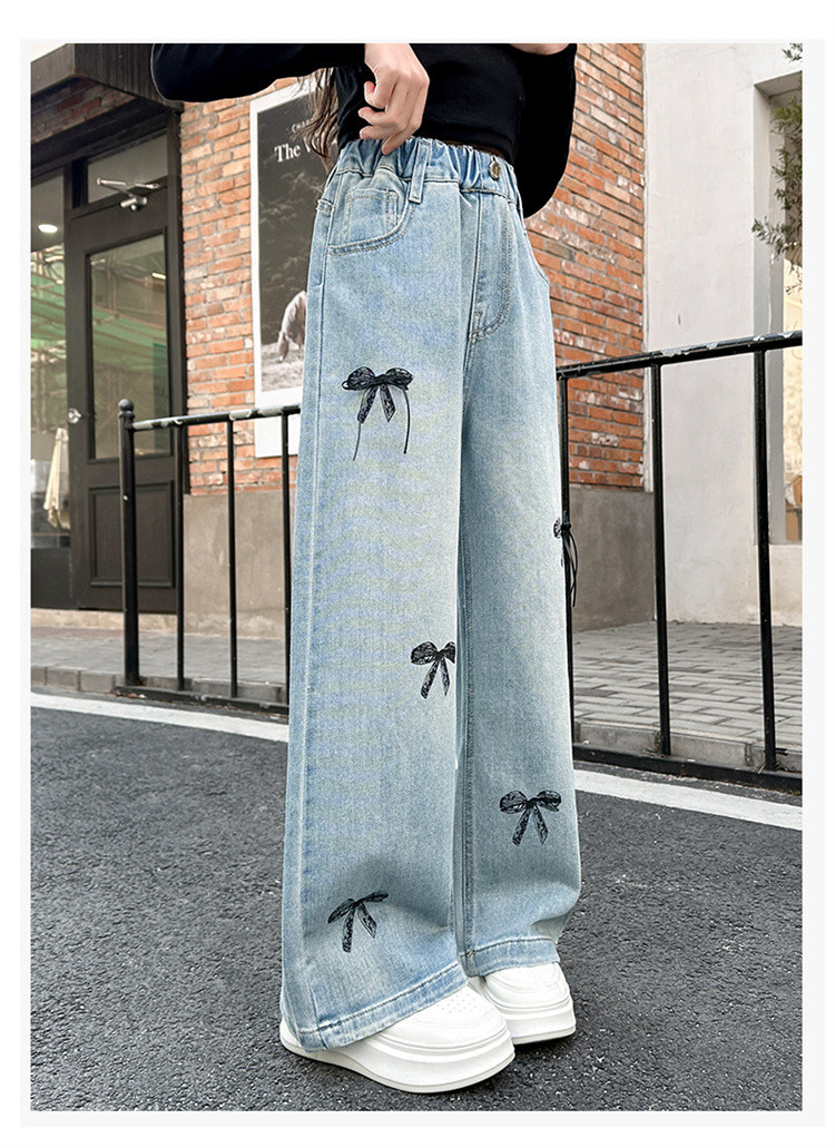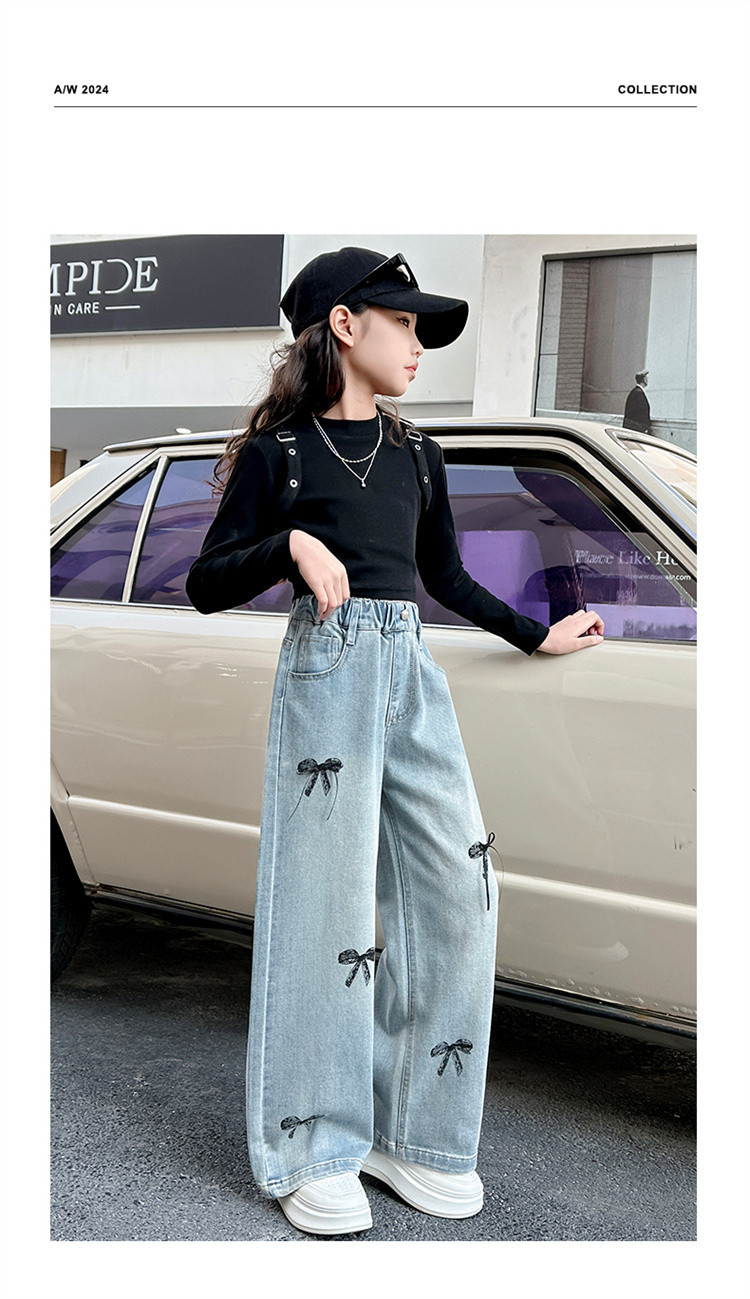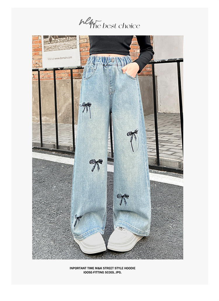 Girls’ Jeans,Girls’ Denim Pants, Bowknot Straight-Leg Pants, Spring Pants for Tween Fashion