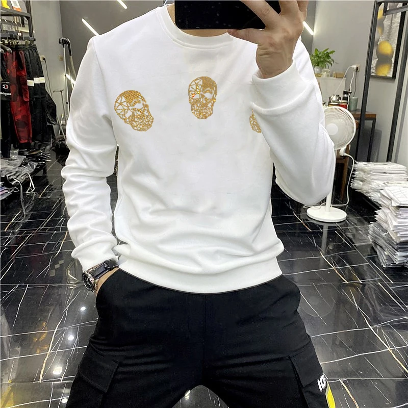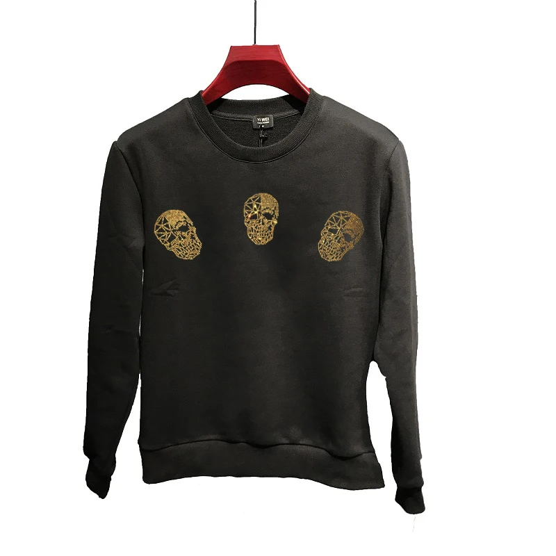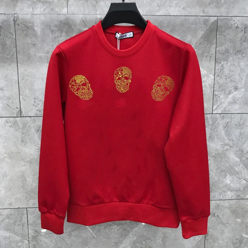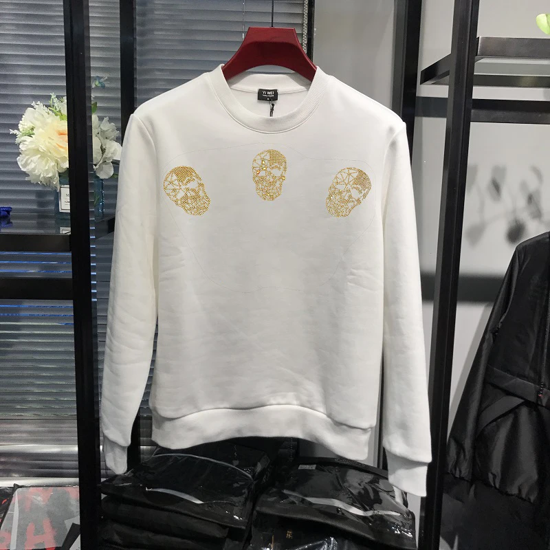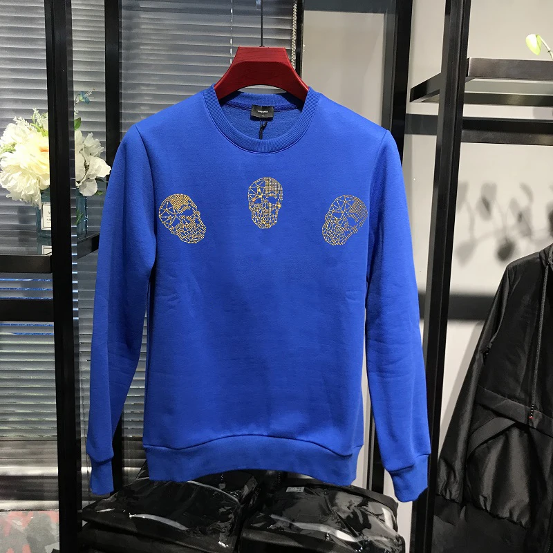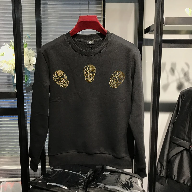 High Quality Plus Fleece Men’s Hoodie For Fall And Winter Warmth Pure Cotton New Skull Fashion European Style Pullover