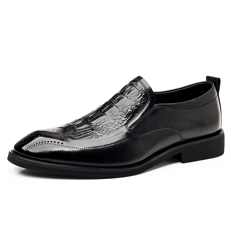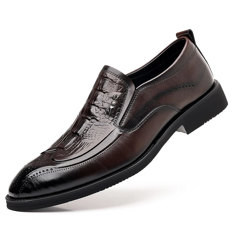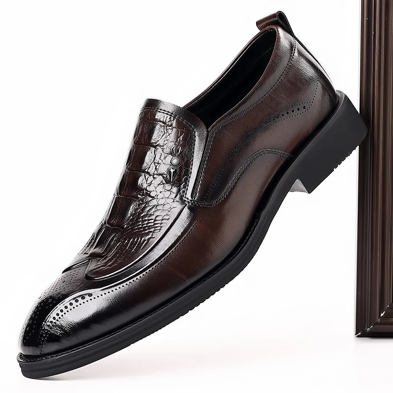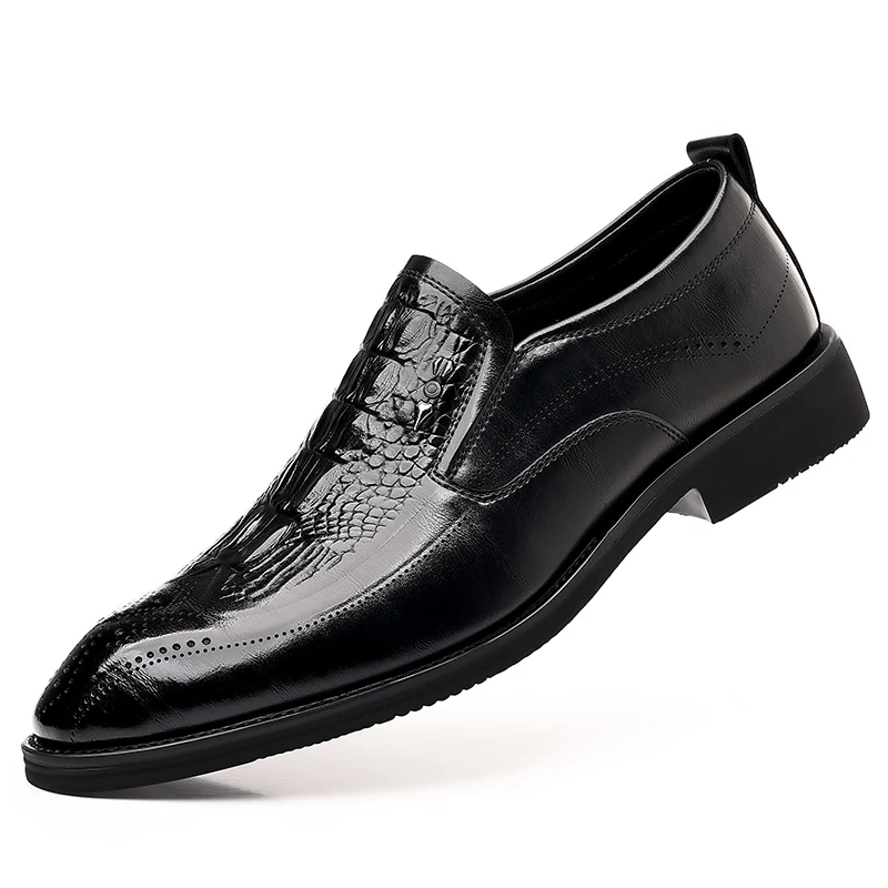 Leather Shoes for Men 2025 Four Seasons New Slip-on Business Formal Crocodile Print British Style Casual Wedding Groom Shoes