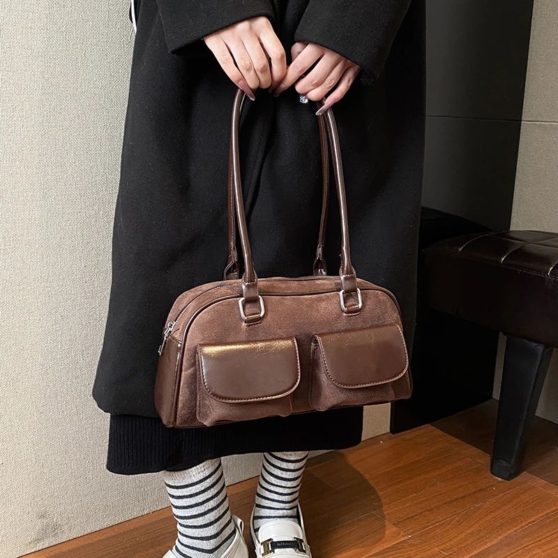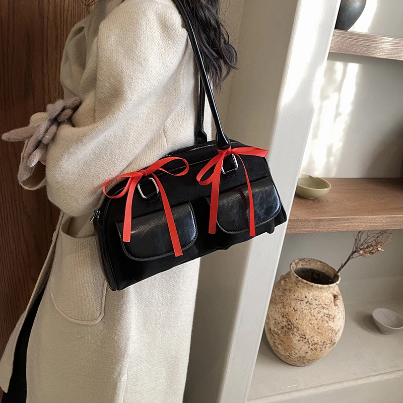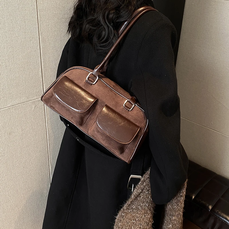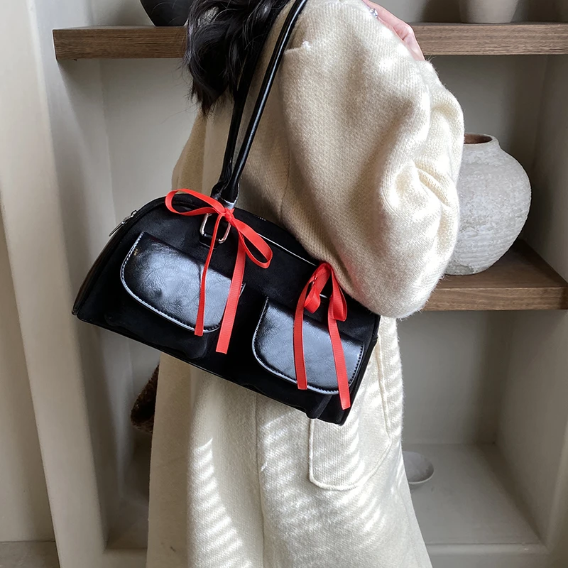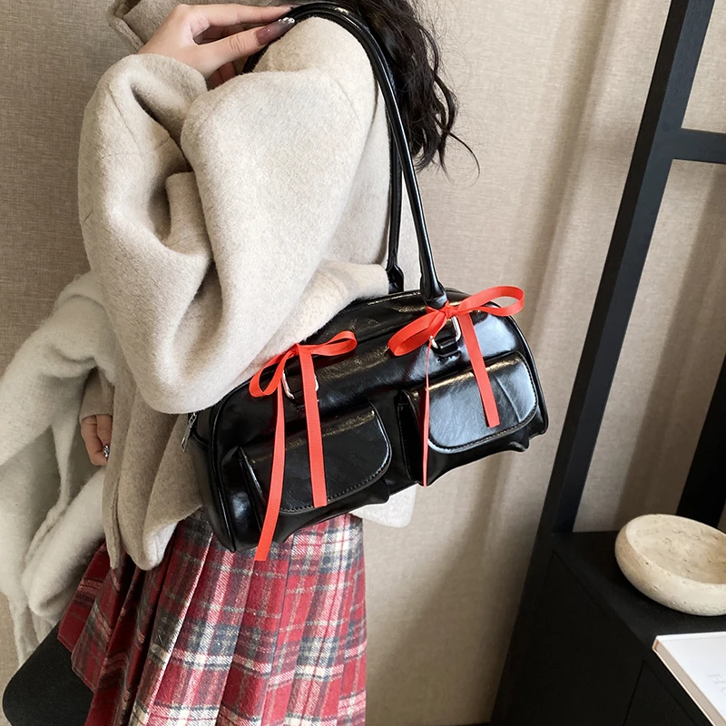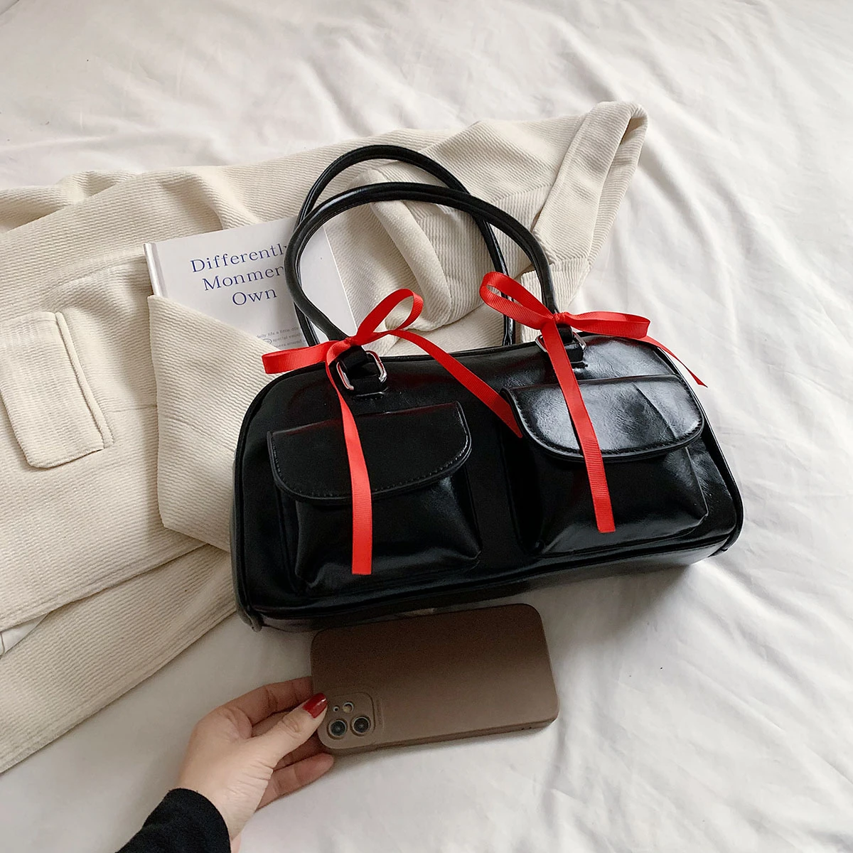 LEFTSIDE Small PU Leather Double Pockets Design Shoulder Bags For Women 2023 Female Underarm Bag Lady Handbags And Purses