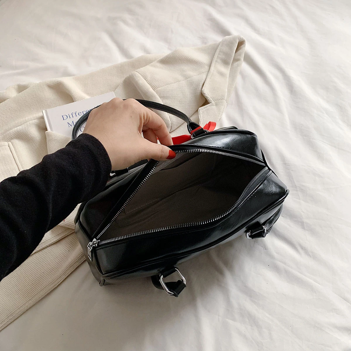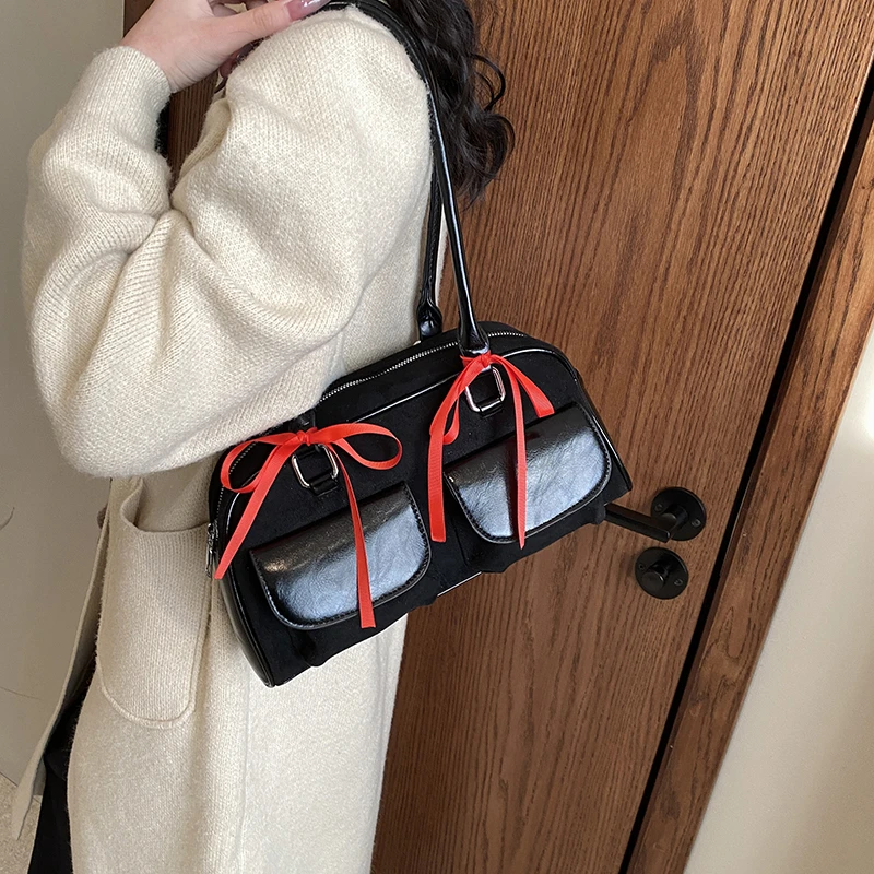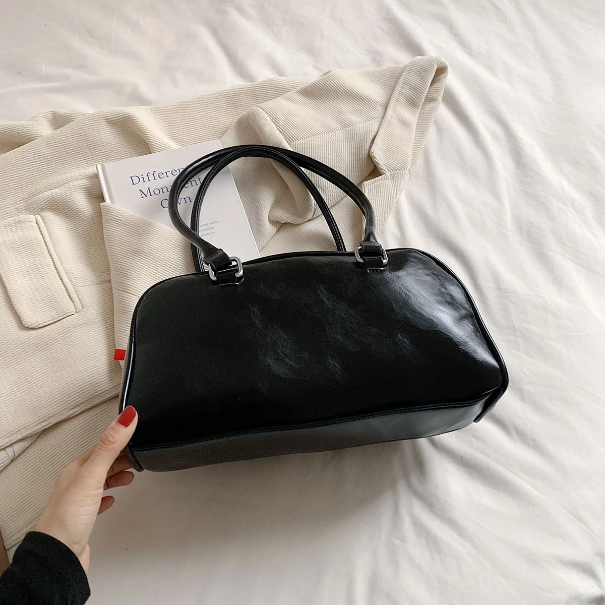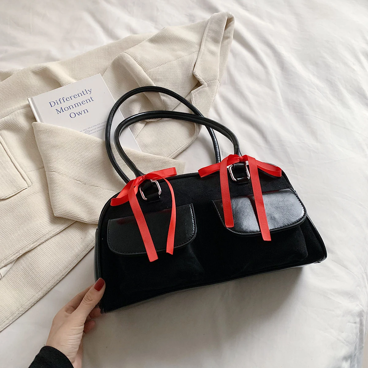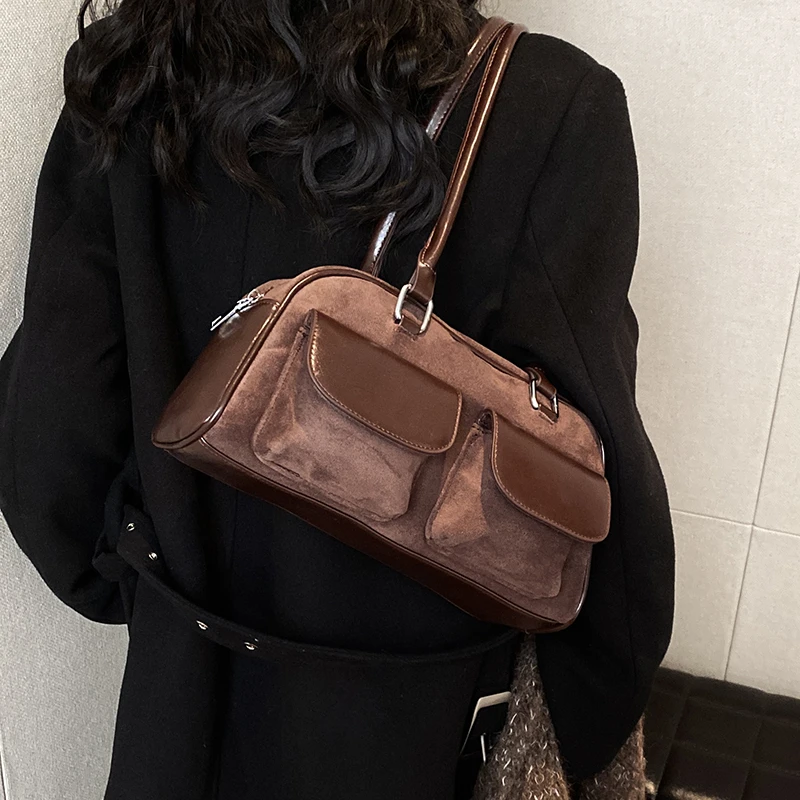 LEFTSIDE Small PU Leather Double Pockets Design Shoulder Bags For Women 2023 Female Underarm Bag Lady Handbags And Purses