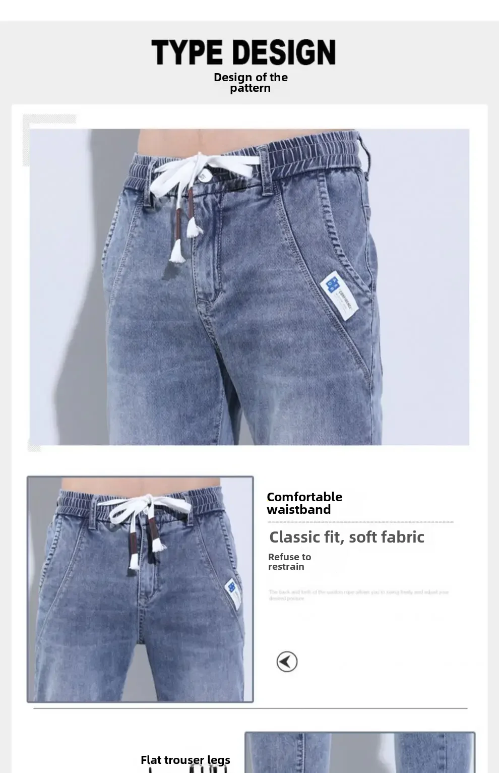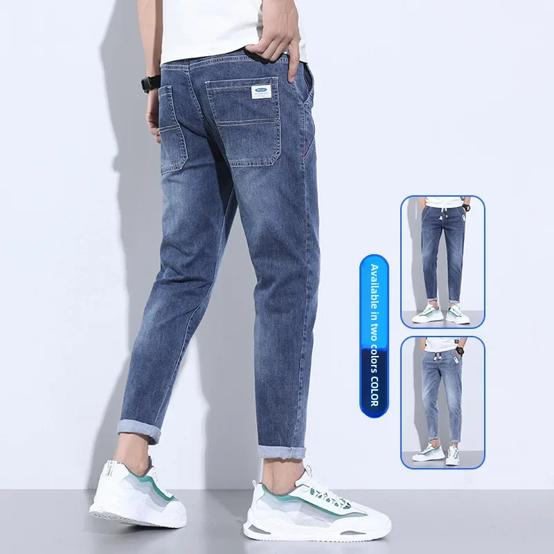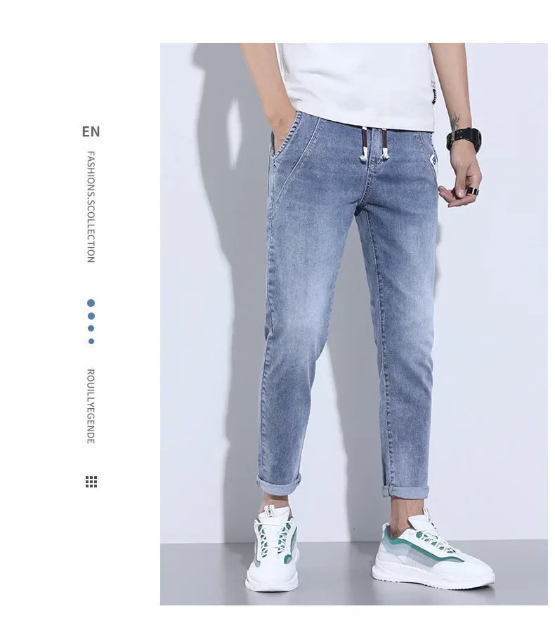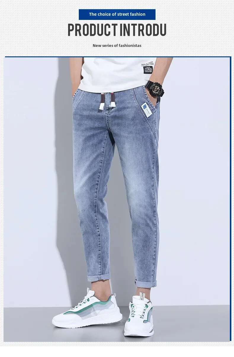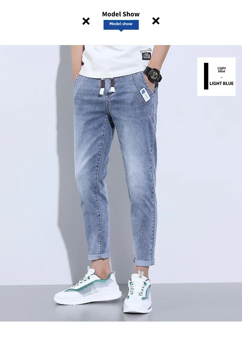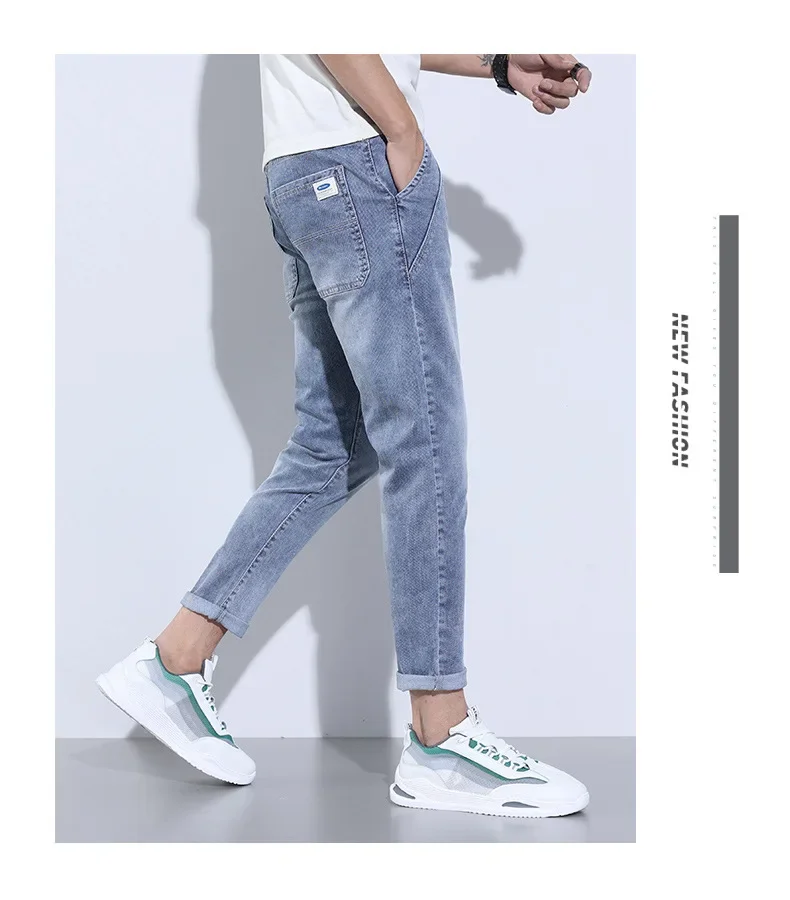 Lightweight Jeans Men’s Slim Fit Denim New Casual Pants Summer Loose Fit Cropped Pants Casual Style For Men