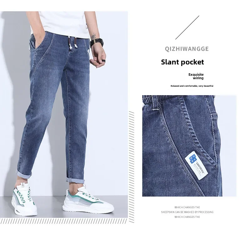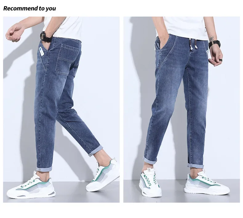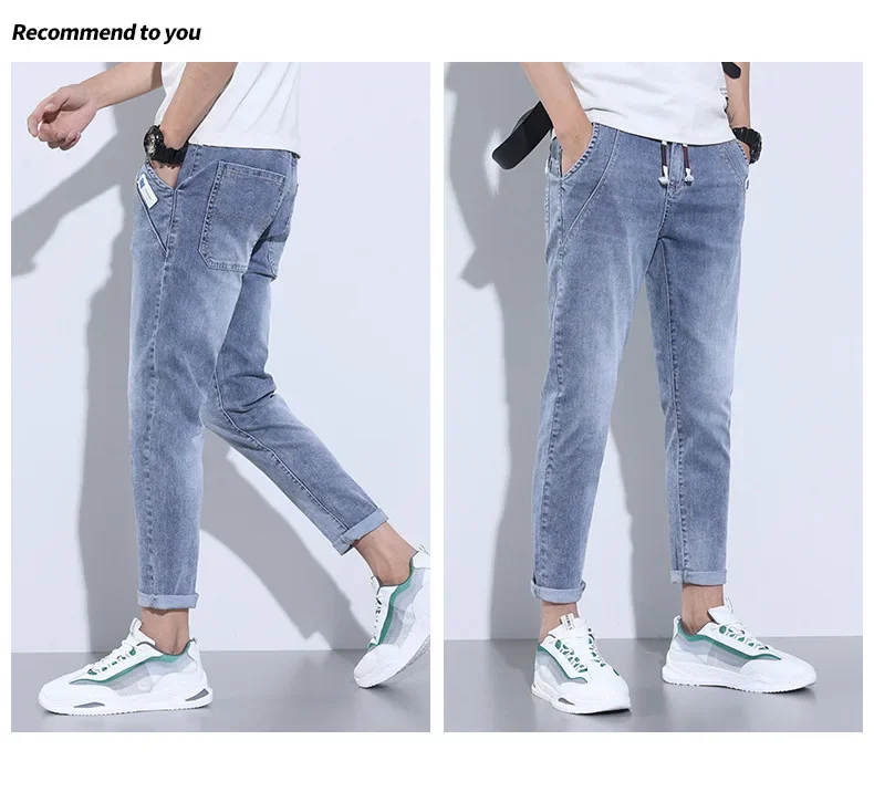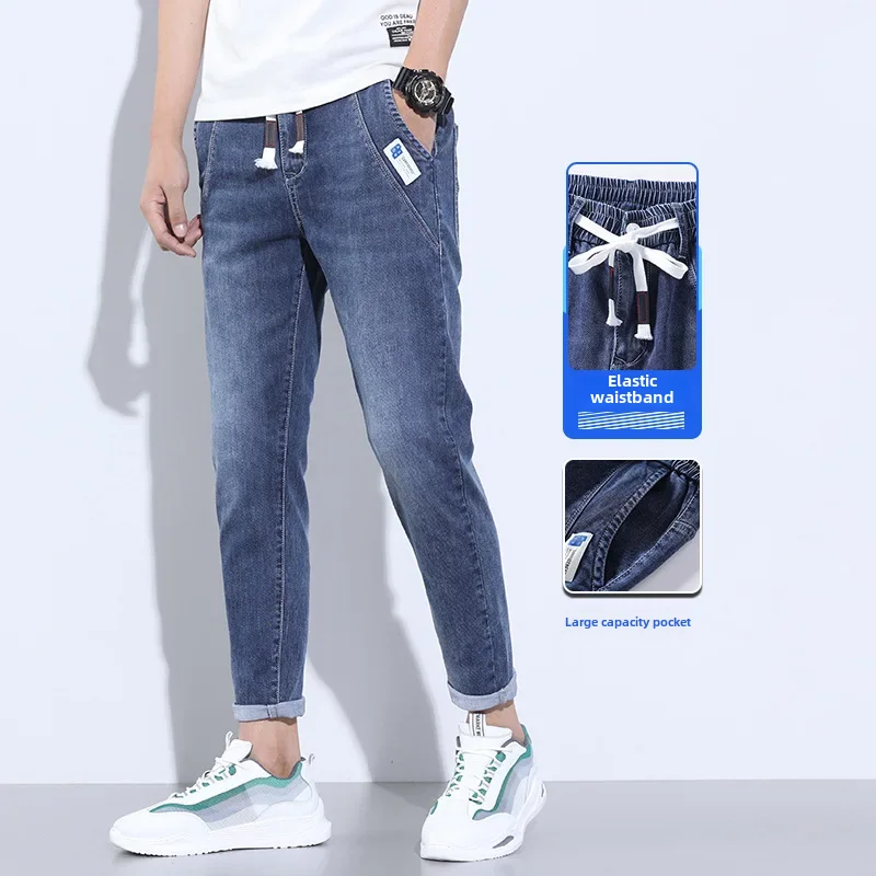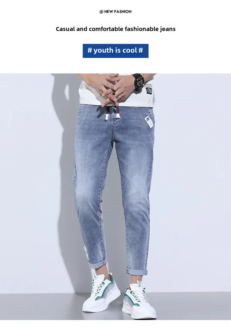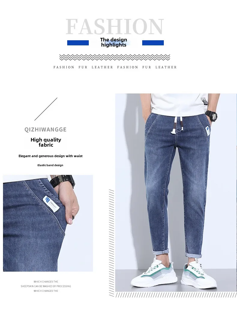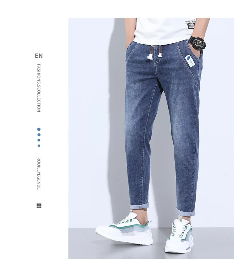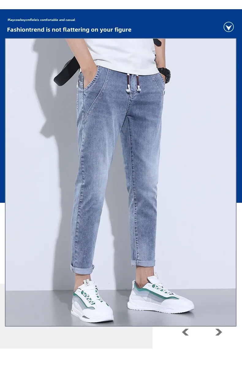 Lightweight Jeans Men’s Slim Fit Denim New Casual Pants Summer Loose Fit Cropped Pants Casual Style For Men