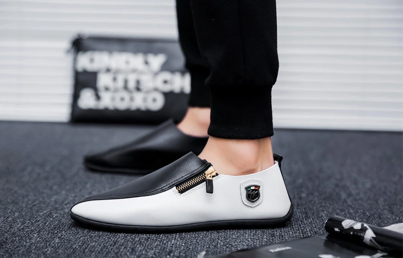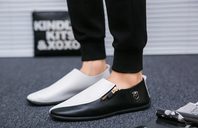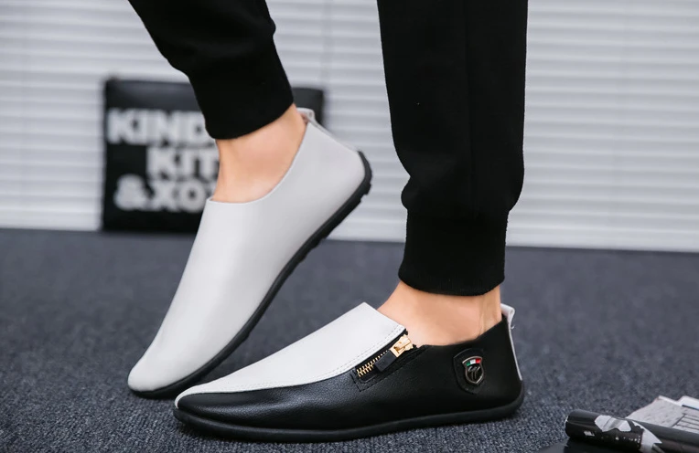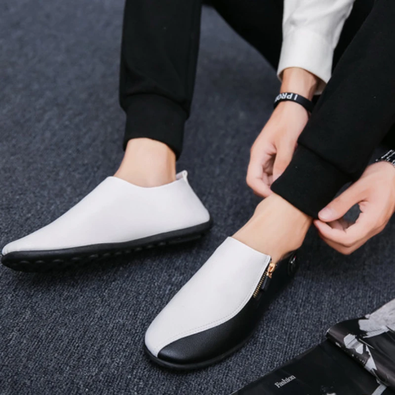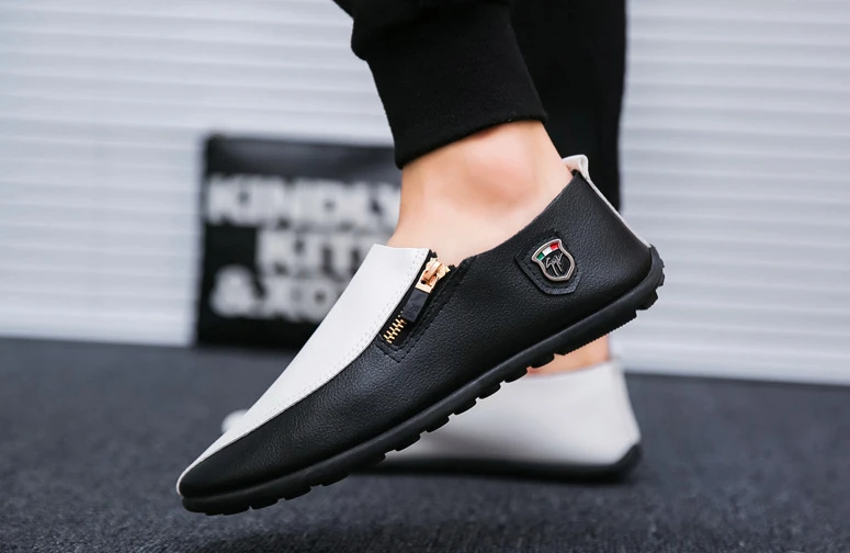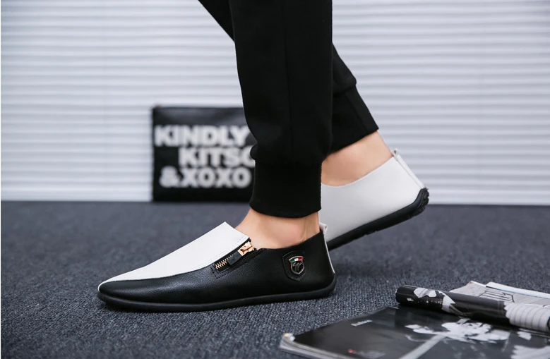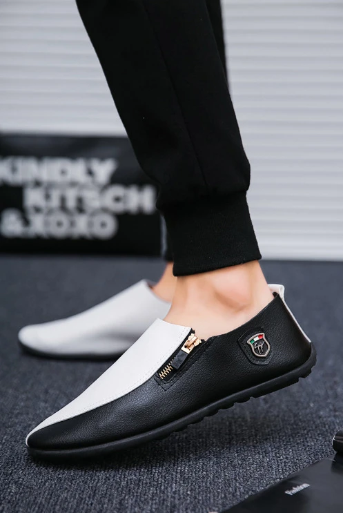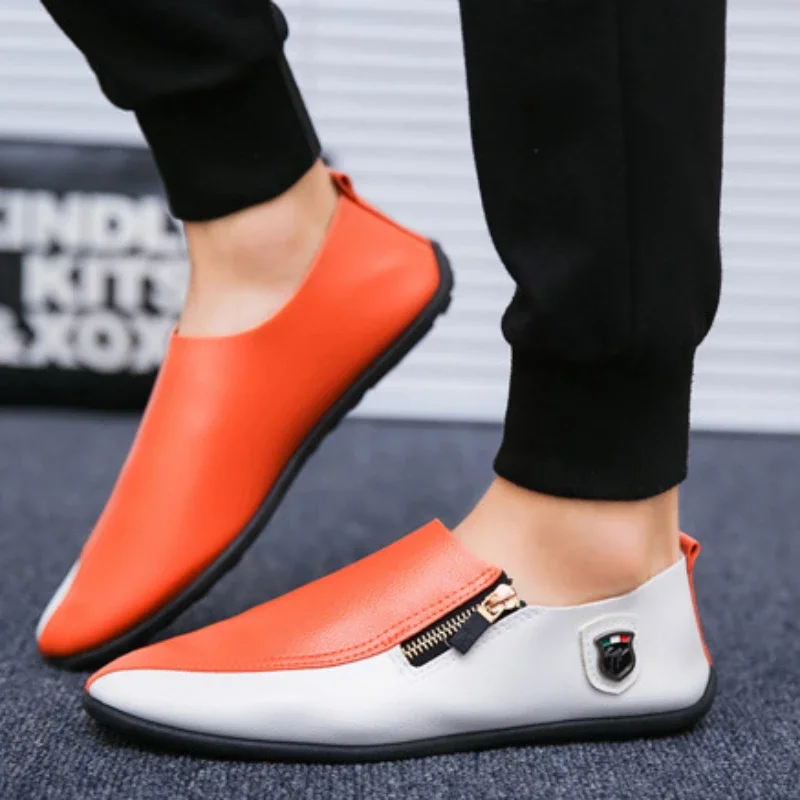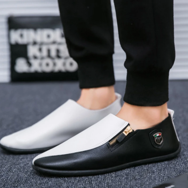Male Casual Shoe Moccasin Loafers Men\’s Leather Shoes Soft Flat Round Toe High Quality Fashion Pu Common Slip-on Elegant Cowhide