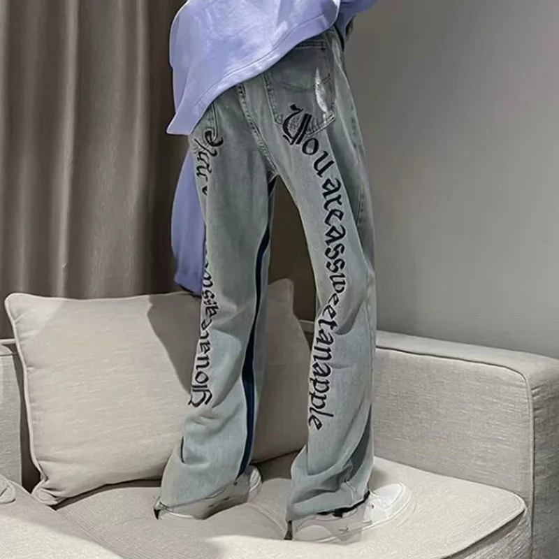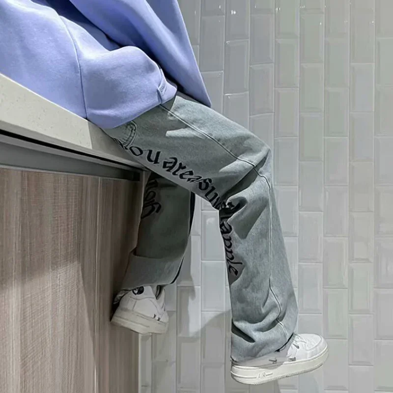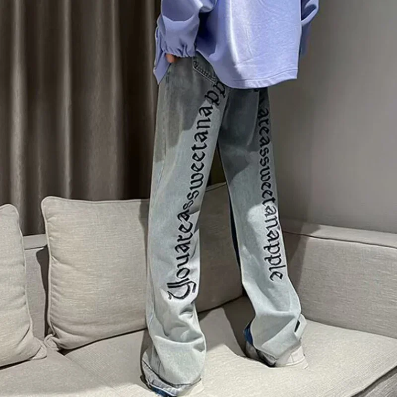 Man Brand Retro Streetwear Trousers Male Fashion Hip-hop Chic Casual Loose Straight Pants Goth Punk Letter Print Baggy Jeans