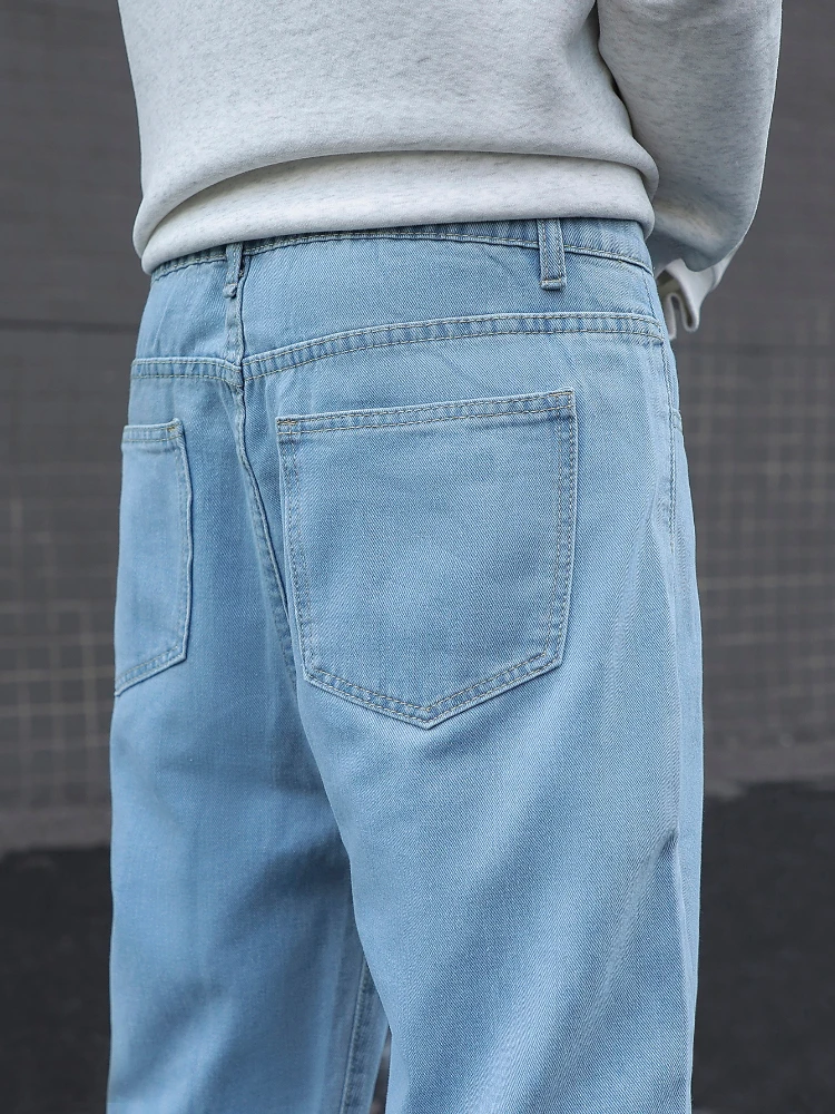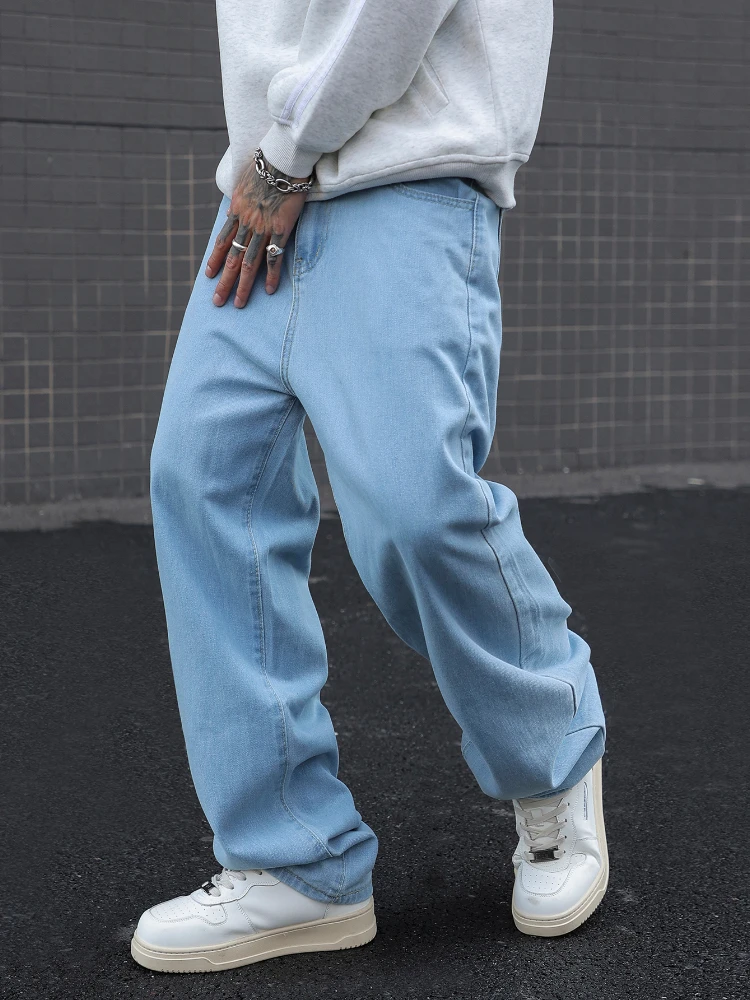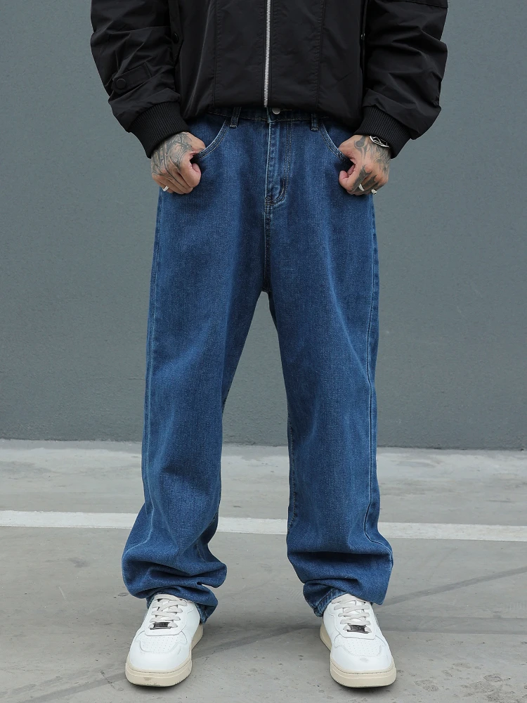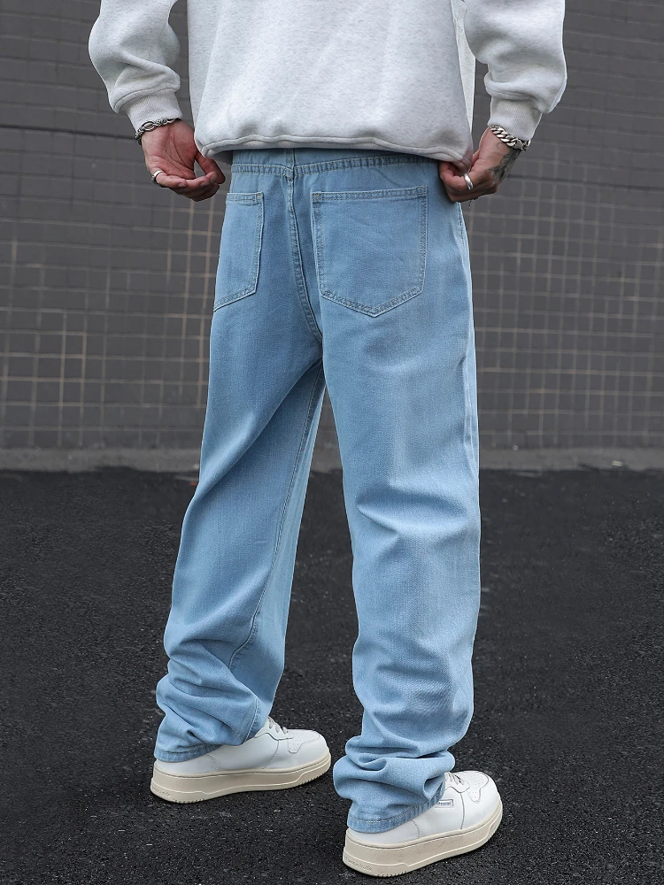 New Men’s Cotton Baggy Y2K Jeans Fashion Male Clothes Elastic Waist Washed Wide Leg Pants Solid Straight Loose Denim Trousers