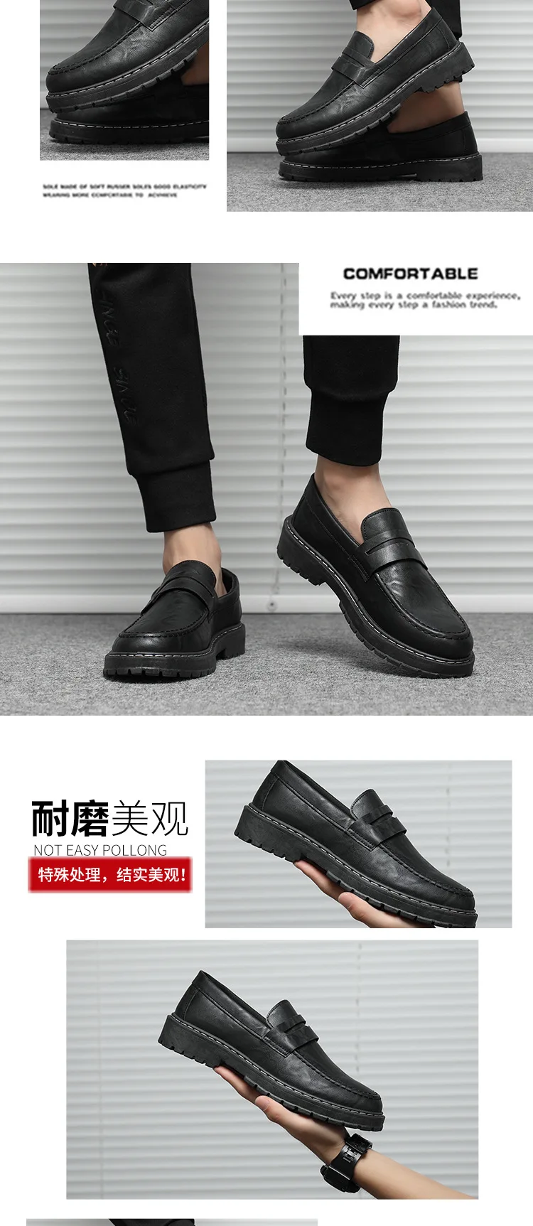 New Platform Loafers Men Pu Leather Shoes Breathable Slip-On Loafer Shoe Solid Mens Casual Shoes Handmade Men\’s Dress Shoes