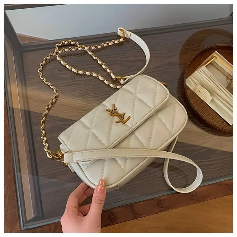 New Rhombic Chain Female Bag Versatile One-shoulder Small Square Bag Crossbody For Women High-end Grid Texture Chain Bag