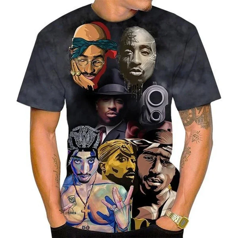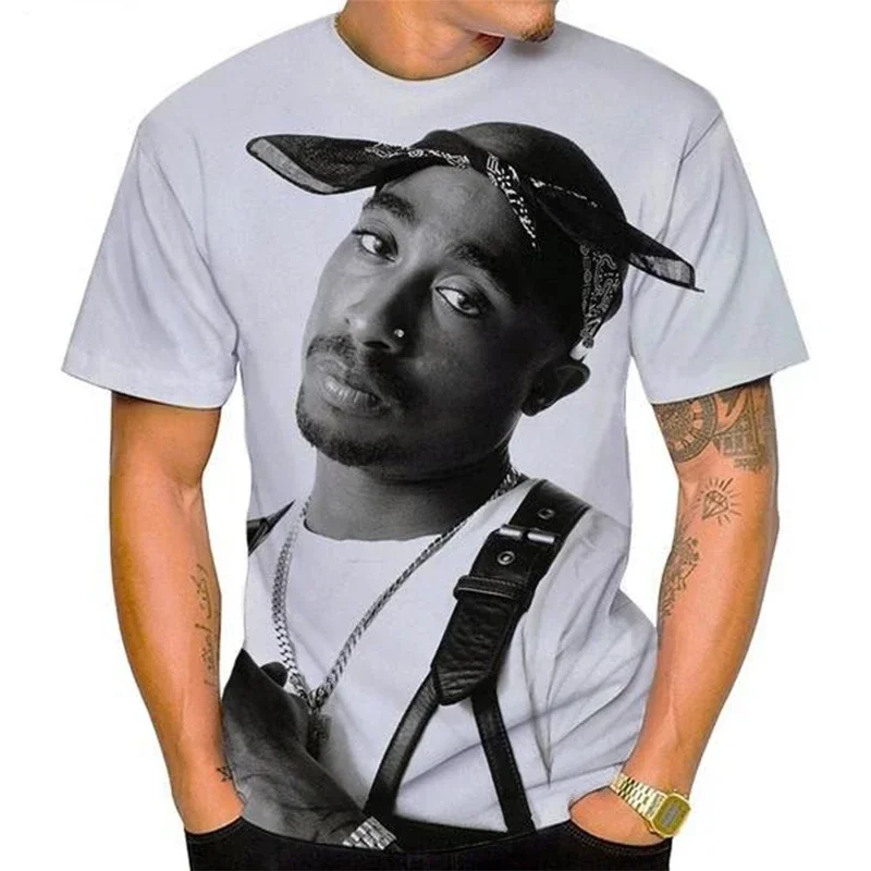 New Women Men Fashion 3D Print Tupac Shakur 2Pac T-shirt Casual Personality Hip-hop Streetwear Cool T-shirt 100-6XL Clothing