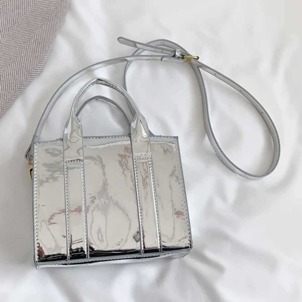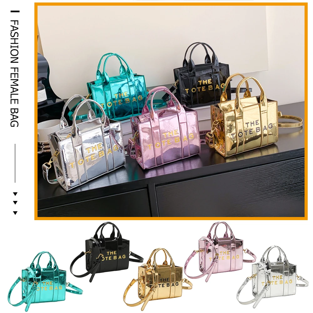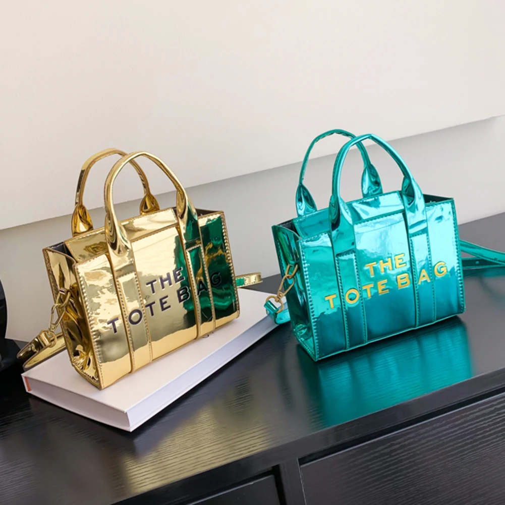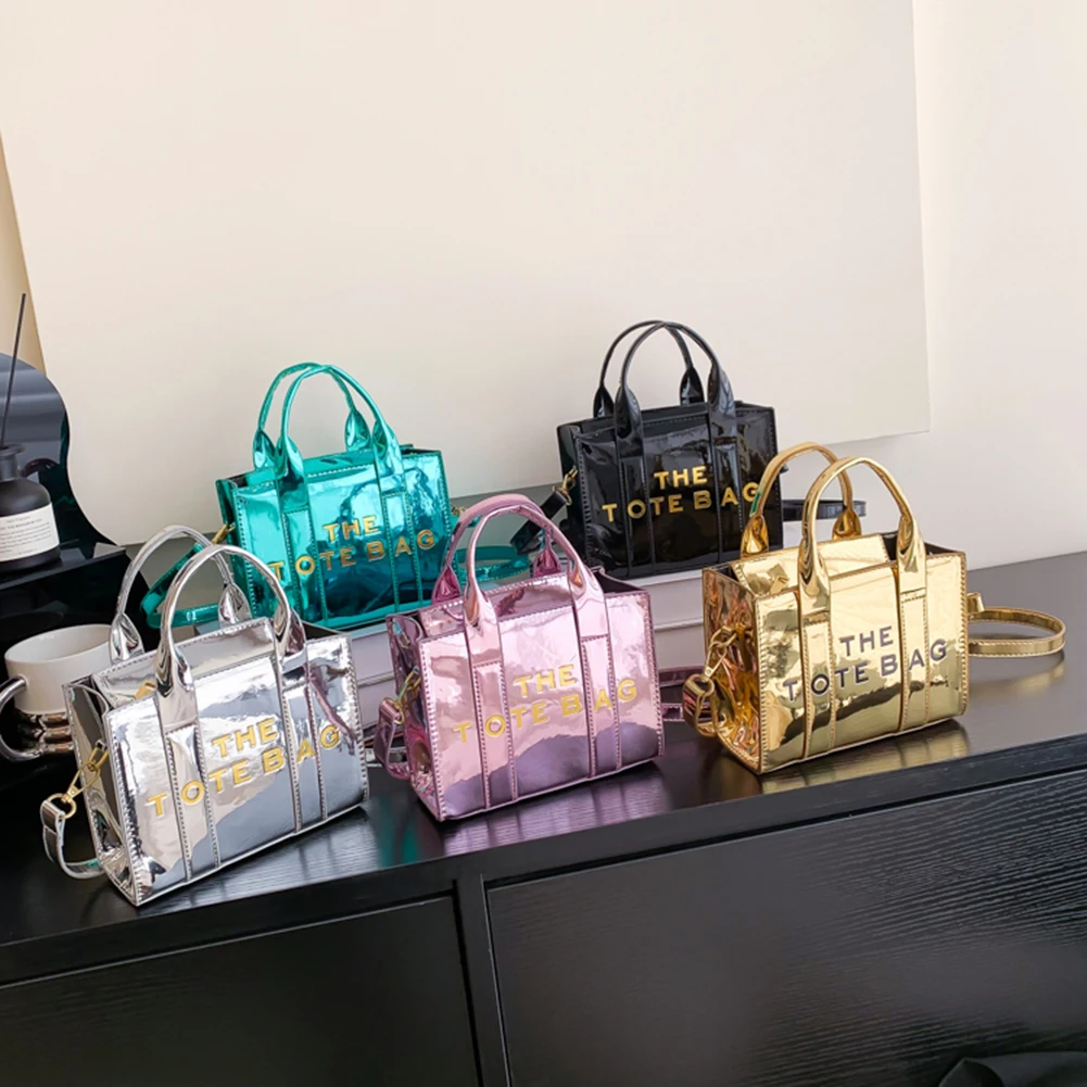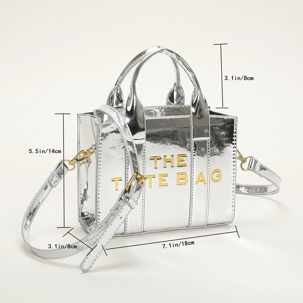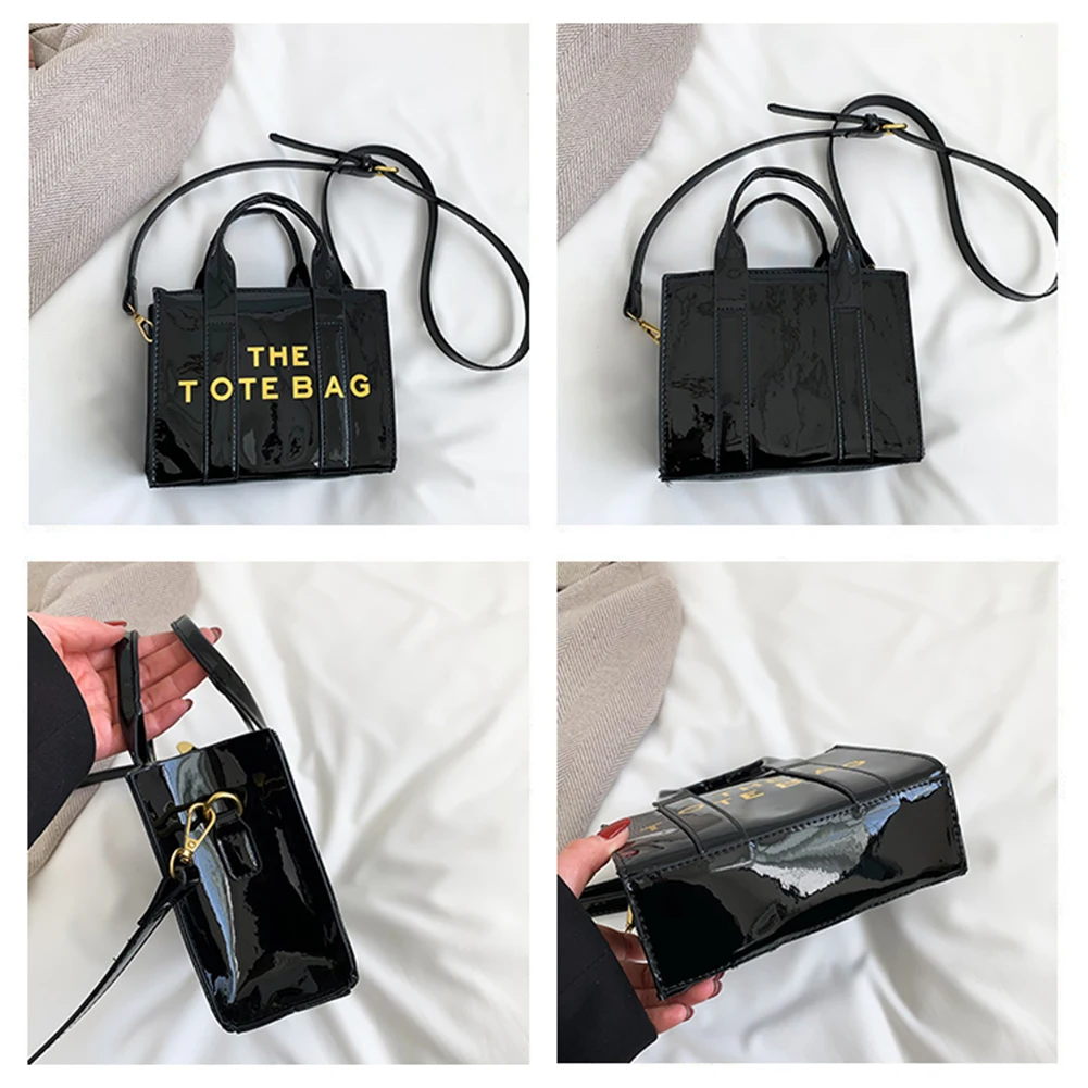 Patent Leather Crossbody Bags Fashion Letter Ladies Tote Bags Casual Adjustable Strap Simple Shiny Portable for Weekend Vacation
