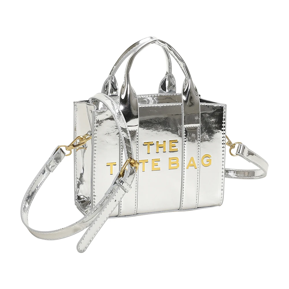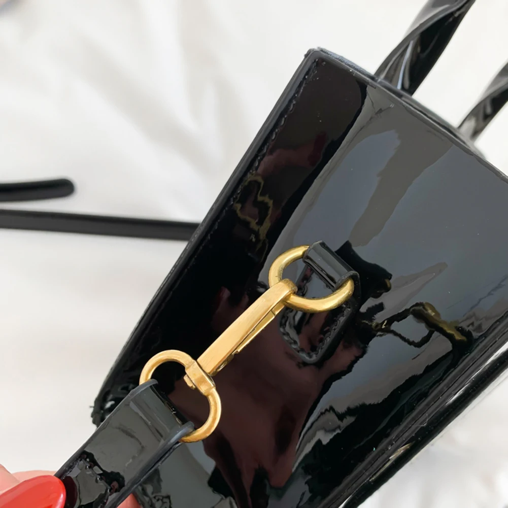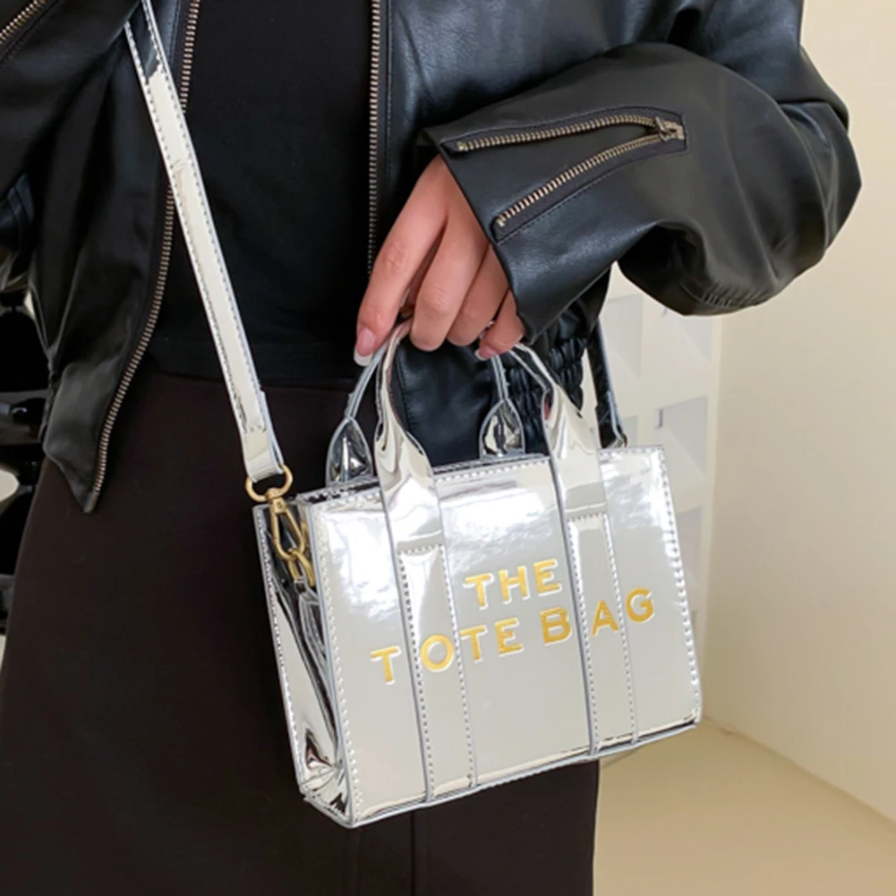 Patent Leather Shoulder Bag Fashion Letter Female Hand Bag Casual Adjustable Strap Simple Shiny Portable for Weekend Vacation