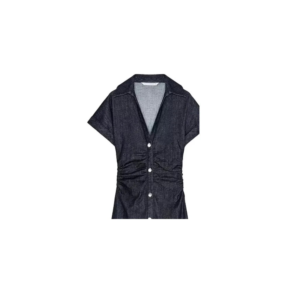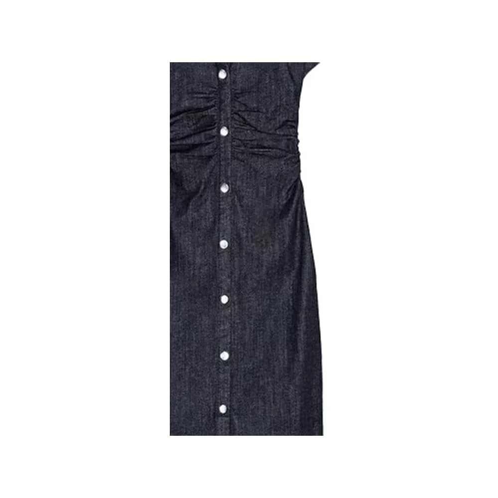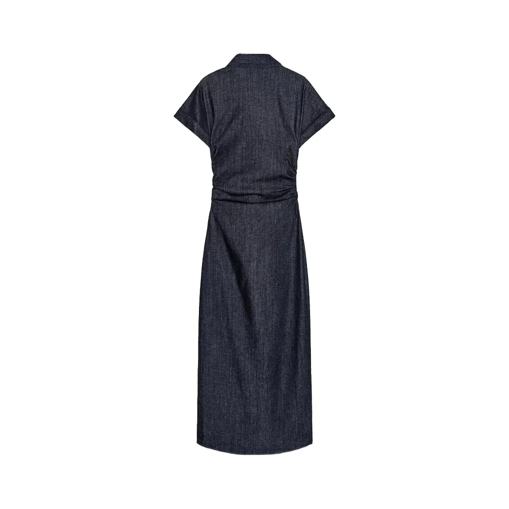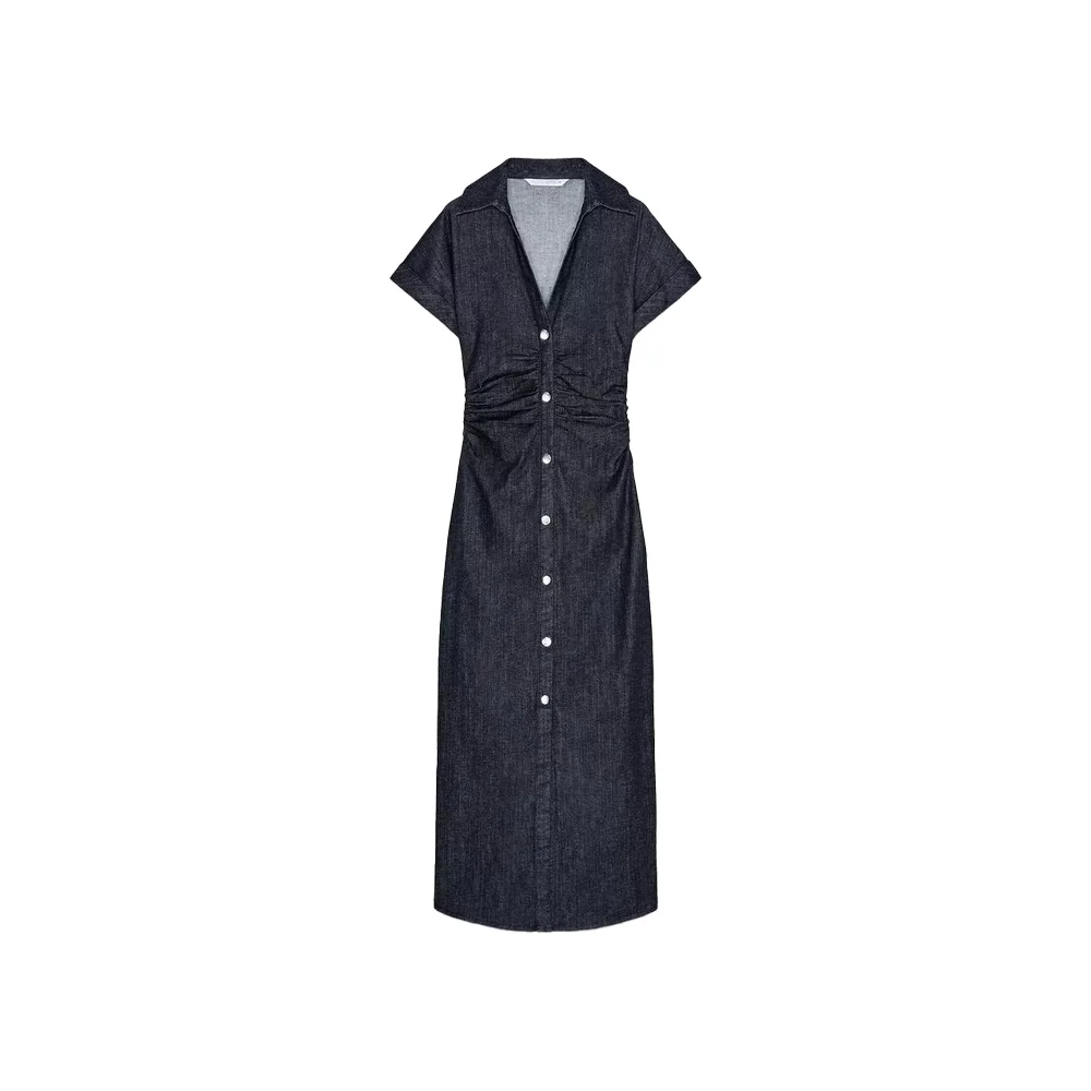 PB&ZA Women 2025 Spring New Fashion Denim Midi dress Vintage Short Sleeve Single-breasted Casual Chic Female Dresses Mujer