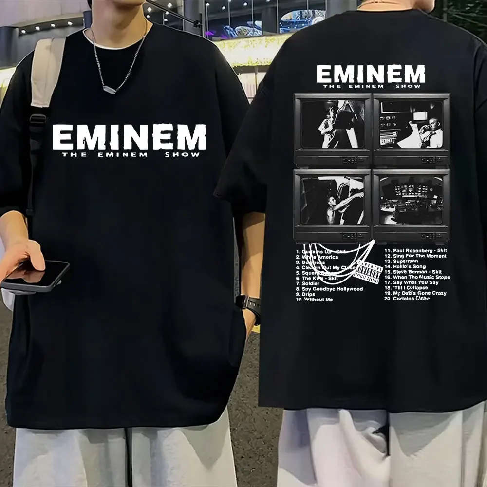 Rapper Eminem Music Album T Shirt World Tour Gift for Fan Graphic T-shirt Men Women Vintage Oversized classic Tshirts Streetwear