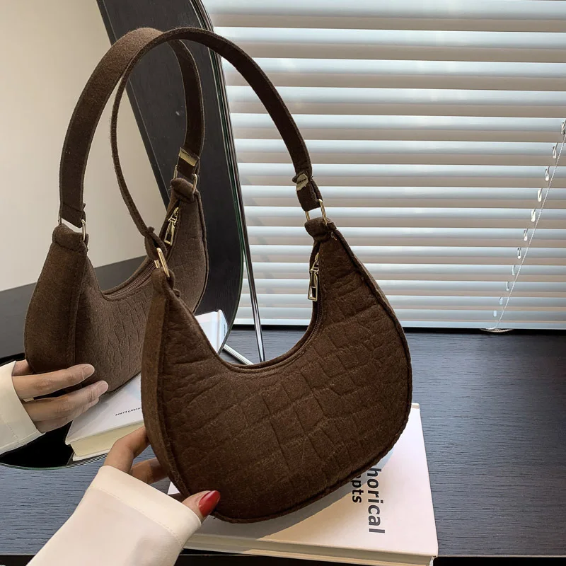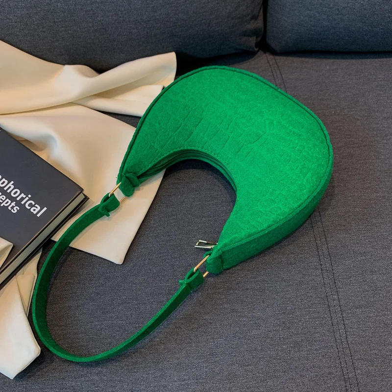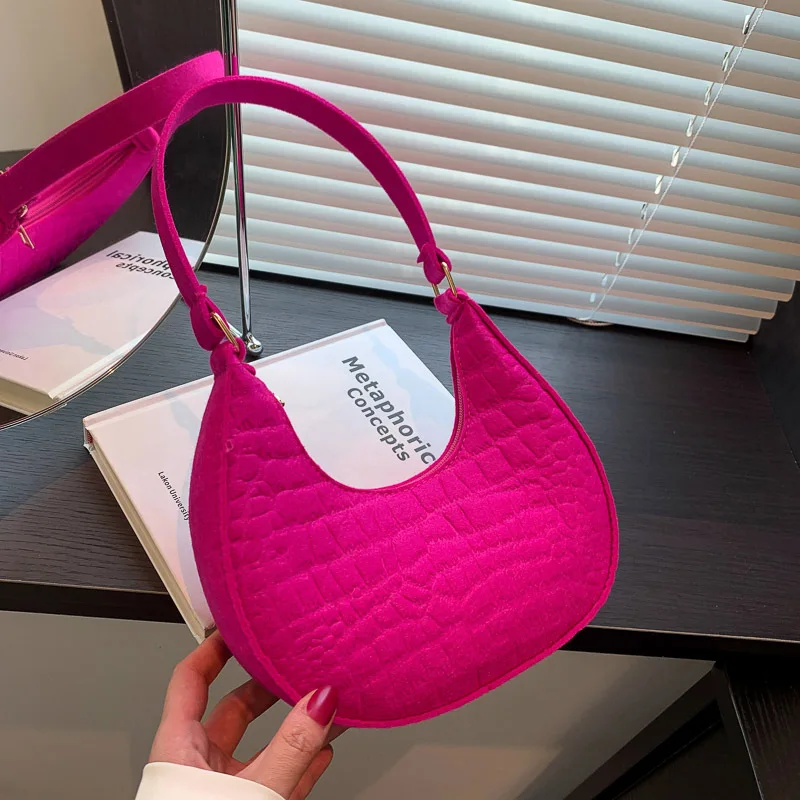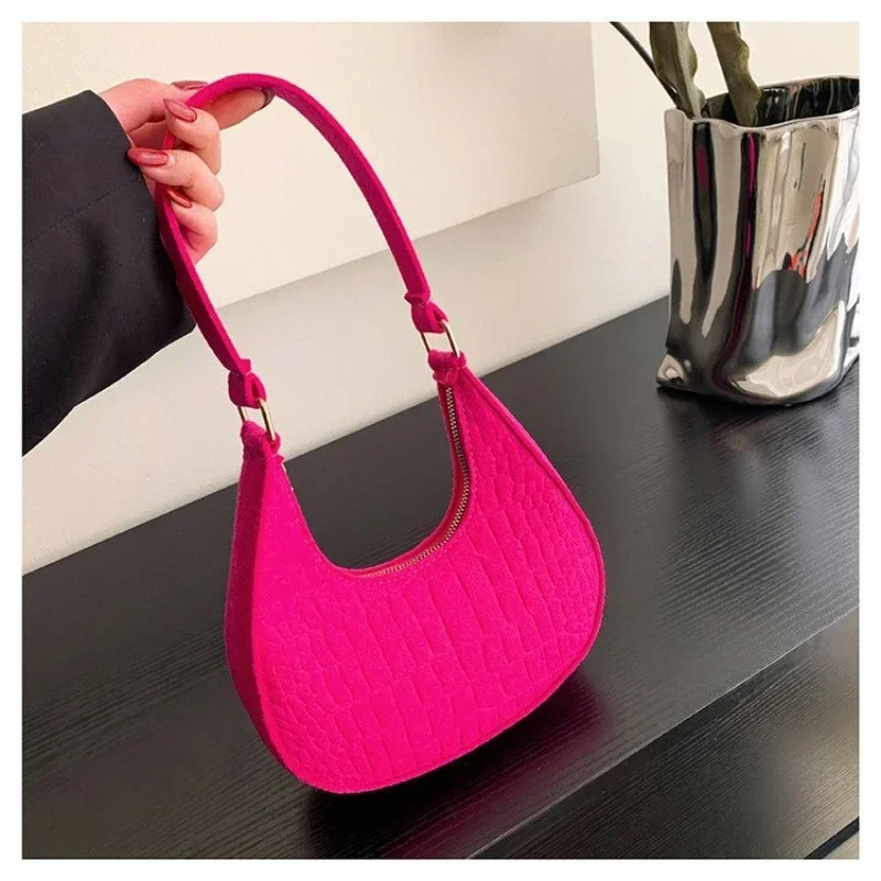 Candy Color Advanced Design Texture Armpit Handbags Felt Shoulder Bags For Women Women’s Subaxillary Bag Purses Crescent Bag