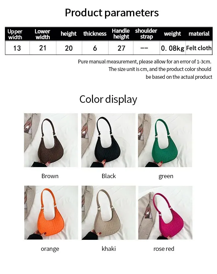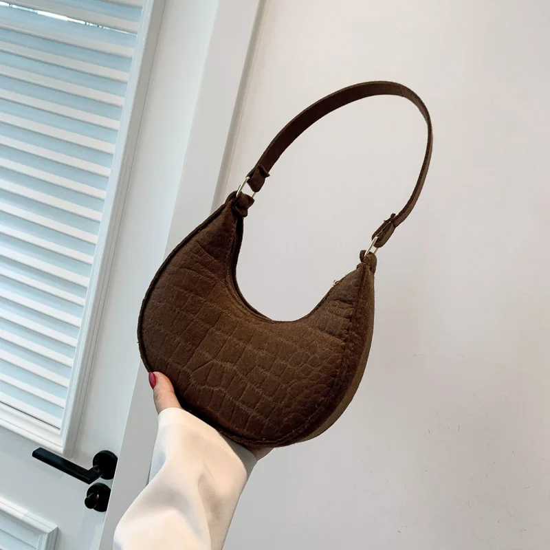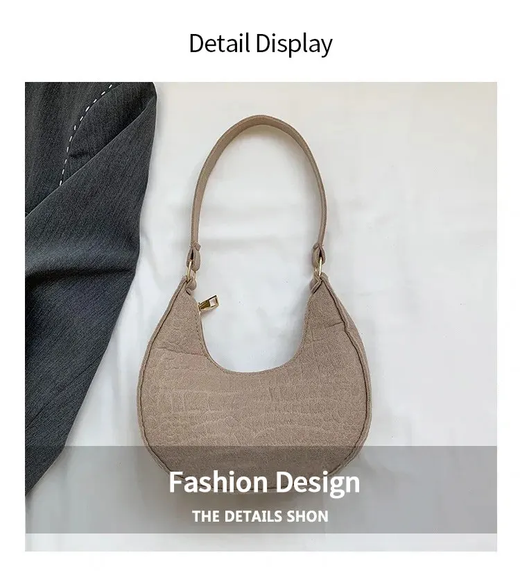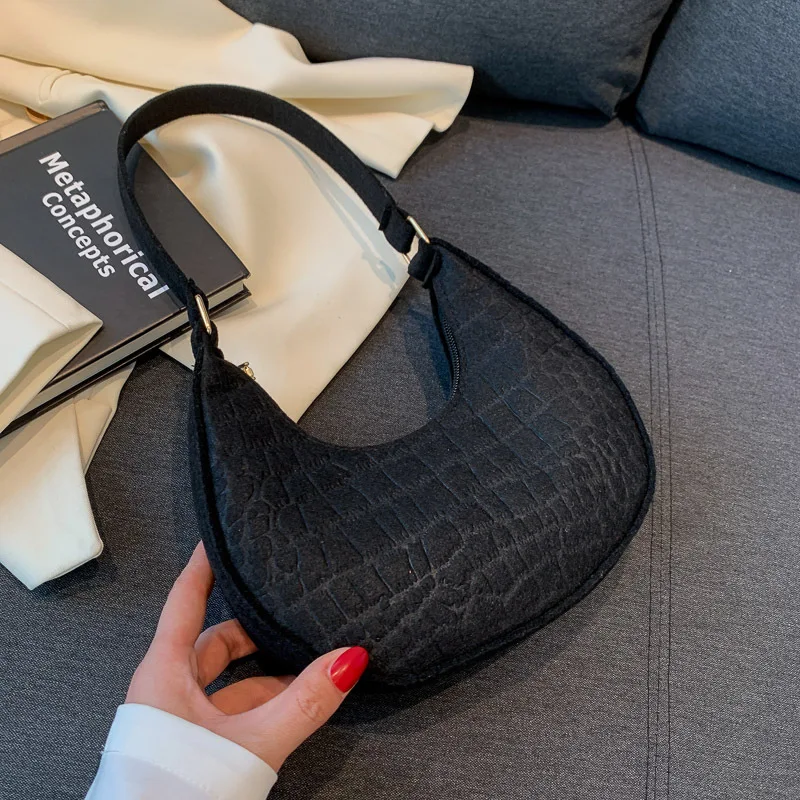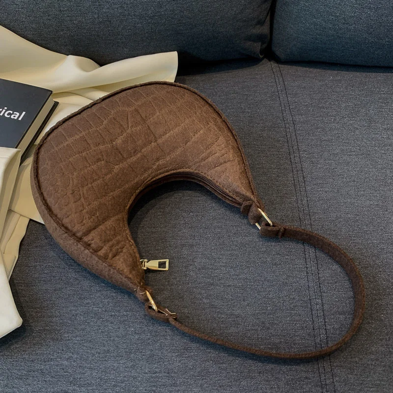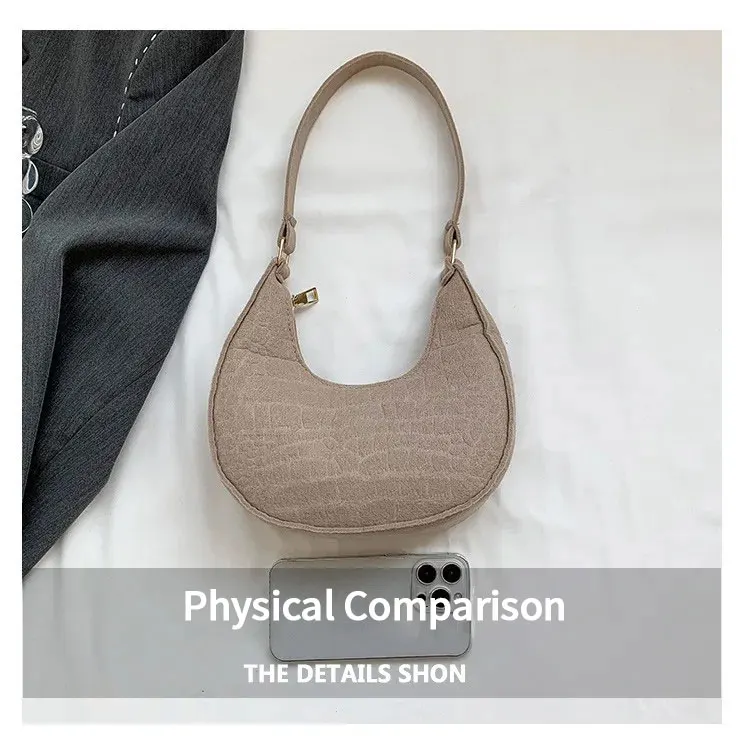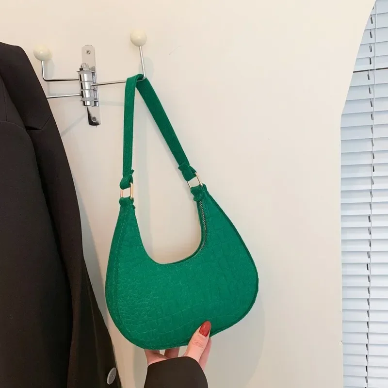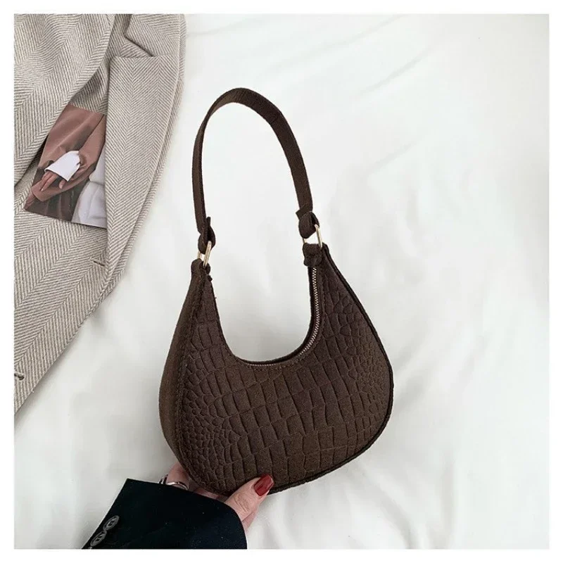 Women’s Crocodile Grain Underarm Bags Felt Fashion Shoulder Bag Cute Simple Handbags Female Purses