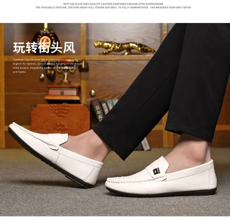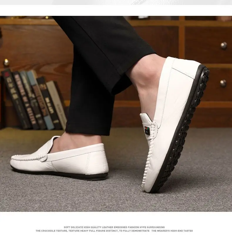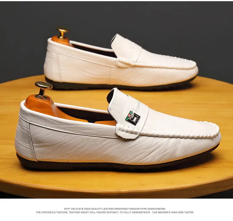 Spring Autumn Men Dress Shoes White Loafers Leather Casual Shoes Slip on Moccasin Shoes Zapatos Casuales Designer Loafers Men
