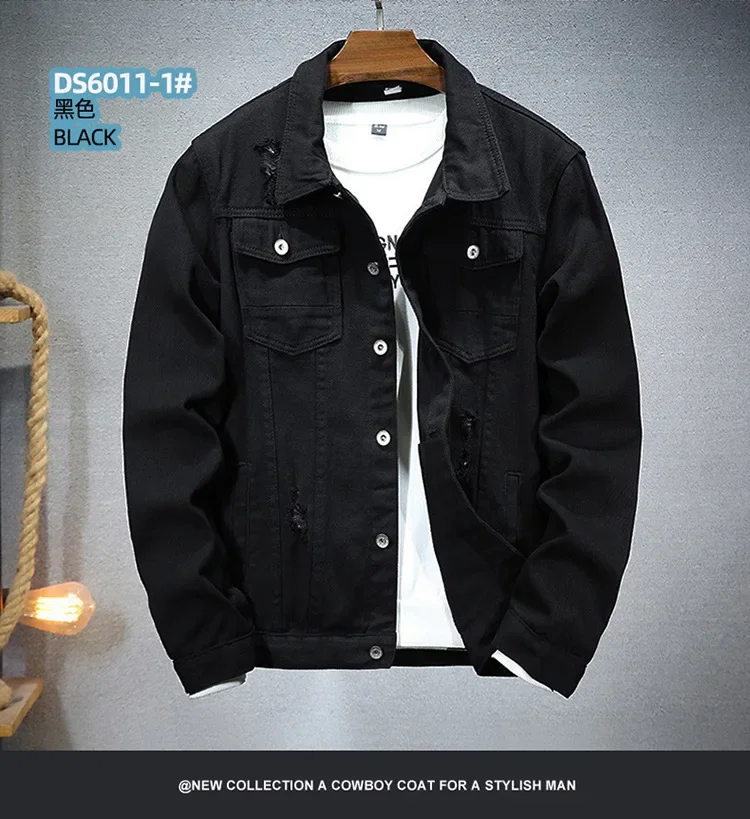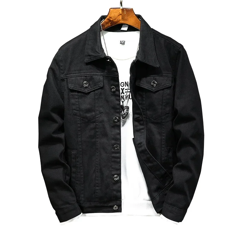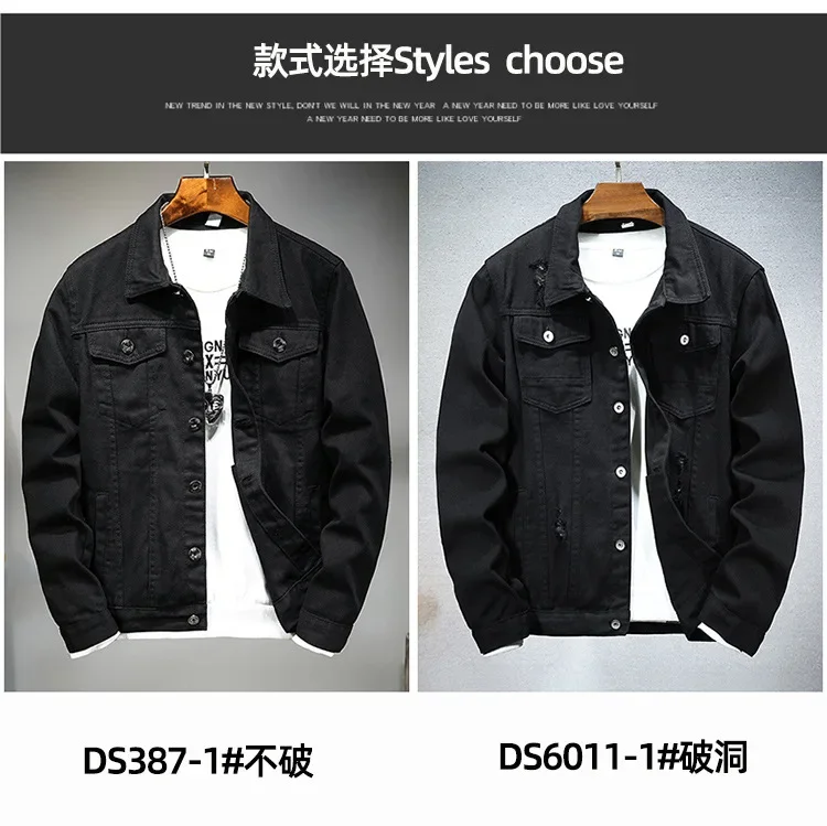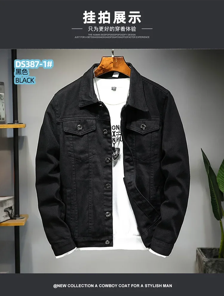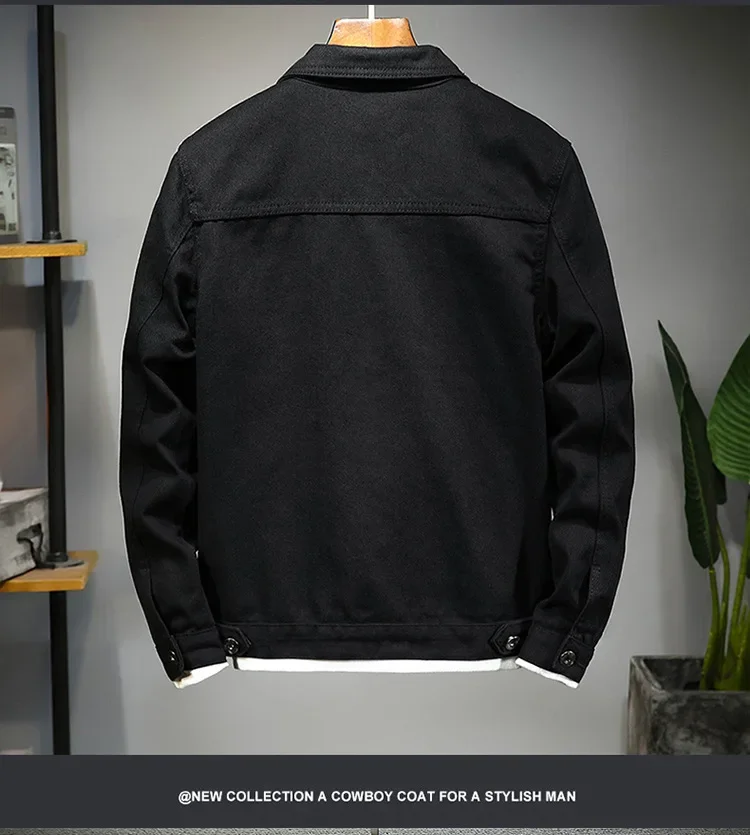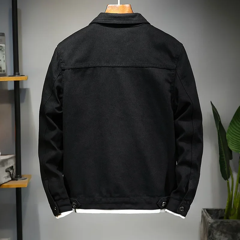 Spring Autumn New Fashion Men’s Casual Trendy Black Solid Color Loose Jeans Jacket Coat Ameican Multi Pocket Swnim Jacket Coat