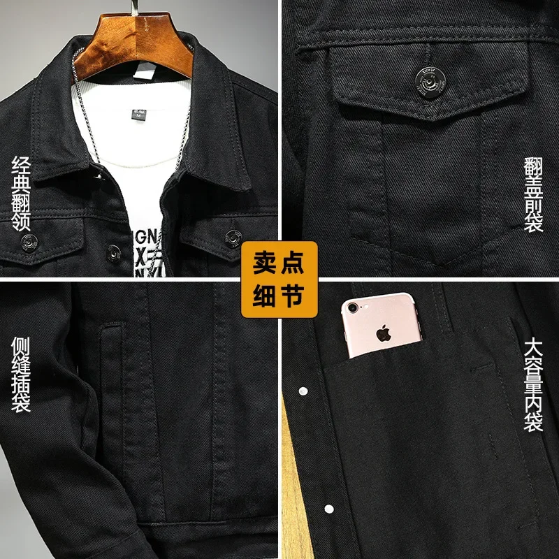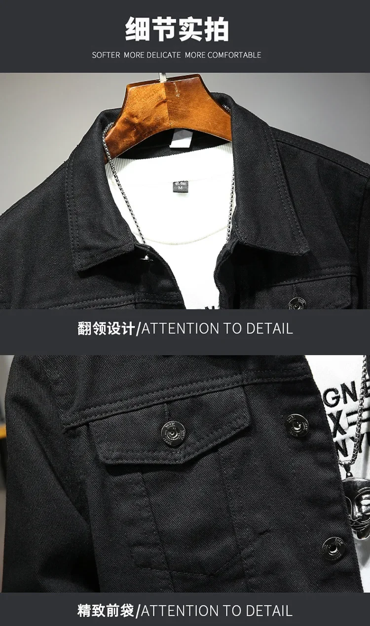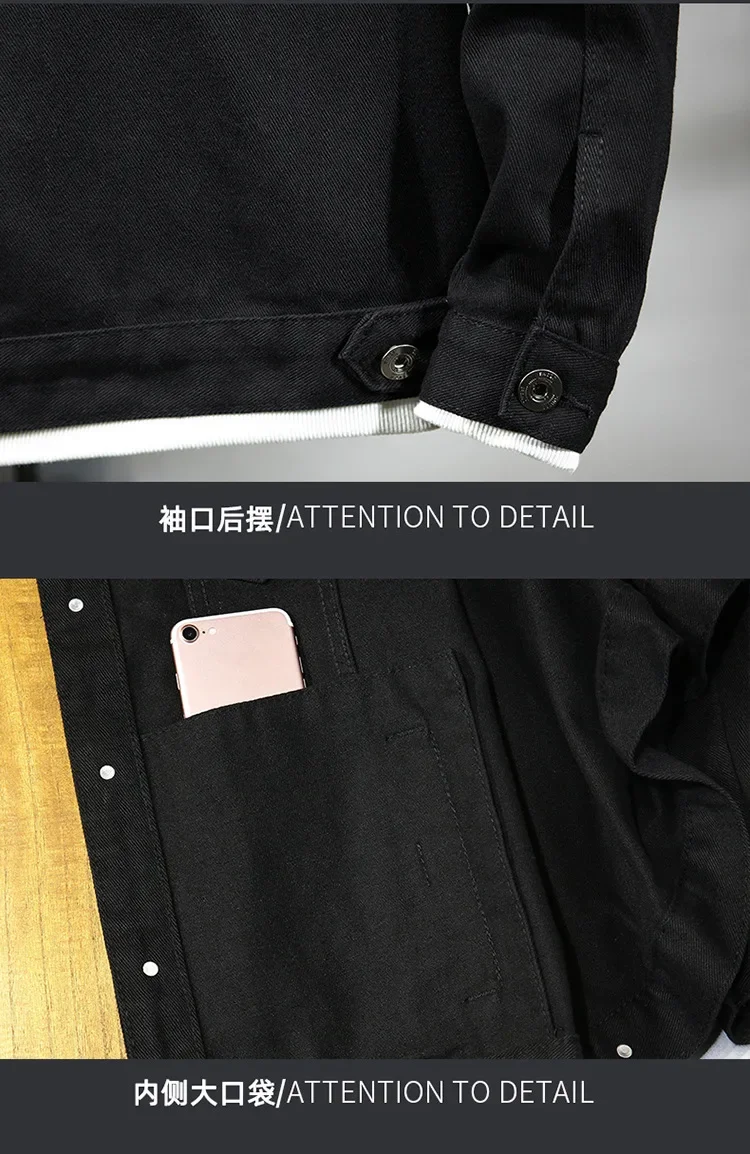 Be the first to review “Spring Autumn New Fashion Men’s Casual Trendy Black Solid Color Loose Jeans Jacket Coat Ameican Multi Pocket Swnim Jacket Coat”