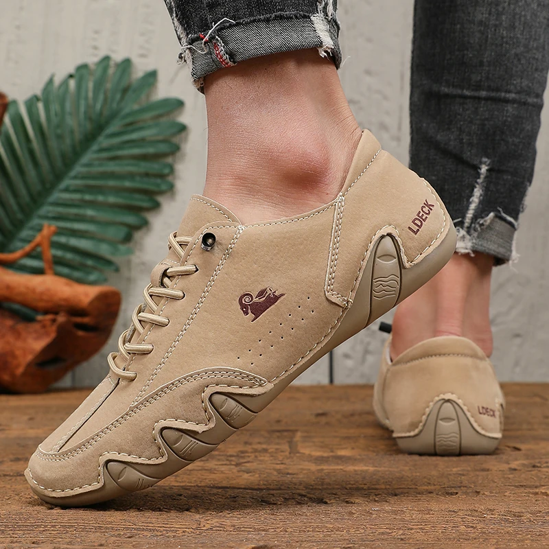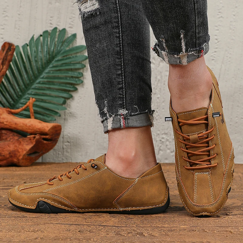 Spring Men Low Cut Leather Sneaker Soft Soled Loafers Anti Slip Flat Bottom Casual Shoes Large Size Zapatillas Para Hombre 2025
