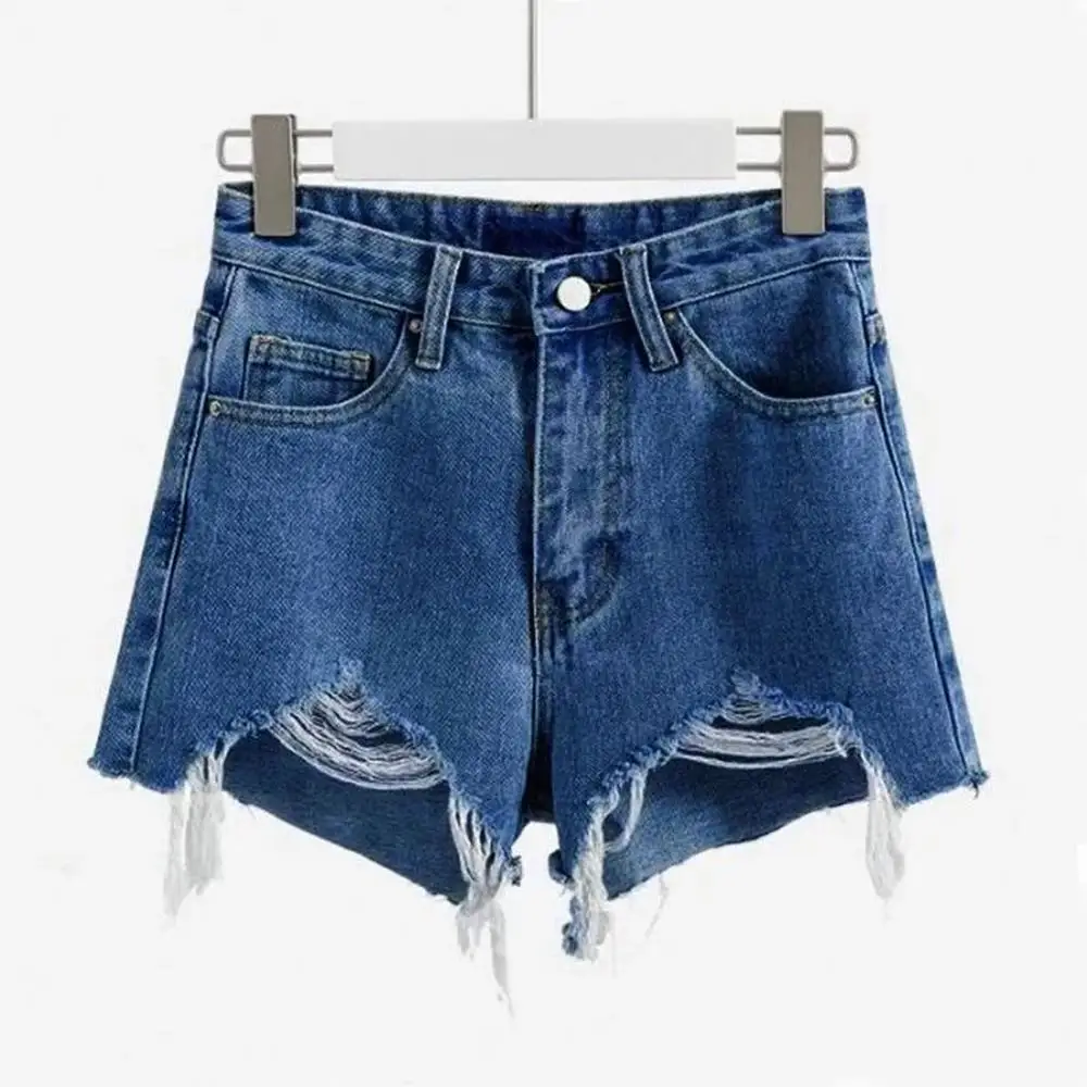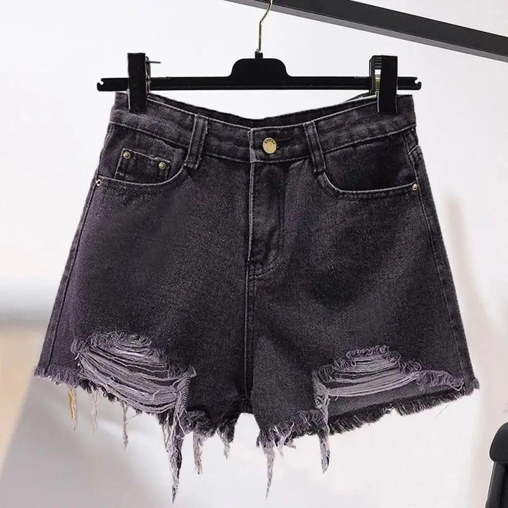 Summer Women\’s Cowboy Shorts Korean High Waist Casual Denim Shorts Pocket Tassel Perforated Ripped Holes Y2K Girls White Jeans