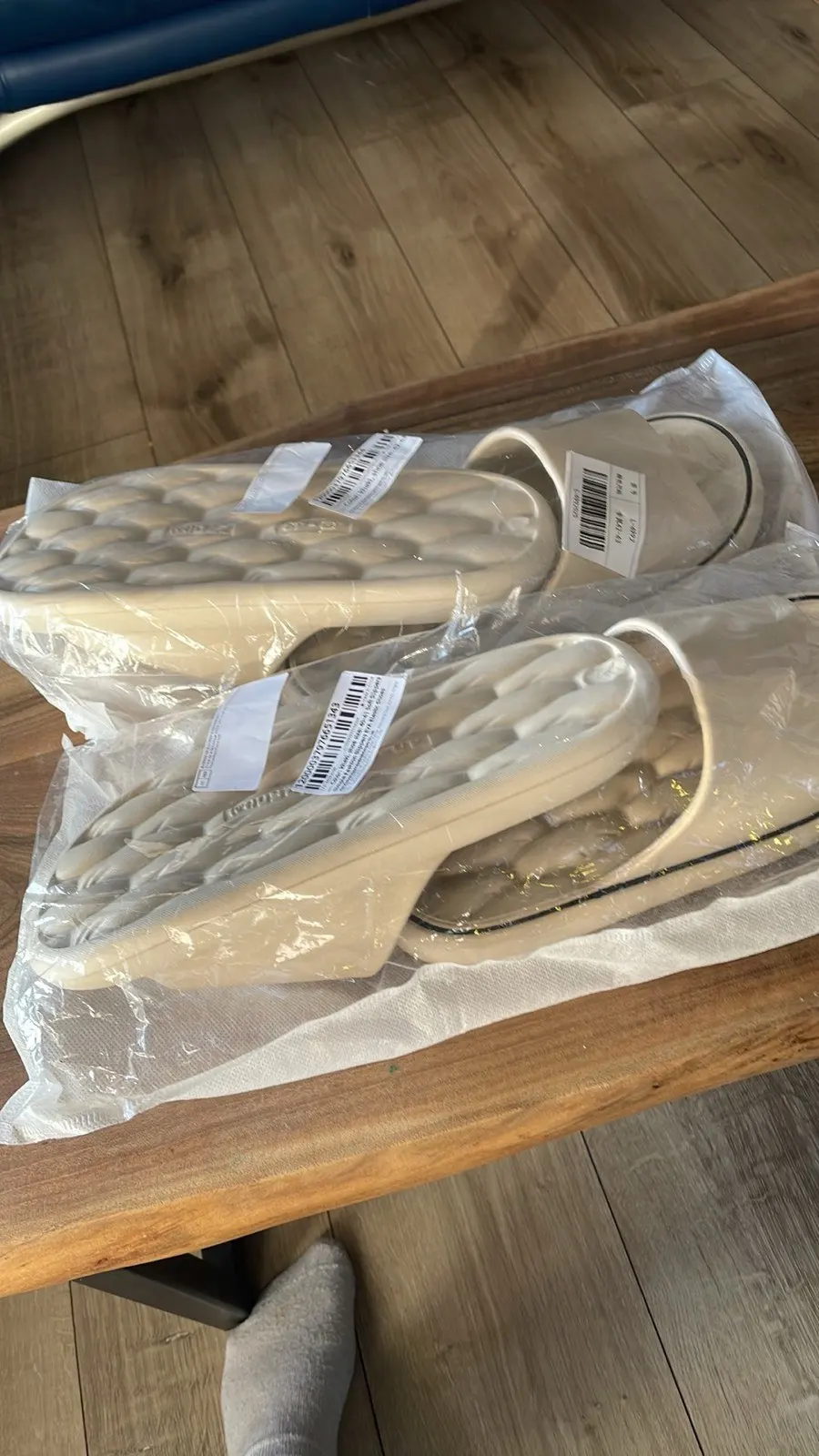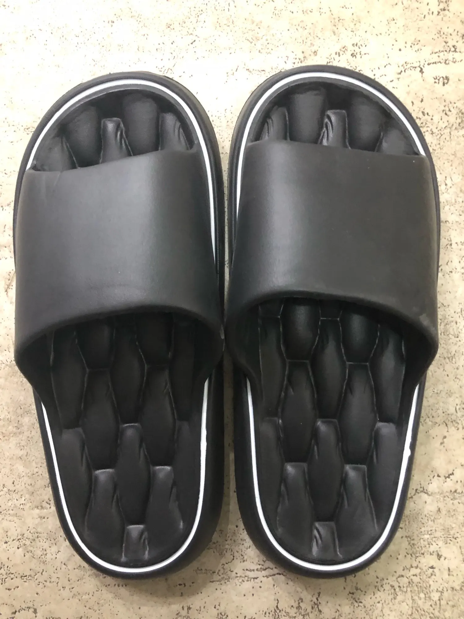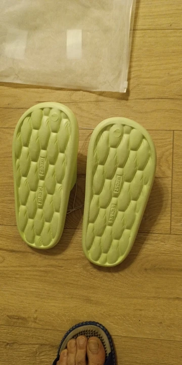 The slippers are very light and comfortable. The width is large, they don’t rub. The feet are easily massaged and do not slip on the floor.