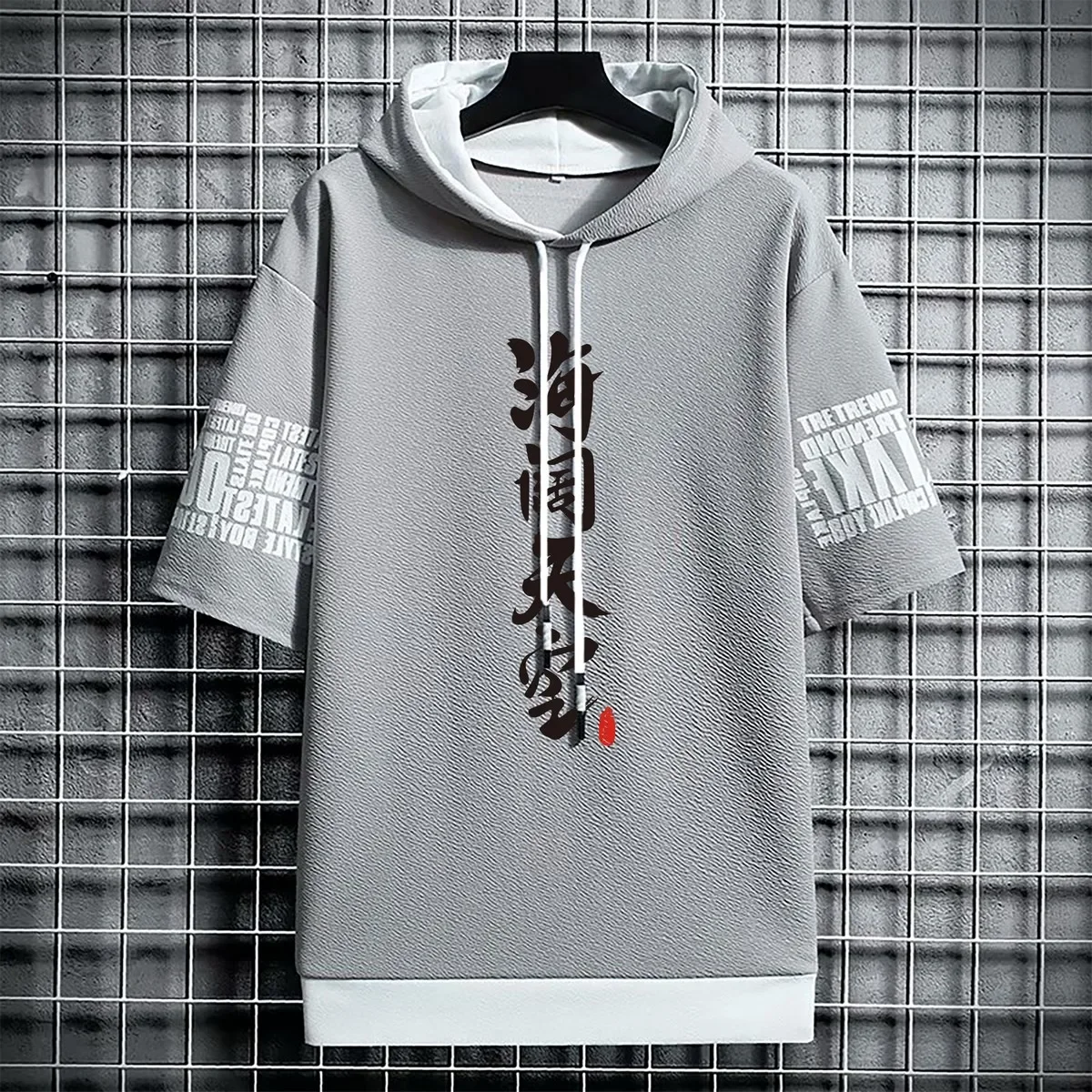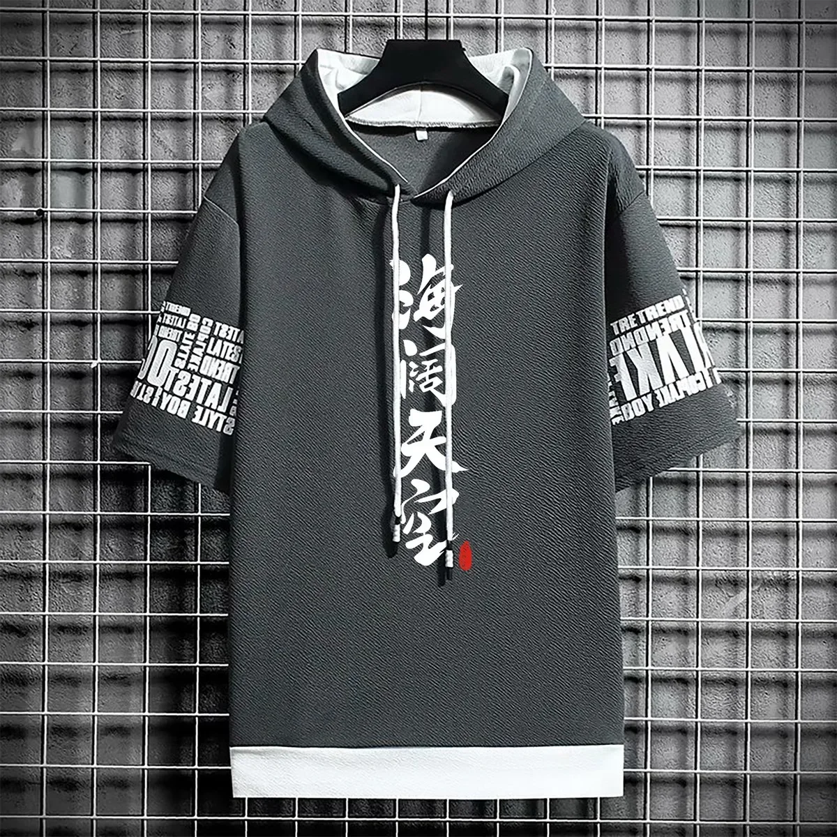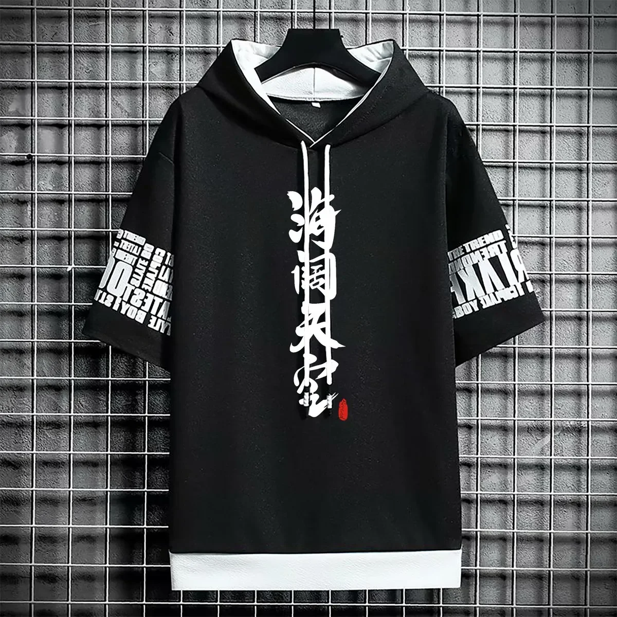 t shirt for men clothing streetwear Hoodies korea 반팔티 hat t-shirt print graphic Casual tshirt anime sports gym hoodie oversized