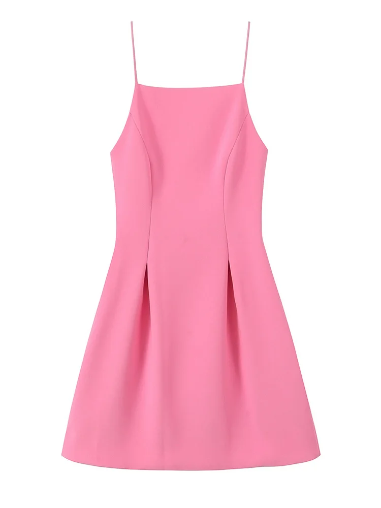 TFMLN Elegant Ladies Pink Spaghetti Strap Dress 2025 Summer New Simple Style Women Slim Short Dress Party Fashion A-Line Dress