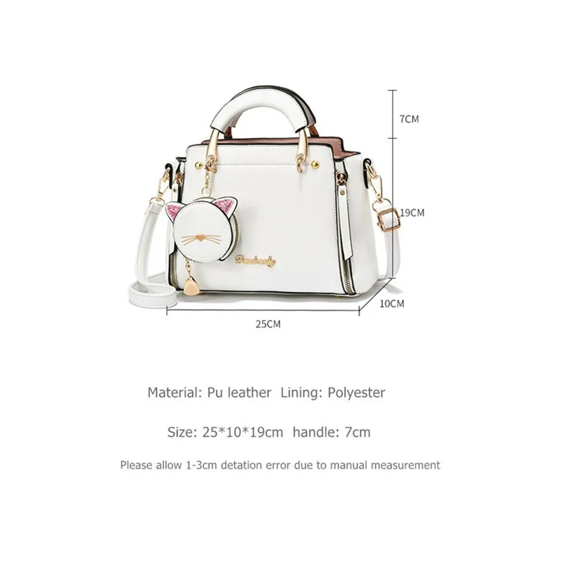 Vento Marea Summer Women Bag Side 2023 New Pu Leather Cute Cat Totes Design Ladies Shoulder Purse & Handbag Sweet White Shoulder