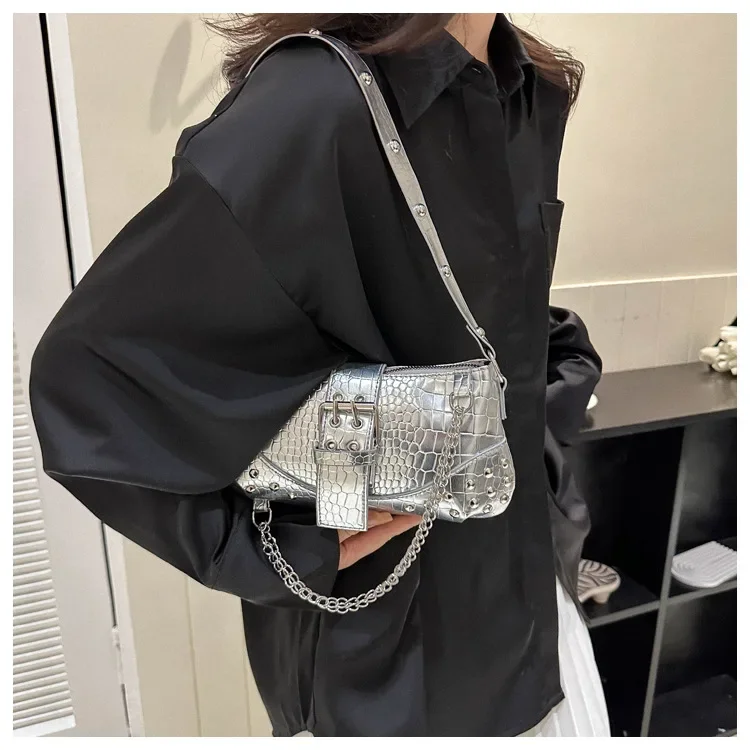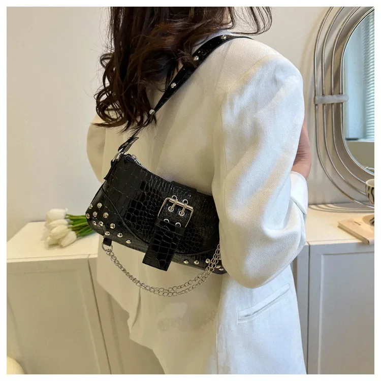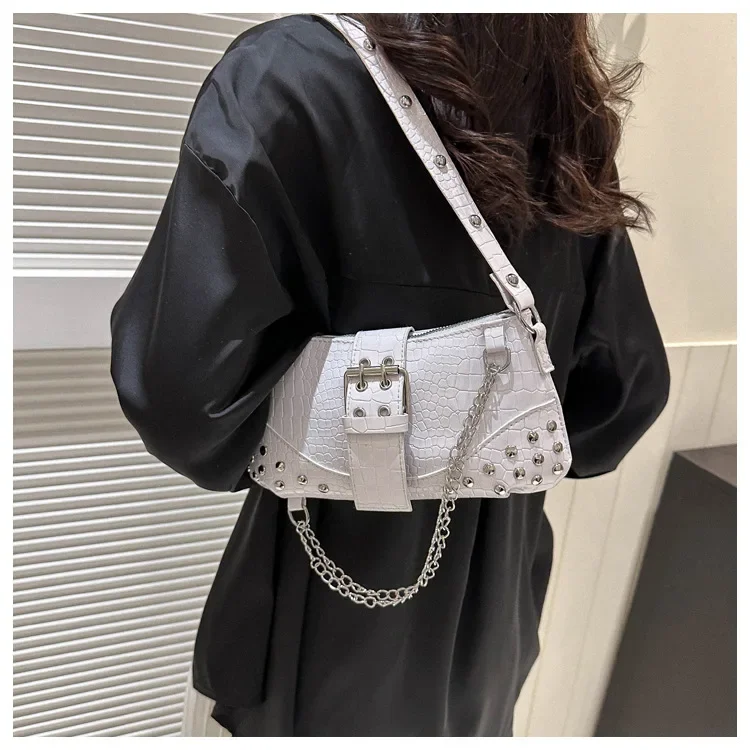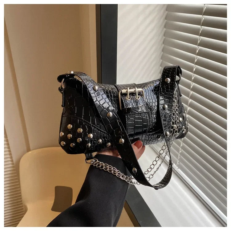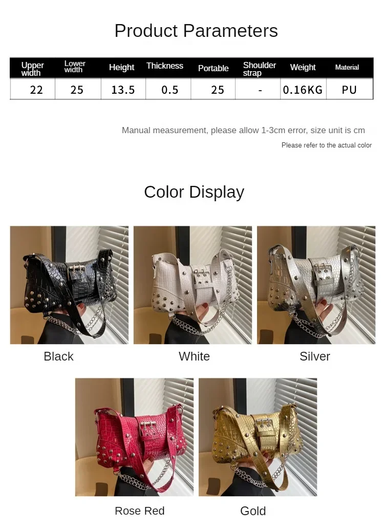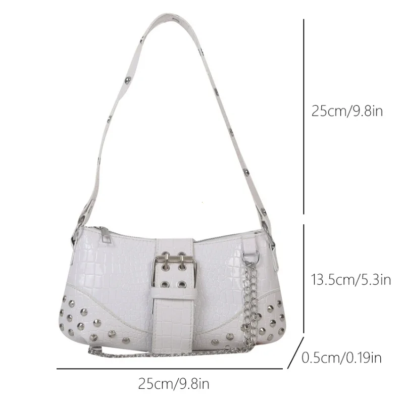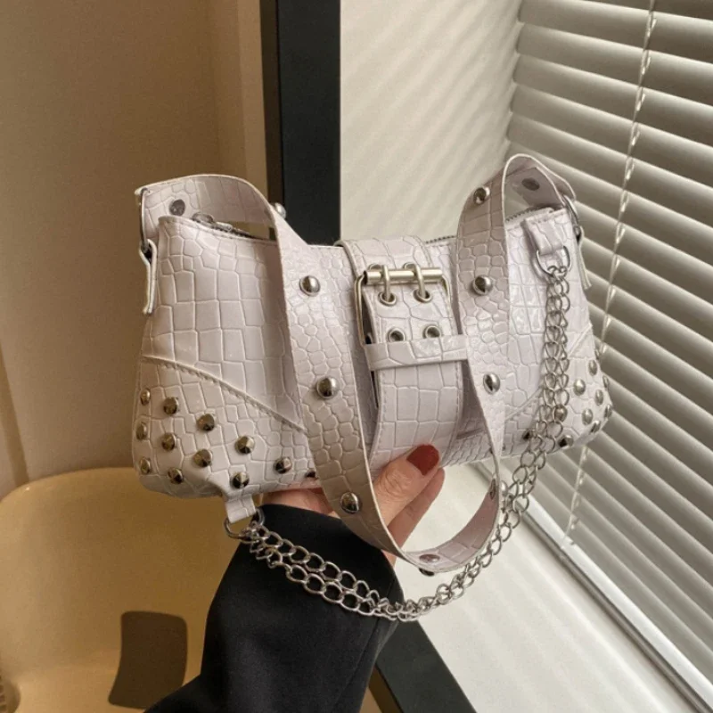 Women Fashion Shoulder Bag Gothic Ladies Bag Cool Style Trendy Rock Girls Handbag Y2K Rivet Chain for Travel Vacation Daily