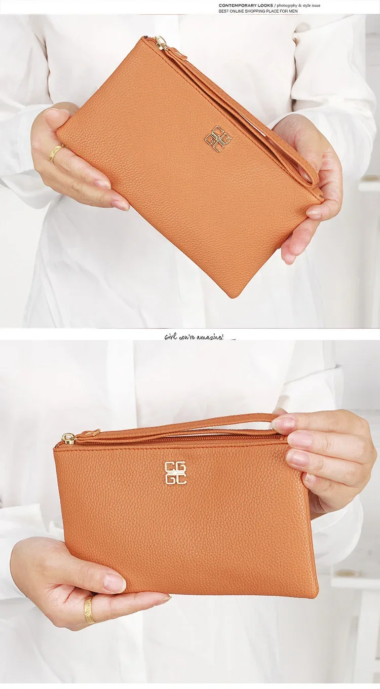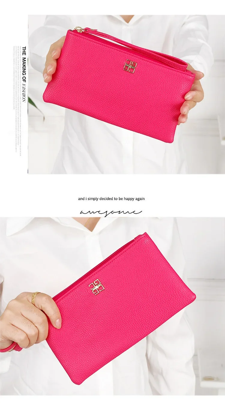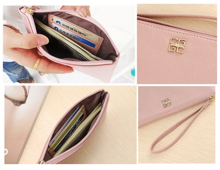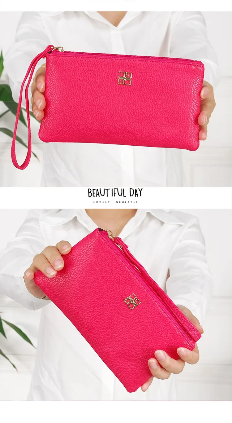 Women Long Casual Wallet Litchi Grain PU Leather Lady Zipper Phone Pocket Credit Card Holder Female Purse Coin Money Bag Clutch