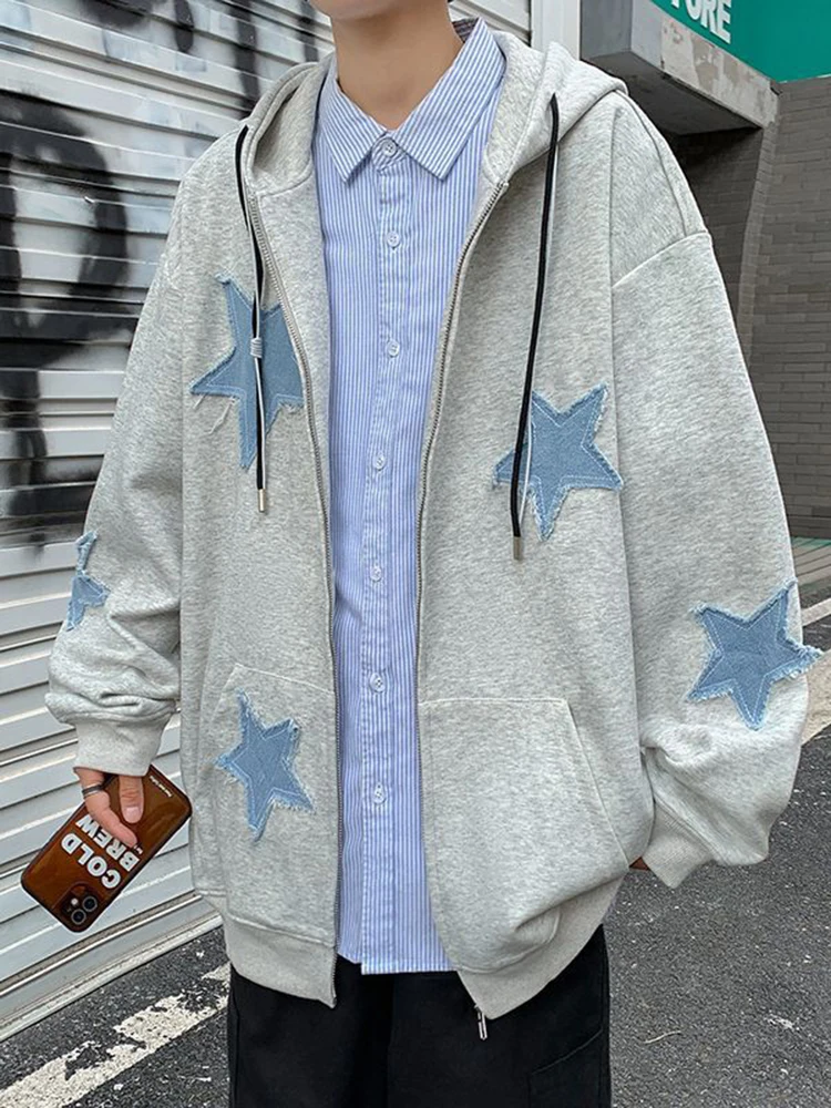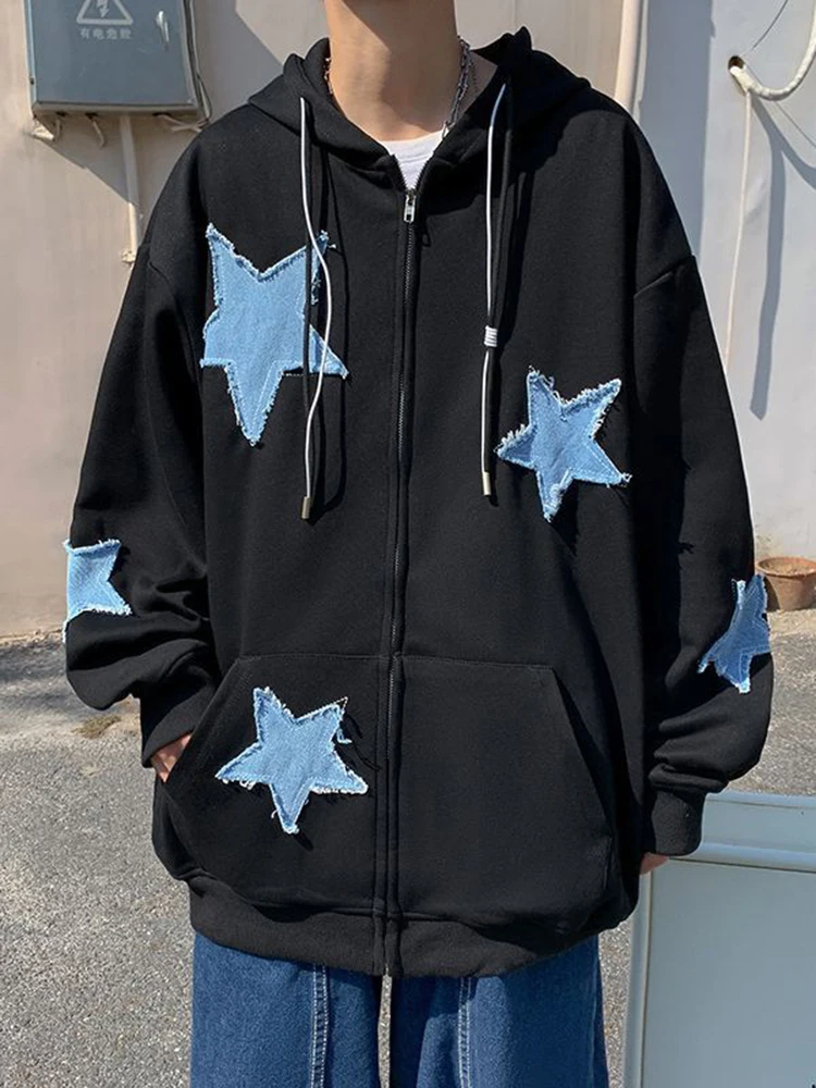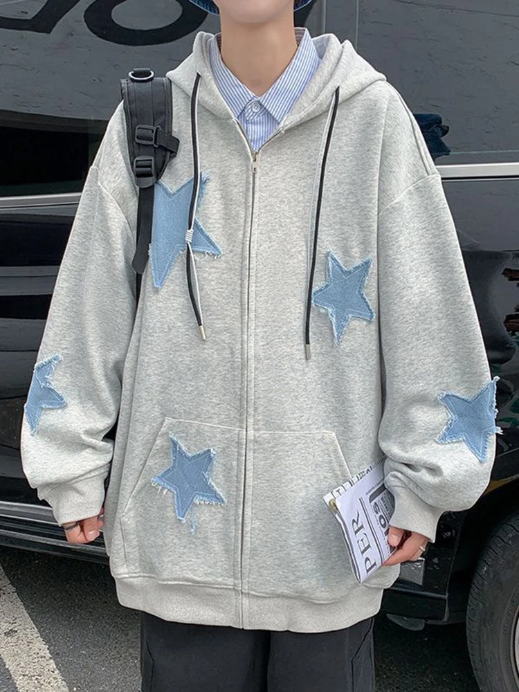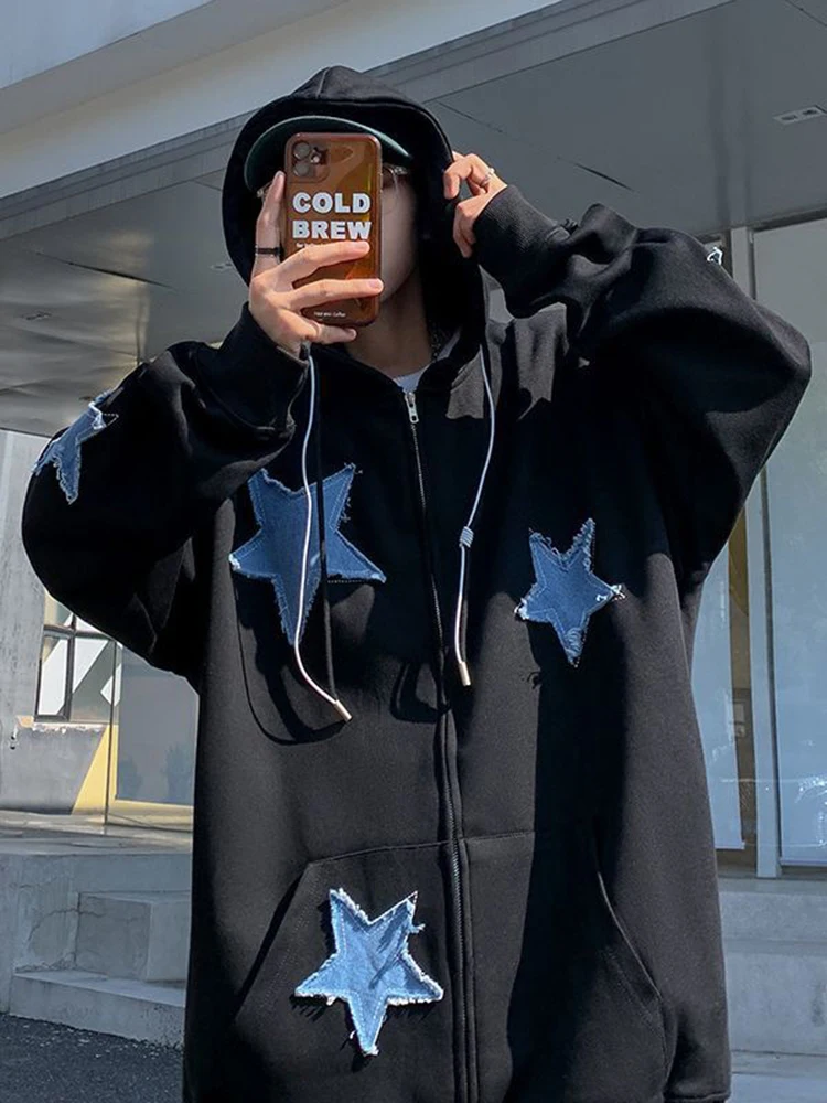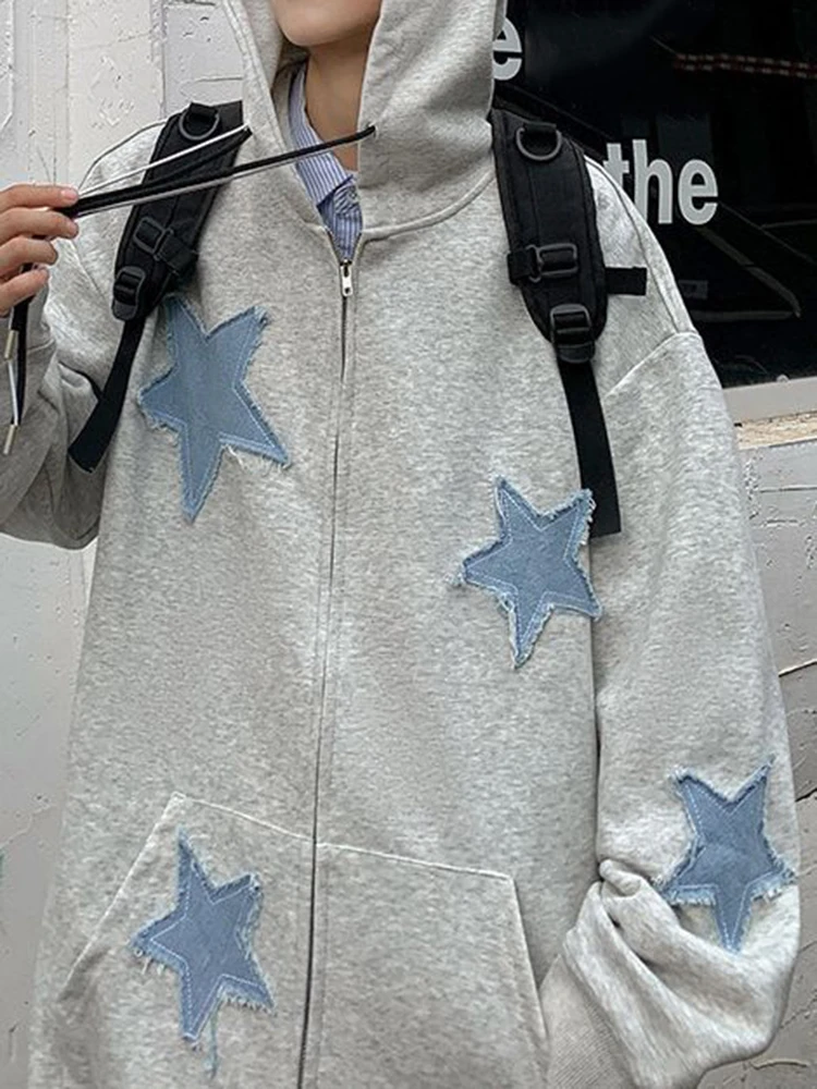 Y2k Hip Hop Women’s Star Patch Zip Up Hoodie for Women Oversized Sweatshirt Jacket E-Girl 90s Pullover Gothic Streetwear